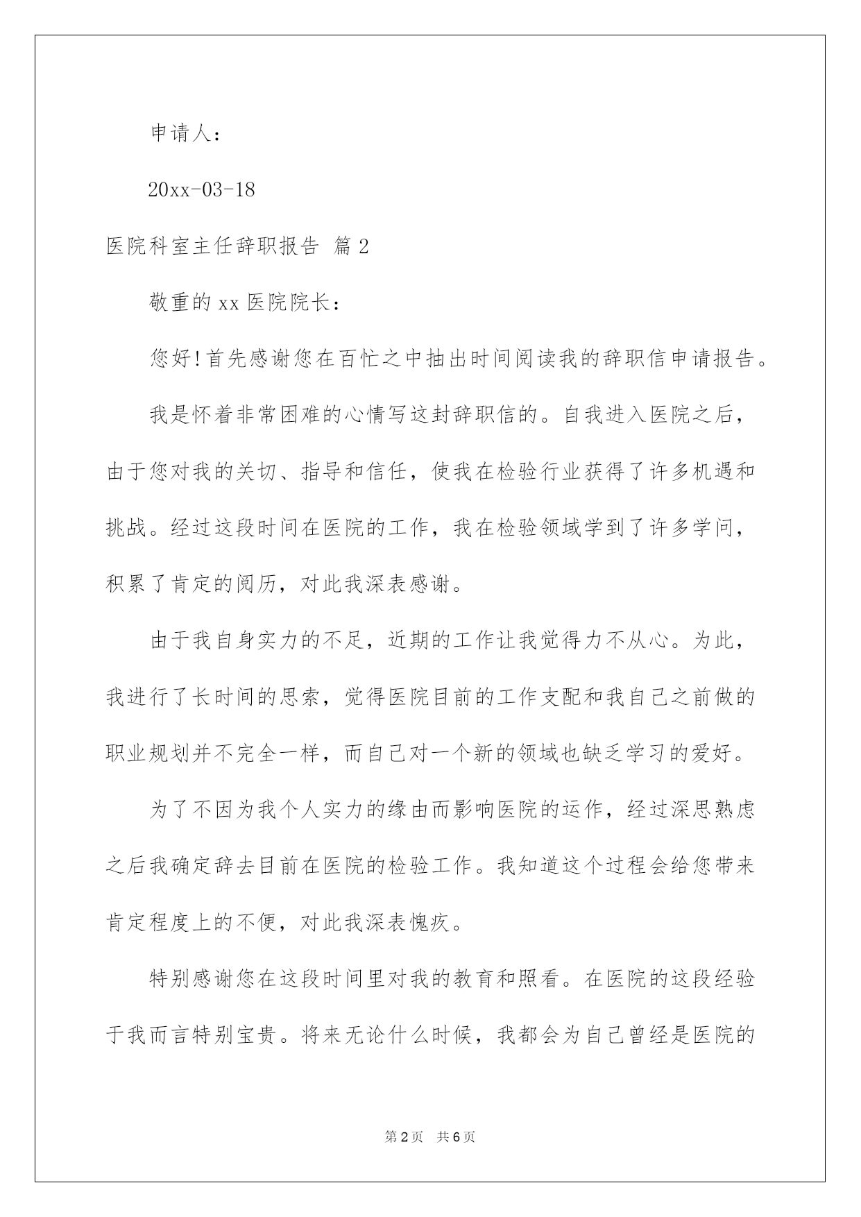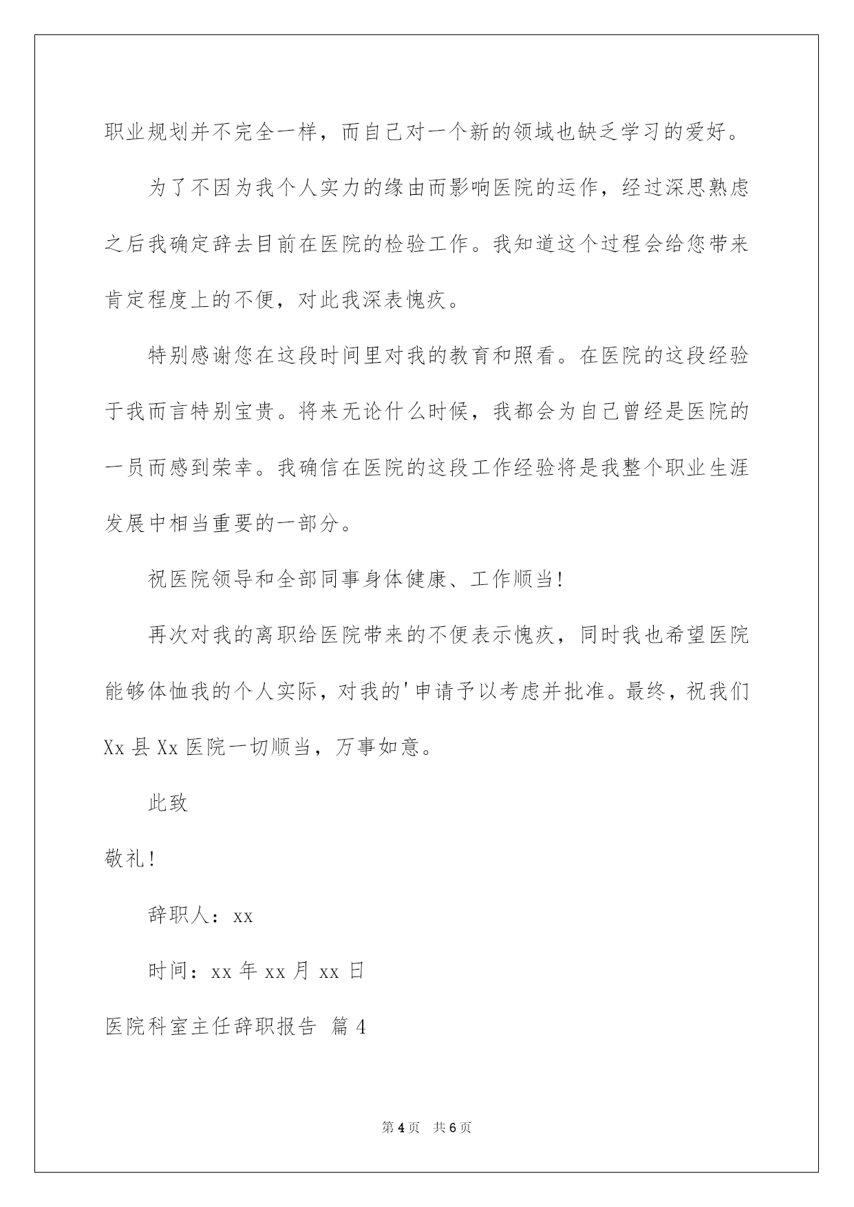 第PAGE\*Arabic\*MERGEFORMAT6页共NUMPAGES\*Arabic\*MERGEFORMAT6页第PAGE\*MERGEFORMAT6页共NUMPAGES\*MERGEFORMAT6页第PAGE\*MERGEFORMAT6页共NUMPAGES\*MERGEFORMAT6页第PAGE\*MERGEFORMAT6页共NUMPAGES\*MERGEFORMAT6页第PAGE\*MERGEFORMAT6页共NUMPAGES\*MERGEFORMAT6页第PAGE\*MERGEFORMAT6页共NUMPAGES\*MERGEFORMAT6页第PAGE\*MERGEFORMAT6页共NUMPAGES\*MERGEFORMAT6页第PAGE\*MERGEFORMAT6页共NUMPAGES\*MERGEFORMAT6页第PAGE\*MERGEFORMAT6页共NUMPAGES\*MERGEFORMAT6页第PAGE\*MERGEFORMAT6页共NUMPAGES\*MERGEFORMAT6页第PAGE\*MERGEFORMAT6页共NUMPAGES\*MERGEFORMAT6页2022医院科室主任辞职报告精选医院科室主任辞职报告四篇随着个人素养的提升,报告运用的频率越来越高,报告具有成文事后性的特点。那么报告应当怎么写才合适呢?以下是我帮大家整理的医院科室主任辞职报告4篇,欢迎大家共享。医院科室主任辞职报告篇1敬重的医院领导:我叫无痕,现任苇河林业局职工医院总务科主任职务,随着医院的快速的发展,无论从后勤管理方面,及对每位员工提出了更高的要求.就我自身而言,随着年龄的增长,本人深深感觉到个人管理实力的不足,综合管理水平已与医院的要求相差甚远,巨大的工作压力迫使我寝食难安,愧对医院党政的期望,所以,经过自己慎重考虑,更是为了医院发展考虑,特向医院领导提出辞去总务科主任职务,做一名优秀一般员工,望医院领导赐予批准。最终祝福医院在今后的发展中更上一层楼,事业蒸蒸日上!申请人:20xx-03-18医院科室主任辞职报告篇2敬重的xx医院院长:您好!首先感谢您在百忙之中抽出时间阅读我的辞职信申请报告。我是怀着非常困难的心情写这封辞职信的。自我进入医院之后,由于您对我的关切、指导和信任,使我在检验行业获得了许多机遇和挑战。经过这段时间在医院的工作,我在检验领域学到了许多学问,积累了肯定的阅历,对此我深表感谢。由于我自身实力的不足,近期的工作让我觉得力不从心。为此,我进行了长时间的思索,觉得医院目前的工作支配和我自己之前做的职业规划并不完全一样,而自己对一个新的领域也缺乏学习的爱好。为了不因为我个人实力的缘由而影响医院的运作,经过深思熟虑之后我确定辞去目前在医院的检验工作。我知道这个过程会给您带来肯定程度上的不便,对此我深表愧疚。特别感谢您在这段时间里对我的教育和照看。在医院的这段经验于我而言特别宝贵。将来无论什么时候,我都会为自己曾经是医院的一员而感到荣幸。我确信在医院的这段工作经验将是我整个职业生涯发展中相当重要的一部分。祝医院领导和全部同事身体健康、工作顺当!再次对我的离职给医院带来的不便表示愧疚,同时我也希望医院能够体恤我的个人实际,对我的申请予以考虑并批准。最终,祝我们Xx县Xx医院一切顺当,万事如意。申请人:XXXXXX年X月X日医院科室主任辞职报告篇3敬重的领导:您好!首先感谢您在百忙之中抽出时间阅读我的辞职信申请报告。我是怀着非常困难的心情写这封辞职信的。自我进入医院之后,由于您对我的关切、指导和信任,使我在检验行业获得了许多机遇和挑战。经过这段时间在医院的工作,我在检验领域学到了许多学问,积累了肯定的阅历,对此我深表感谢。由于我自身实力的不足,近期的工作让我觉得力不从心。为此,我进行了长时间的思索,觉得医院目前的工作支配和我自己之前做的职业规划并不完全一样,而自己对一个新的领域也缺乏学习的爱好。为了不因为我个人实力的缘由而影响医院的运作,经过深思熟虑之后我确定辞去目前在医院的检验工作。我知道这个过程会给您带来肯定程度上的不便,对此我深表愧疚。特别感谢您在这段时间里对我的教育和照看。在医院的这段经验于我而言特别宝贵。将来无论什么时候,我都会为自己曾经是医院的一员而感到荣幸。我确信在医院的这段工作经验将是我整个职业生涯发展中相当重要的一部分。祝医院领导和全部同事身体健康、工作顺当!再次对我的离职给医院带来的不便表示愧疚,同时我也希望医院能够体恤我的个人实际,对我的'申请予以考虑并批准。最终,祝我们Xx县Xx医院一切顺当,万事如意。此致敬礼!辞职人:xx时间:xx年x