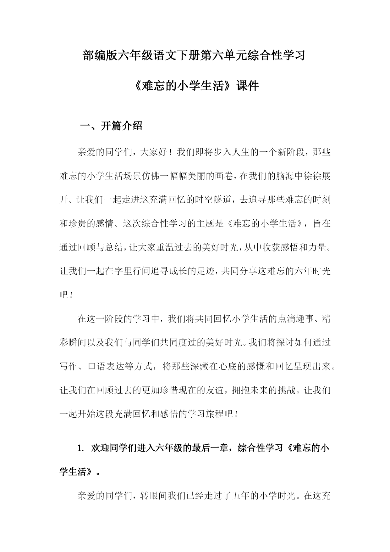 部编版六年级语文下册第六单元综合性学习《难忘的小学生活》课件.docx