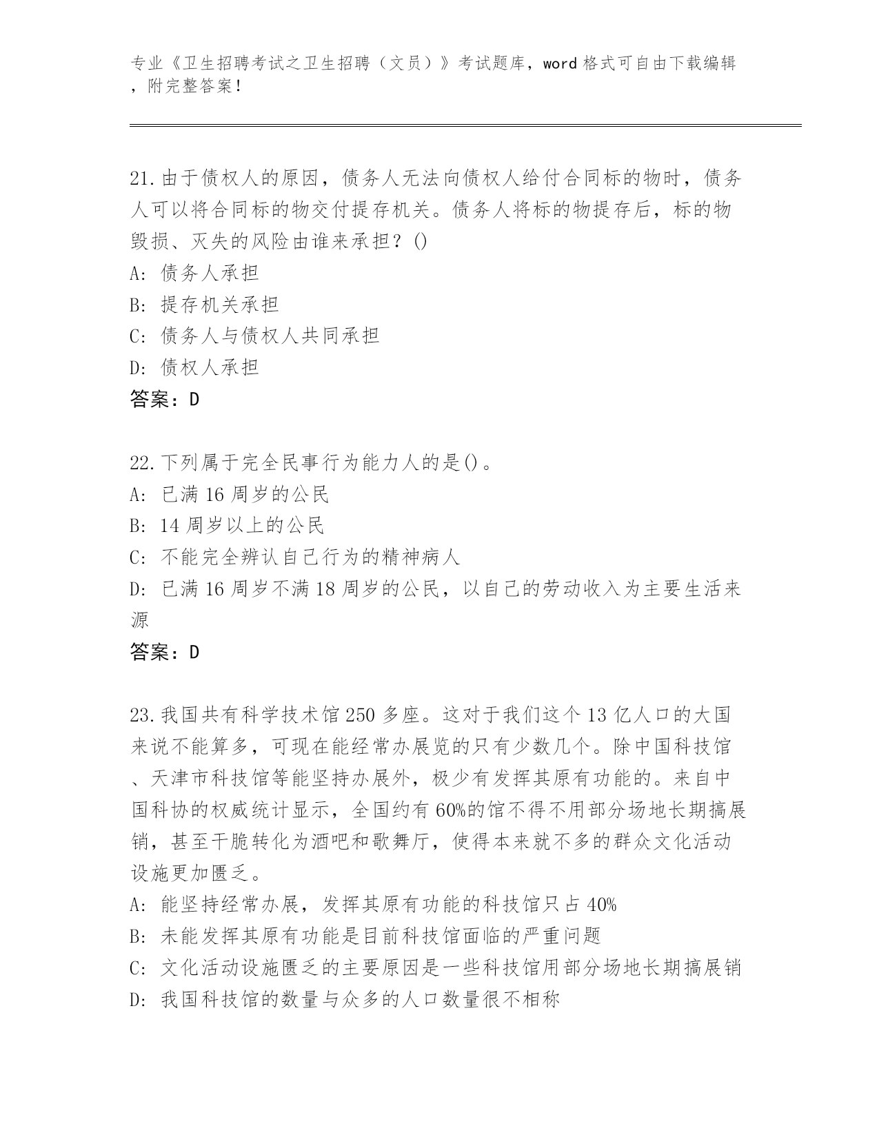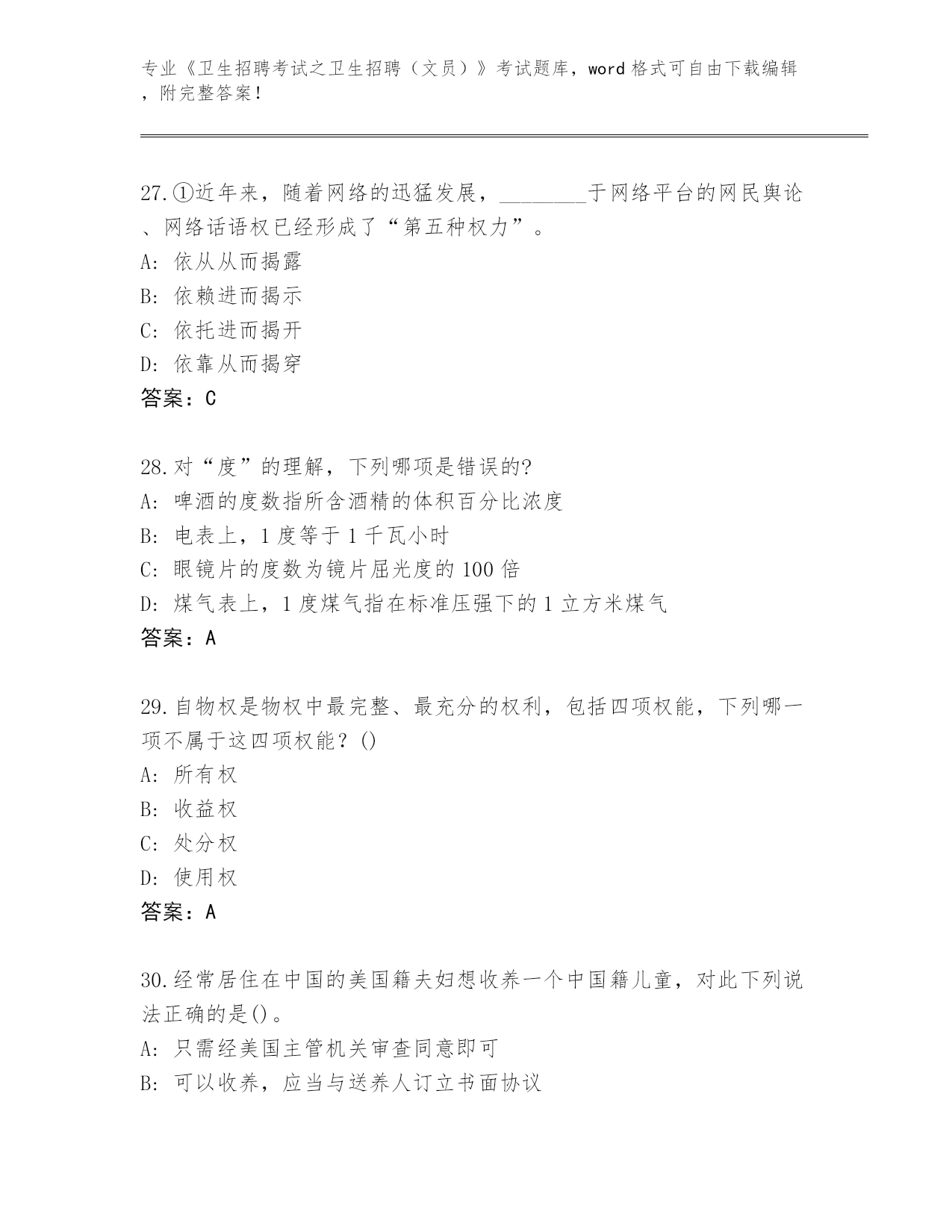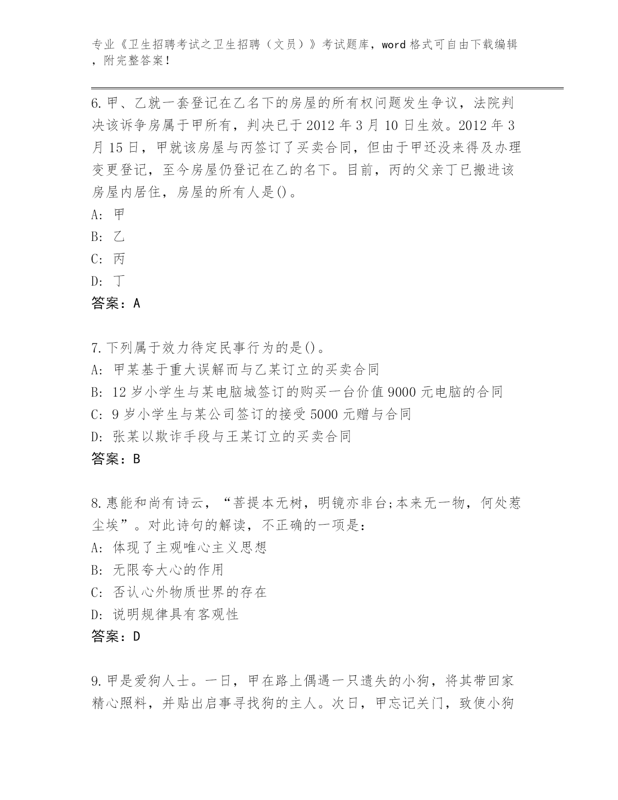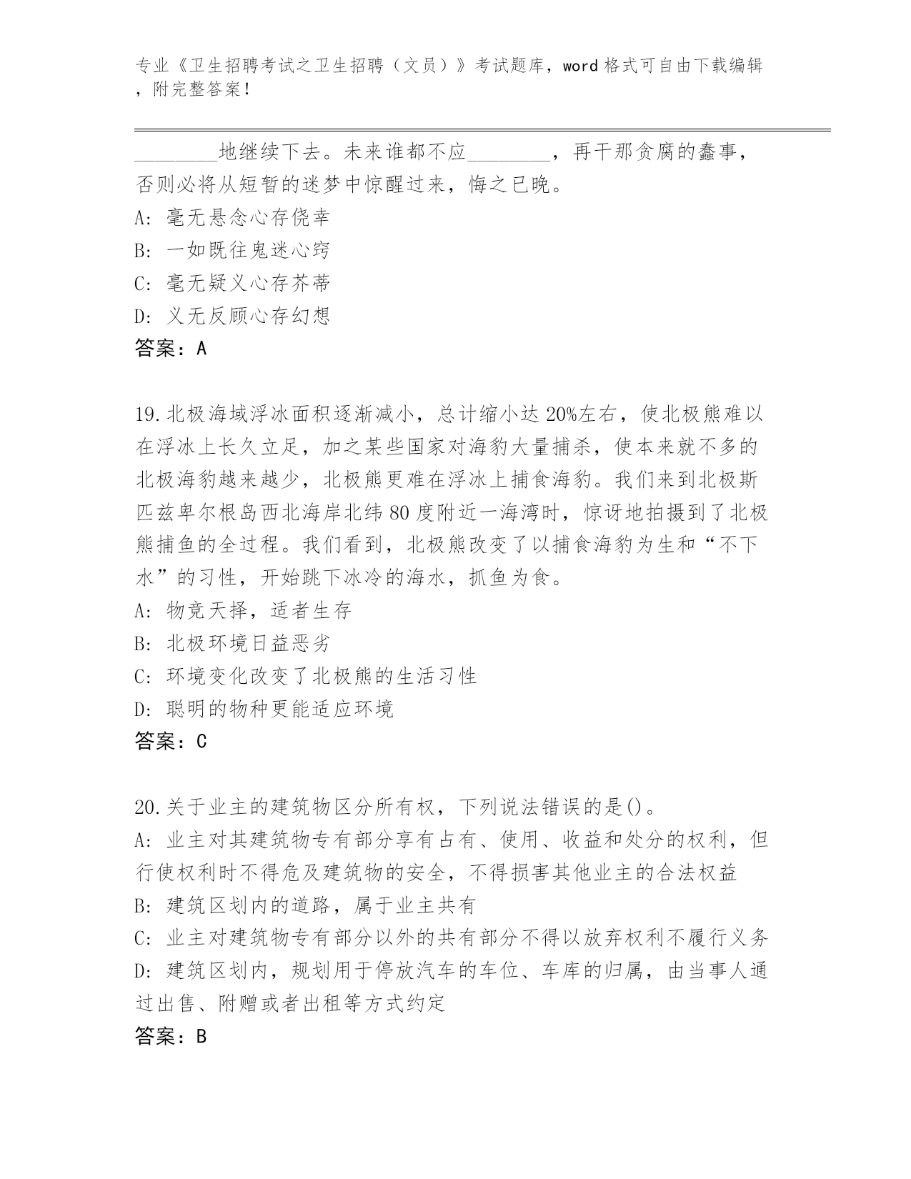 内部使用河北省蠡县《卫生招聘考试之卫生招聘(文员)》考试必考200题完整版带答案