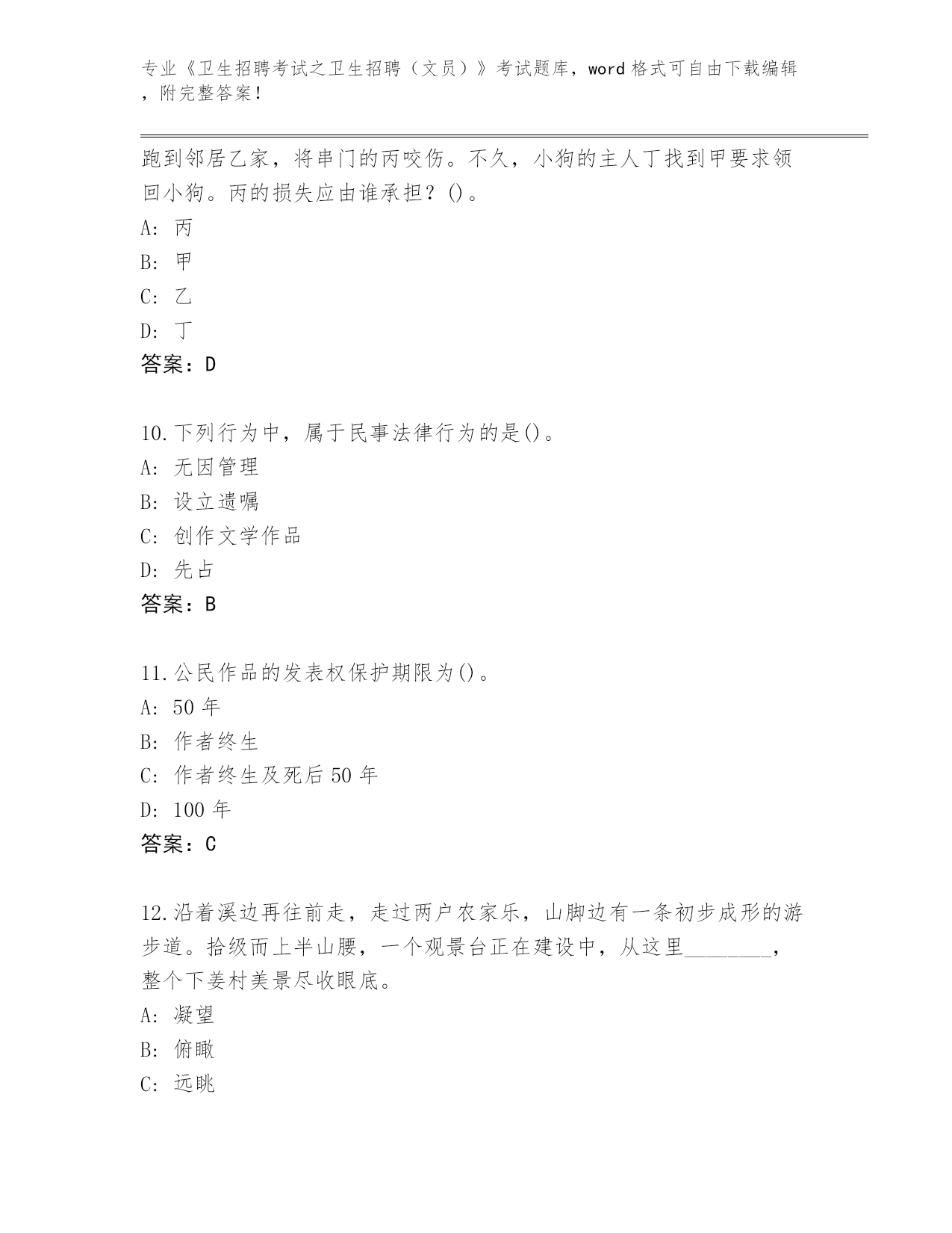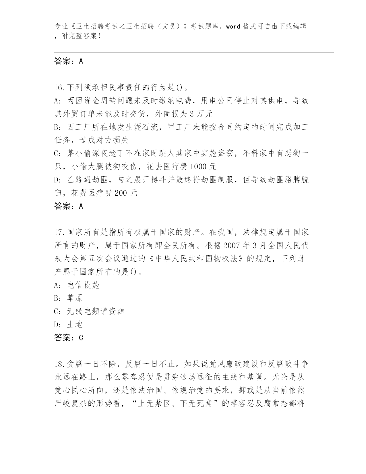 河北省内部使用《卫生招聘考试之卫生招聘(文员)》考试大全及答案【全国使用】