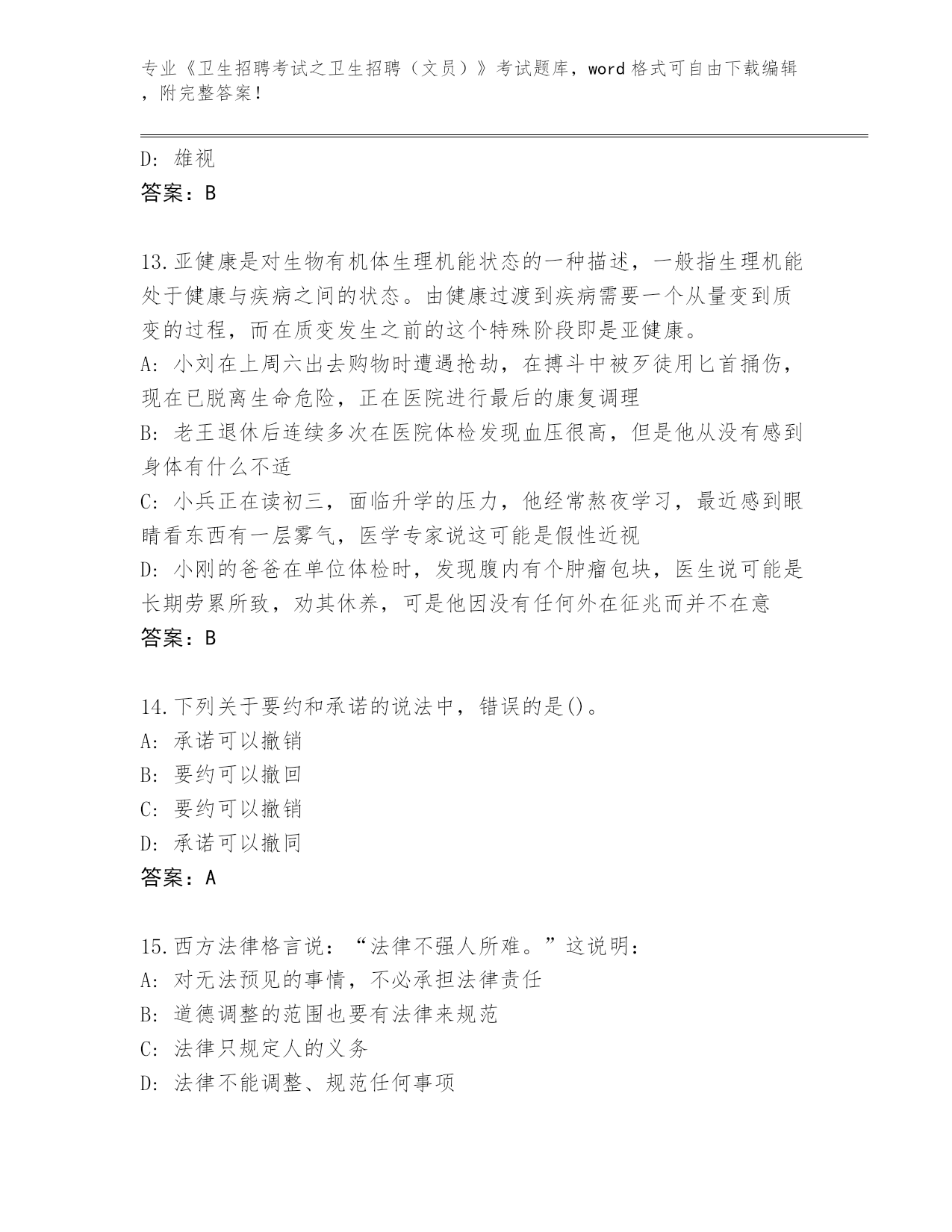 河北省路南区内部使用《卫生招聘考试之卫生招聘(文员)》资格考试通关秘籍题库带答案解析