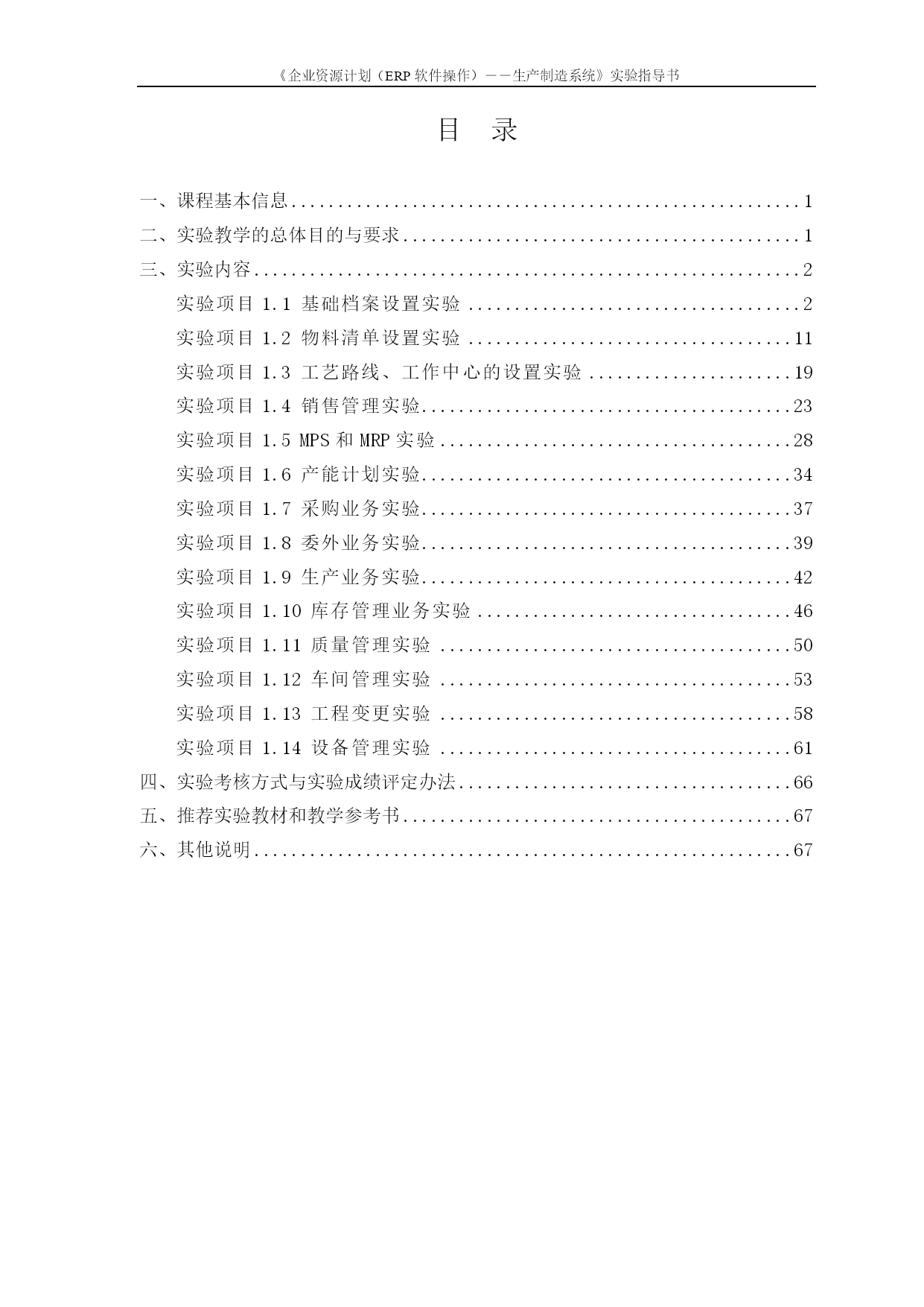 《企业资源规划(ERP)生产制造模块》实验指导书