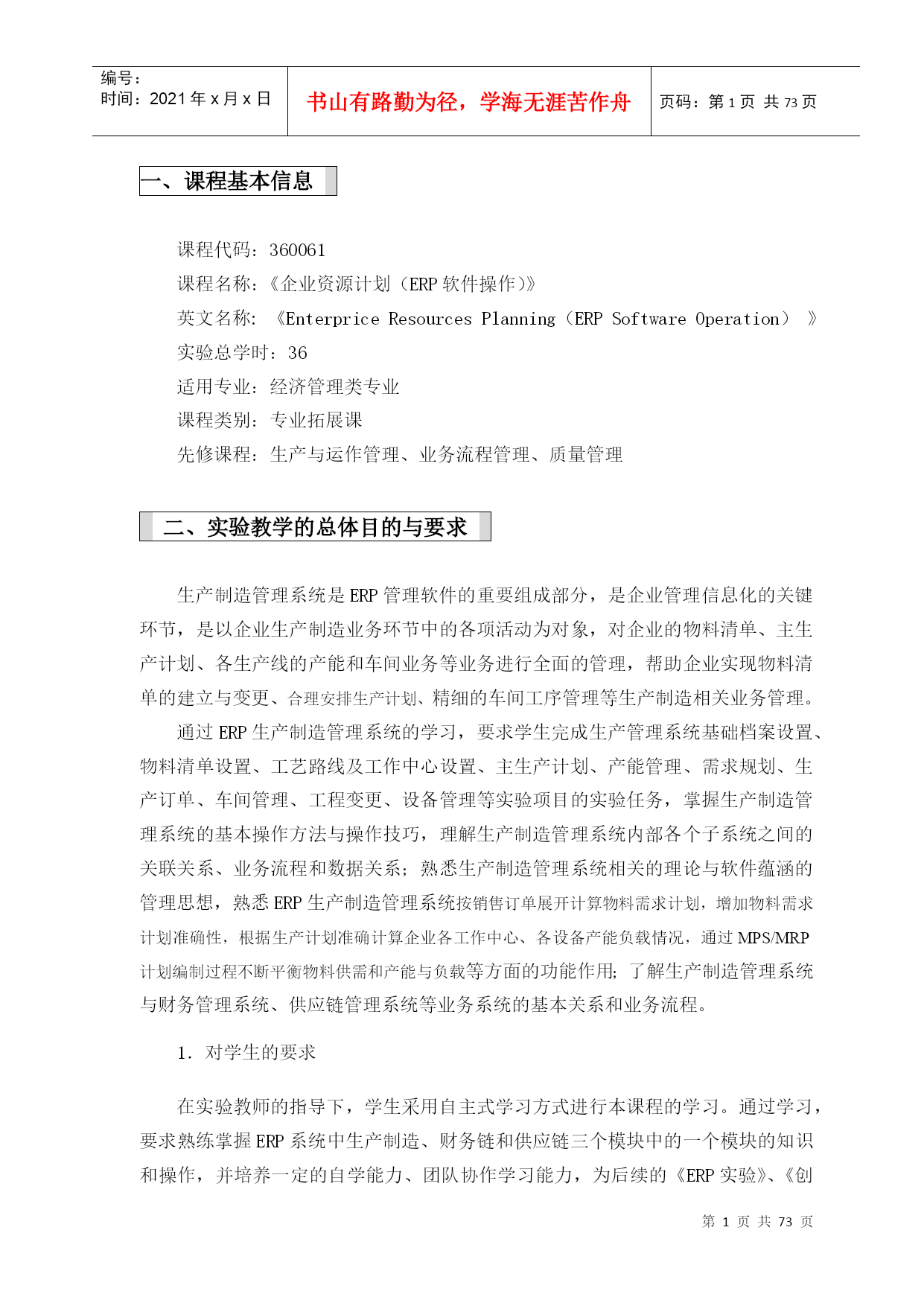《企业资源规划(ERP)生产制造模块》实验指导书.docx