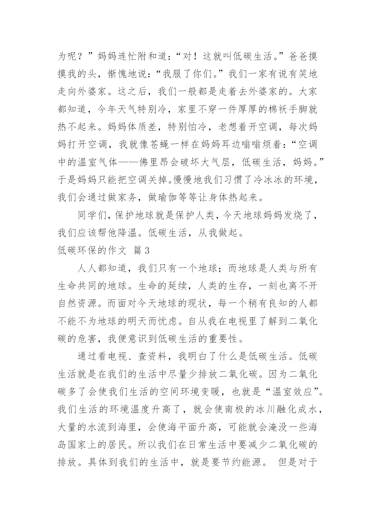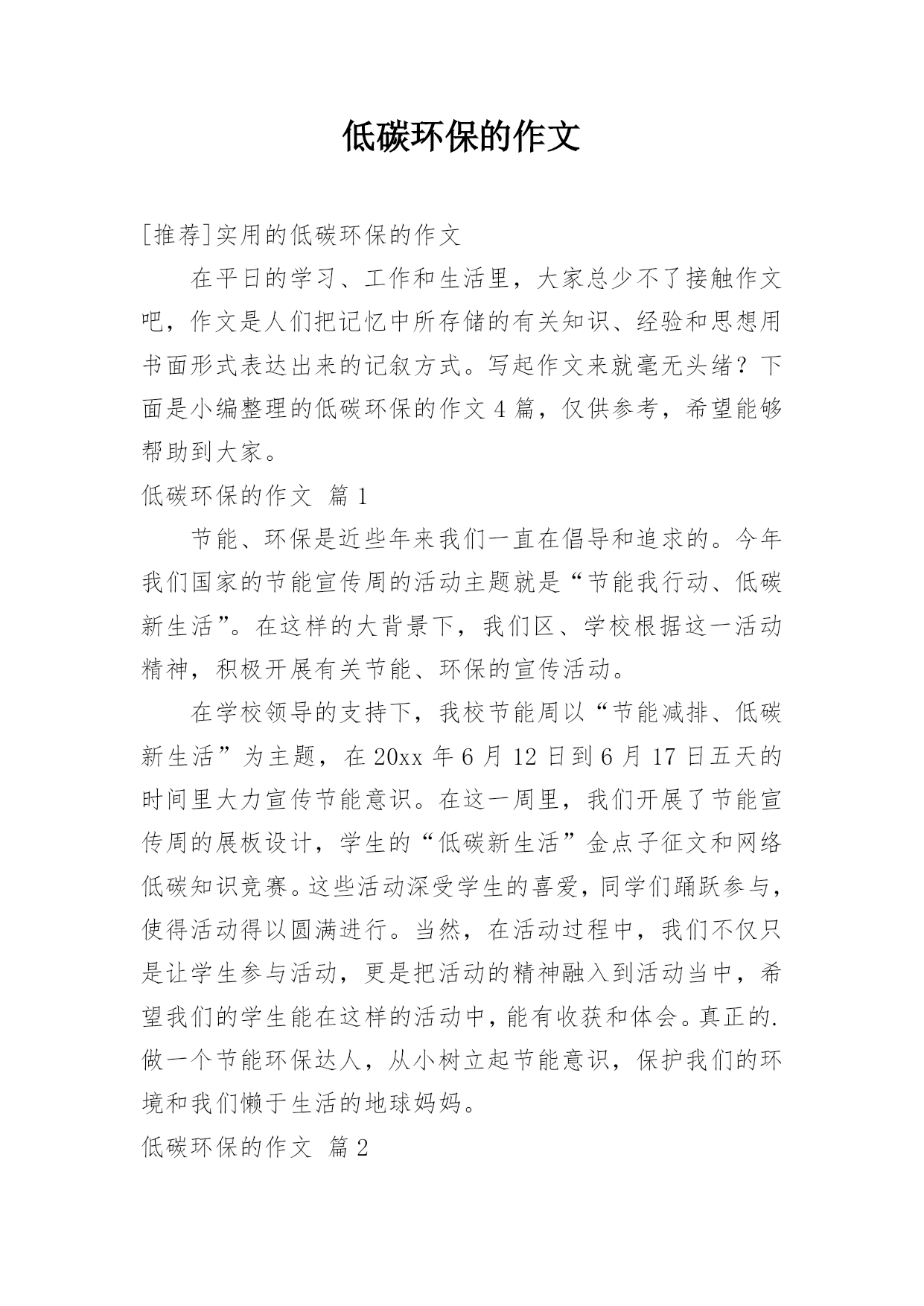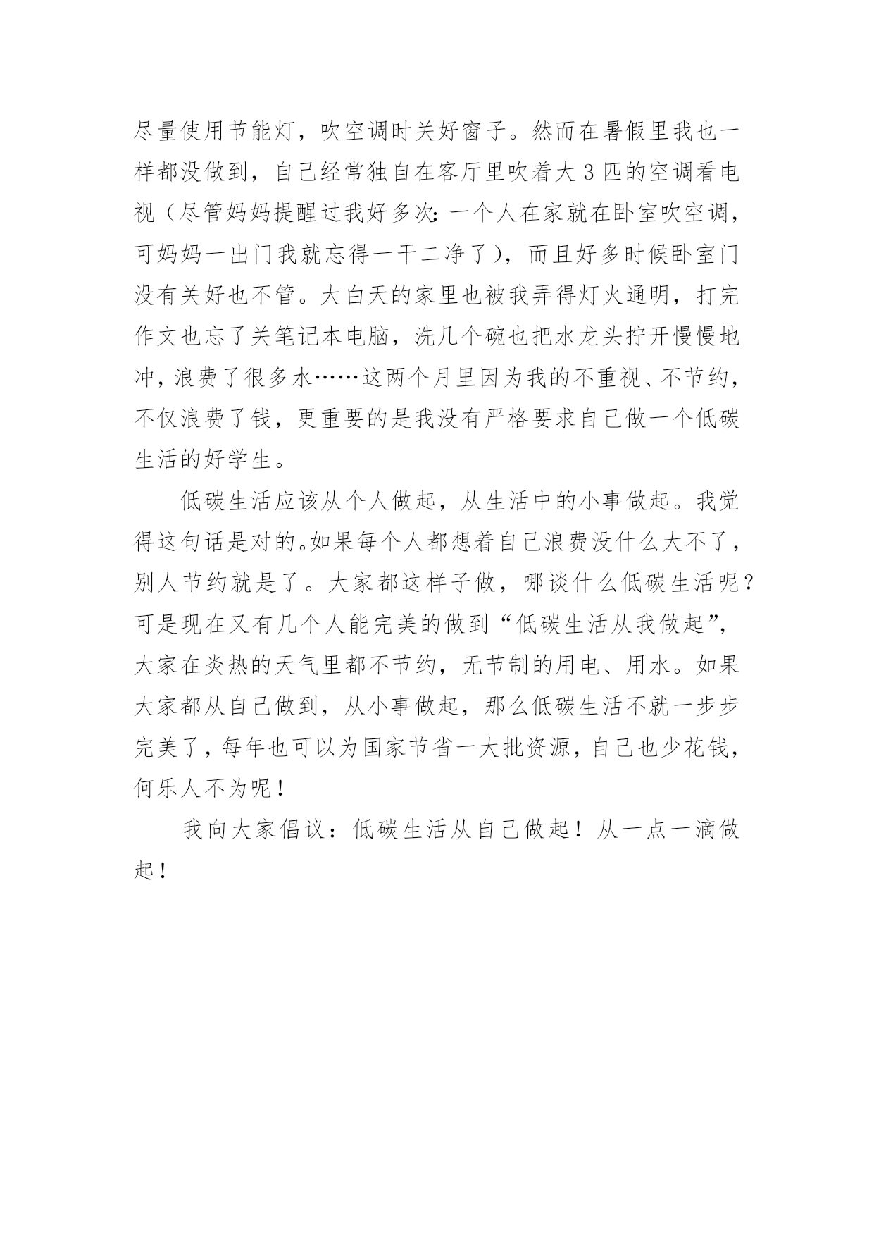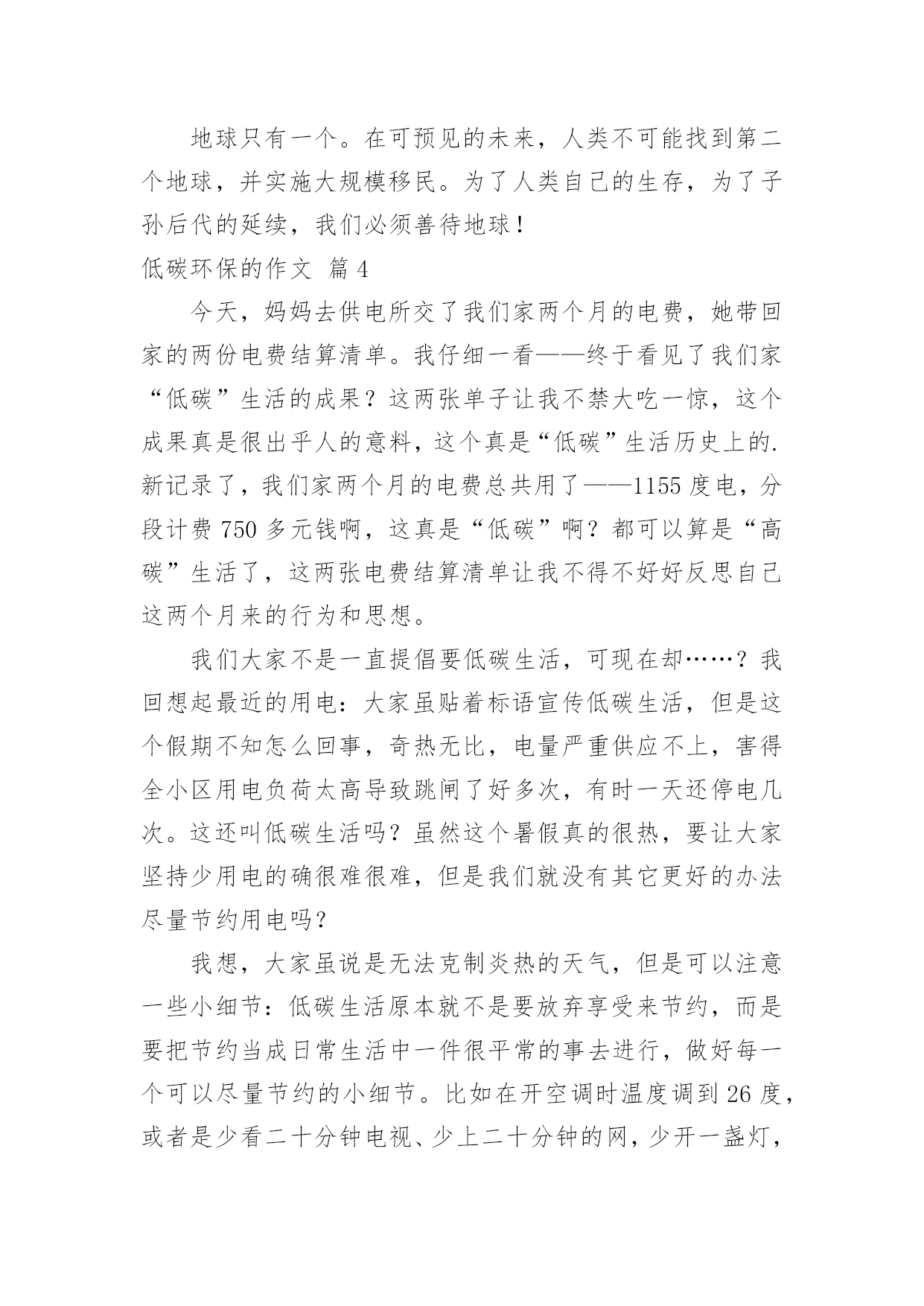 低碳环保的作文[推荐]实用的低碳环保的作文在平日的学习、工作和生活里,大家总少不了接触作文吧,作文是人们把记忆中所存储的有关知识、经验和思想用书面形式表达出来的记叙方式。写起作文来就毫无头绪?下面是小编整理的低碳环保的作文4篇,仅供参考,希望能够帮助到大家。低碳环保的作文篇1节能、环保是近些年来我们一直在倡导和追求的。今年我们国家的节能宣传周的活动主题就是“节能我行动、低碳新生活”。在这样的大背景下,我们区、学校根据这一活动精神,积极开展有关节能、环保的宣传活动。在学校领导的支持下,我校节能周以“节能减排、低碳新生活”为主题,在20xx年6月12日到6月17日五天的时间里大力宣传节能意识。在这一周里,我们开展了节能宣传周的展板设计,学生的“低碳新生活”金点子征文和网络低碳知识竞赛。这些活动深受学生的喜爱,同学们踊跃参与,使得活动得以圆满进行。当然,在活动过程中,我们不仅只是让学生参与活动,更是把活动的精神融入到活动当中,希望我们的学生能在这样的活动中,能有收获和体会。真正的.做一个节能环保达人,从小树立起节能意识,保护我们的环境和我们懒于生活的地球妈妈。低碳环保的作文篇2“哭泣的人脸”这张照片轰动了全世界。看这个哭脸眼眶处深深凹陷,眼眉低垂,眼角的泪水难以抑制地滚滚流淌,微微张开的嘴好像在高喊着:救救我!就像是在为日益变暖的环境和不断融化的冰川而哭泣迈克尔·诺兰的心在颤抖,全世界人们感到震惊,感到焦虑。北极冰川正在以惊人的速度融化,地球妈妈发烧了,而全球气候变暖是罪魁祸首。由于人类无节制地向大自然索取资源,消耗资源,人口剧增,人类生活方式毫无节制,这时我想到了一幅漫画,无数的人站在巍巍可及的地球上,压得地球妈妈喘不过起来。严重超负荷正在减少地球的寿命。随着人类生活水平的提高,二氧化碳的排放量愈来愈大,地球臭氧层正在遭受前所未有的危机,全球灾难性气候屡屡出现,远的不说,就说近几年汶川地震,南方雪灾,黄河洪水,还有去年和今年的`部分地区的旱灾,都是前所未有的。这一切带来的最终的后果:生态平衡一旦被打破,人类将受到大自然的严厉惩罚。哭泣的冰川、无助的北极熊……下一个将会是人类自己。面对危机,人们提出了“低碳生活”的概念。低碳生活就是在生活中尽量减少二氧化碳排放。为了大家唯一可以生存的地球,我们一家也积极响应起来。有一次傍晚,我们准备去外婆家吃饭。记得那天寒风凛冽,好像要下雪了。爸爸说:“我们开车去吧。”“到外婆家只有几百米路。我们还是走过去吧。”我建议。爸爸缩着脖子说:“太冷了!”我理直气壮地对爸爸说:“走着去既可以锻炼身体,有能减少汽车尾气的排放,一举两得,何乐而不为呢?”妈妈连忙附和道:“对!这就叫低碳生活。”爸爸摸摸我的头,惭愧地说:“我服了你们。”我们一家有说有笑地走向外婆家。这之后,我们一般都是走着去外婆家的。大家都知道,今年天气特别冷,家里不穿一件厚厚的棉袄手脚就热不起来。妈妈体质差,特别怕冷,老想着开空调,每次妈妈打开空调,我就像苍蝇一样在妈妈耳边嗡嗡烦着:“空调中的温室气体——佛里昂会破坏大气层,低碳生活,妈妈。”于是妈妈只能把空调关掉。慢慢地我们习惯了冷冰冰的环境,我们会通过做家务,做瑜伽等等让身体热起来。同学们,保护地球就是保护人类,今天地球妈妈发烧了,我们应该帮他降温。低碳生活,从我做起。低碳环保的作文篇3人人都知道,我们只有一个地球;而地球是人类与所有生命共同的地球。生命的延续,人类的生存,一刻也离不开自然资源。而面对今天地球的现状,每一个稍有良知的人都不能不为地球的明天而忧虑。自从我在电视里了解到二氧化碳的危害,我便意识到低碳生活的重要性。通过看电视、查资料,我明白了什么是低碳生活。低碳生活就是在我们的生活中尽量少排放二氧化碳。因为二氧化碳多了会使我们生活的空间环境变暖,也就是“温室效应”。我们生活的环境温度升高了,就会使南极的冰川融化成水,大量的水流到海里,会使海平面升高,可能就会淹没一些海岛国家上的居民。所以我们在日常生活中要减少二氧化碳的排放。具体到我们的生活中,就是要节约能源。但是对于低碳生活,人们遭遇着类似的尴尬:知道保护环境的重要,也知道保护环境人人有责,但是,为了提高生活质量,却不得不以增加碳排放为代价。专家指出,尽管人们不能避免碳排放,但却可以减少碳排放。每个人都不可能过“零碳”的生活,在资源匮乏的当下,我们要做的是,把有限的资源用于满足人们的基本需要,限制奢侈浪费。同时,养成“低碳生活”理念,在可选择、可替换的条件下,首选自然、环保、健康的生活方式。其实,加入到低碳一族当中并非难事,“低碳生活”细节贯穿在家居生活的各个环节,就拿日常生活用电来说:家用电器的插头插座接触良好才能节电;电水壶的电热管积了水垢后要及时清除,这样才能提高热效率;熨烫衣物最好选购功率为500瓦或700瓦的高温电熨