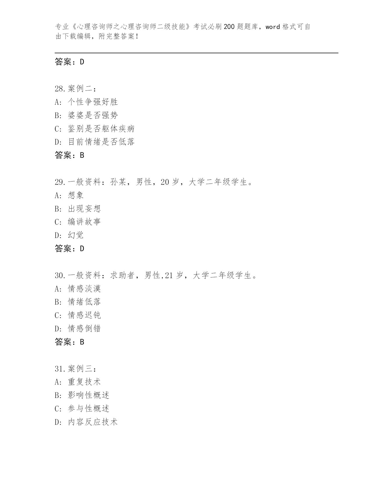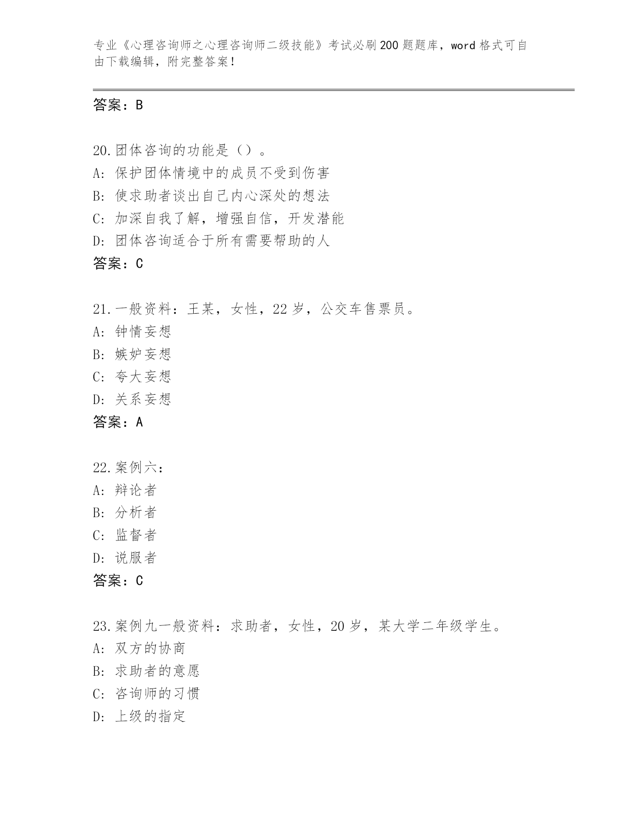 甘肃省通渭县完整版《心理咨询师之心理咨询师二级技能》考试必刷200题完整版(必刷)