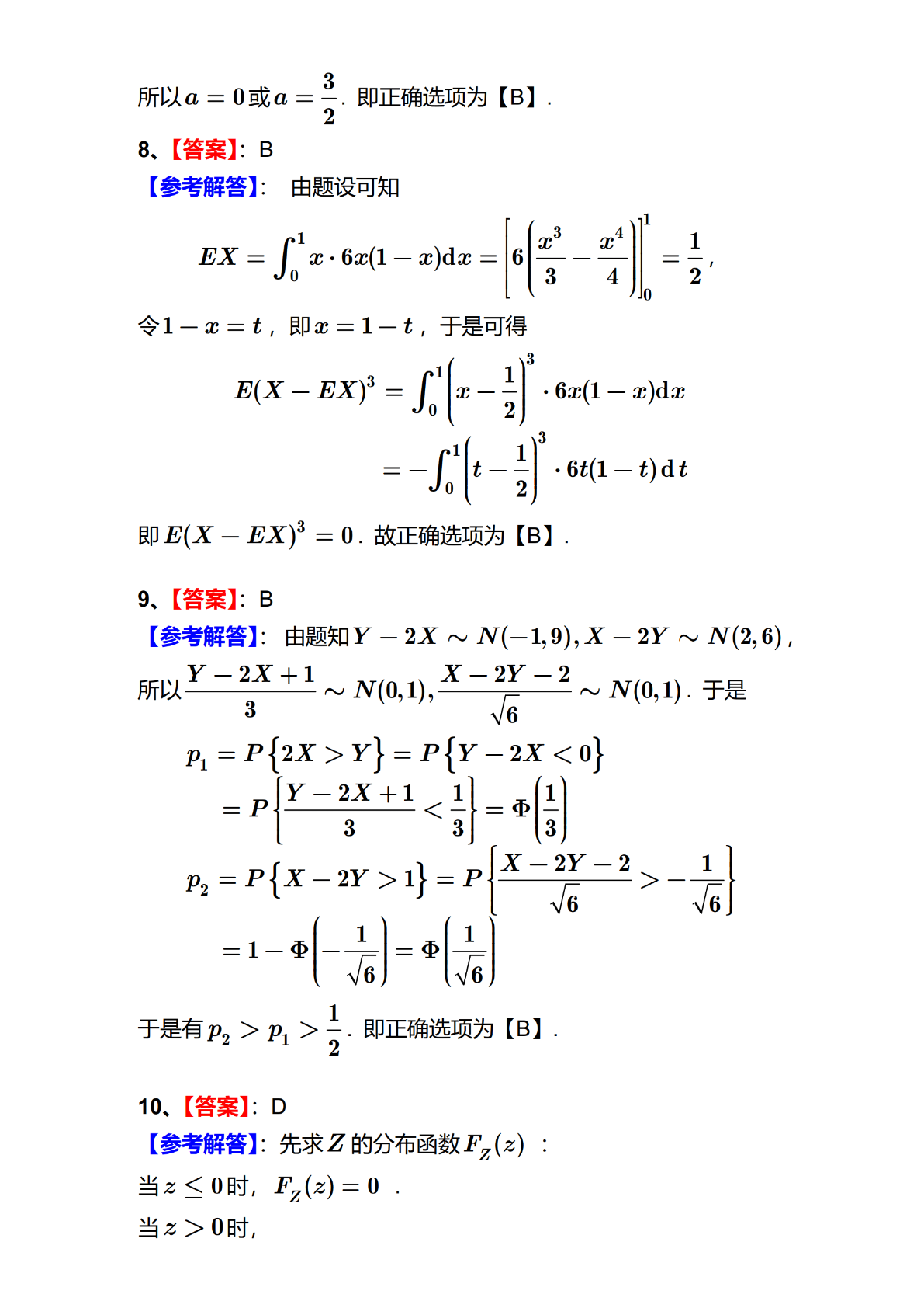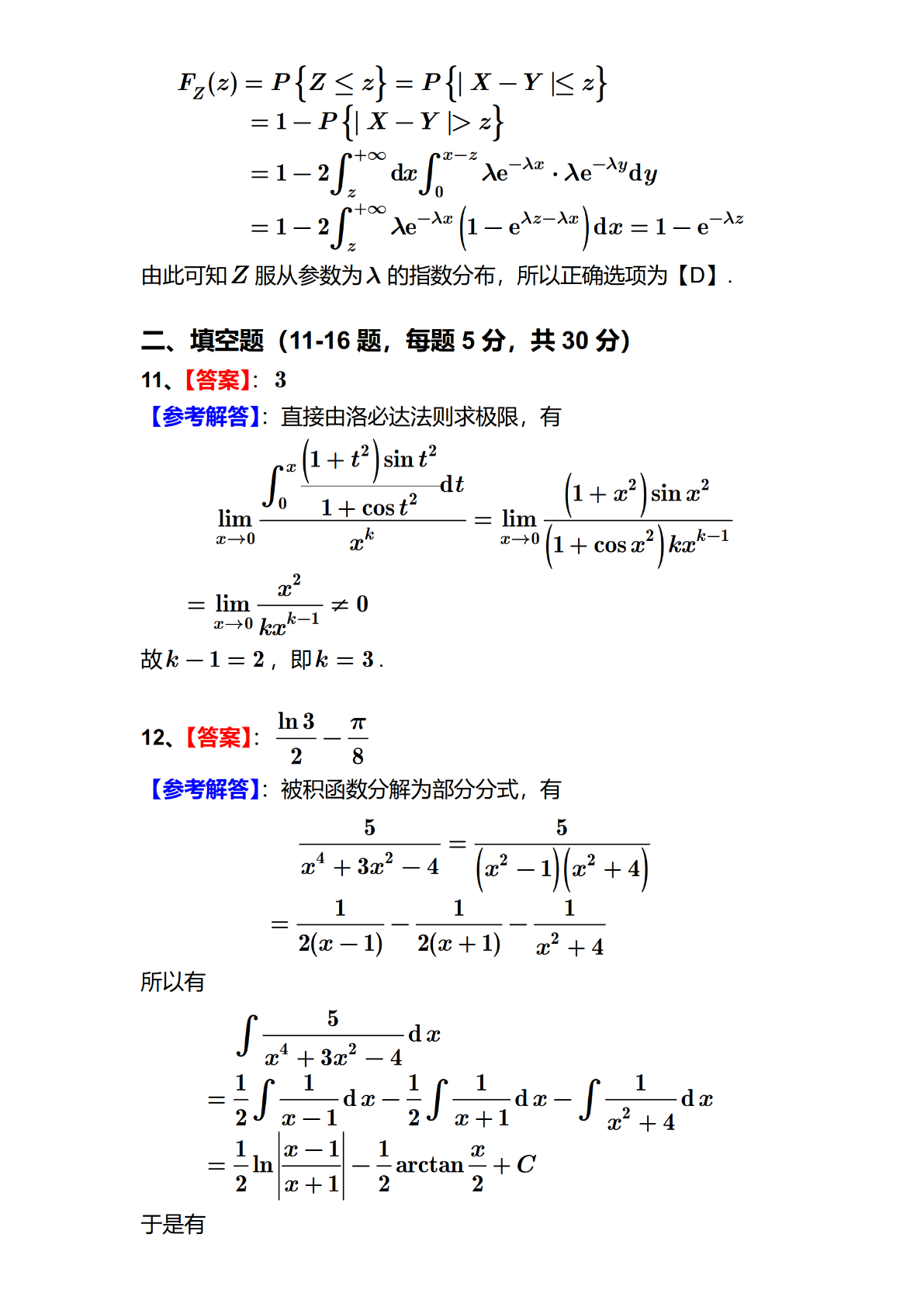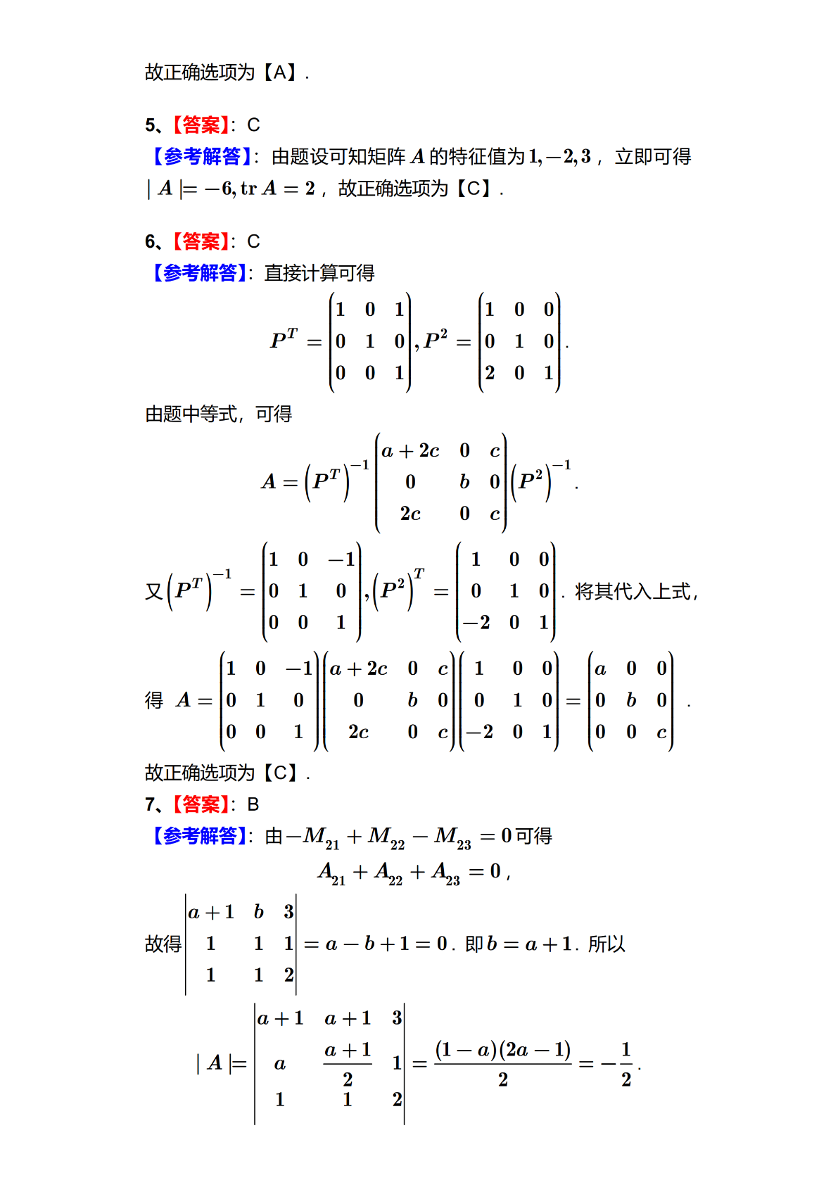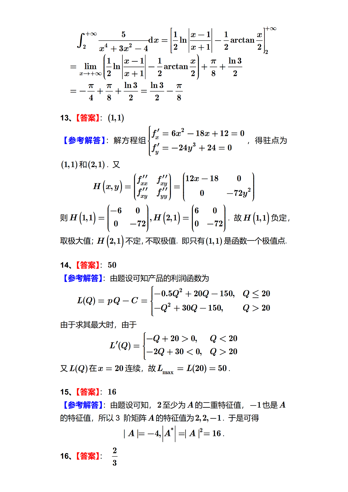 2024年全国硕士研究生招生考试数学(三)试题及答案