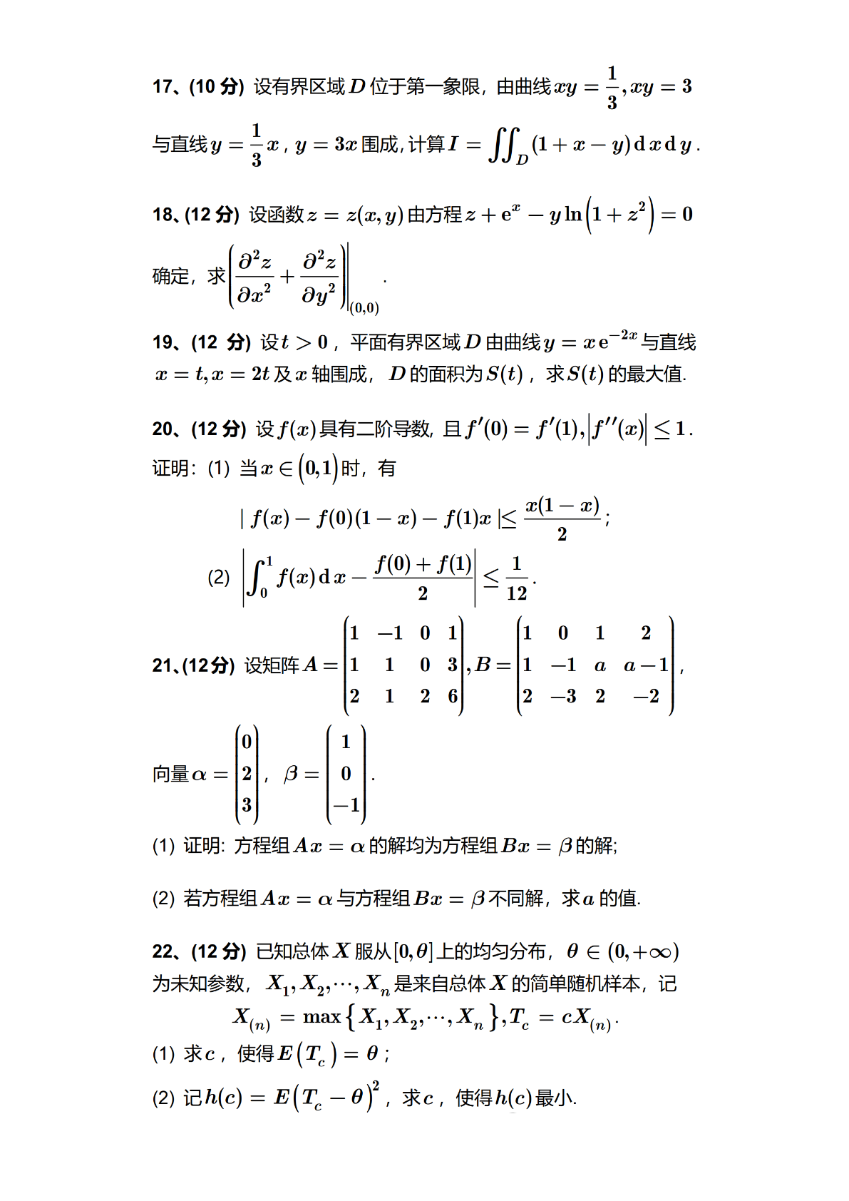 2024年全国硕士研究生招生考试数学(三)试题及答案.pdf