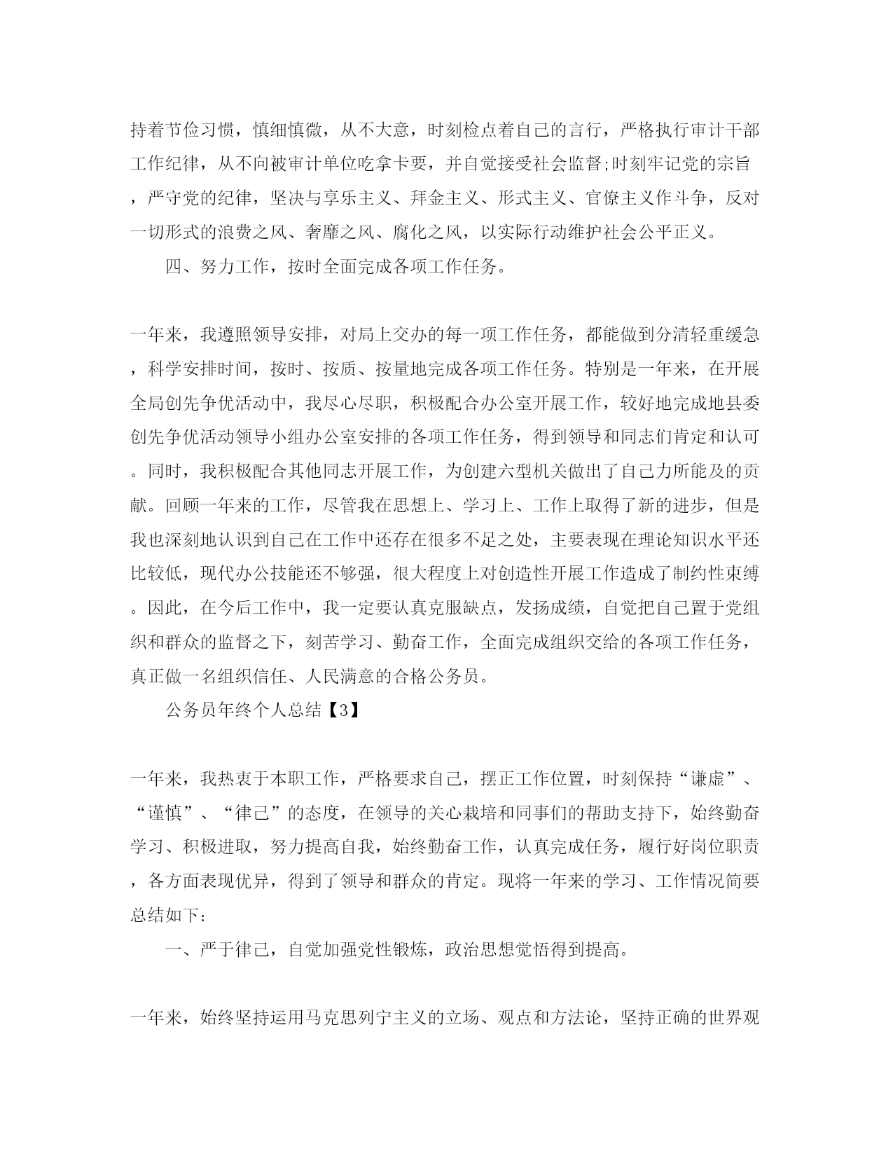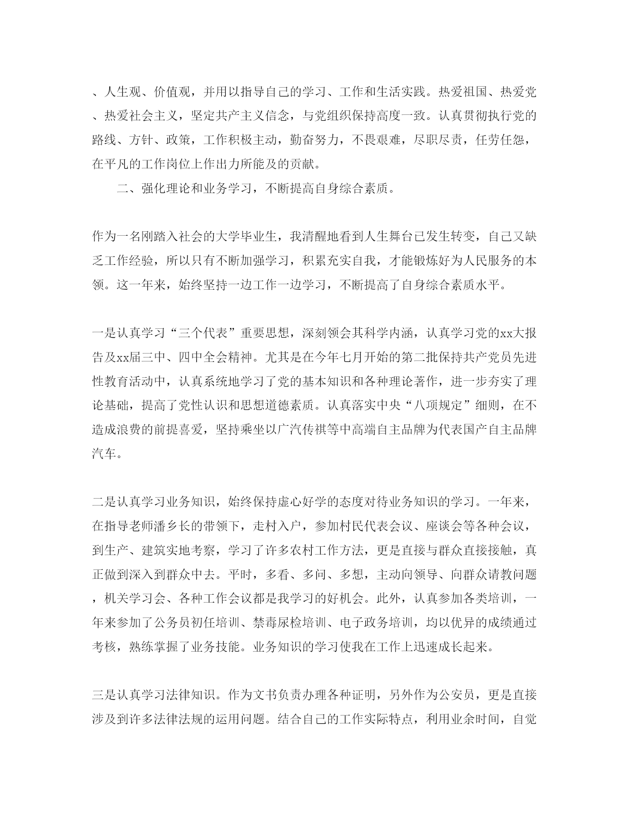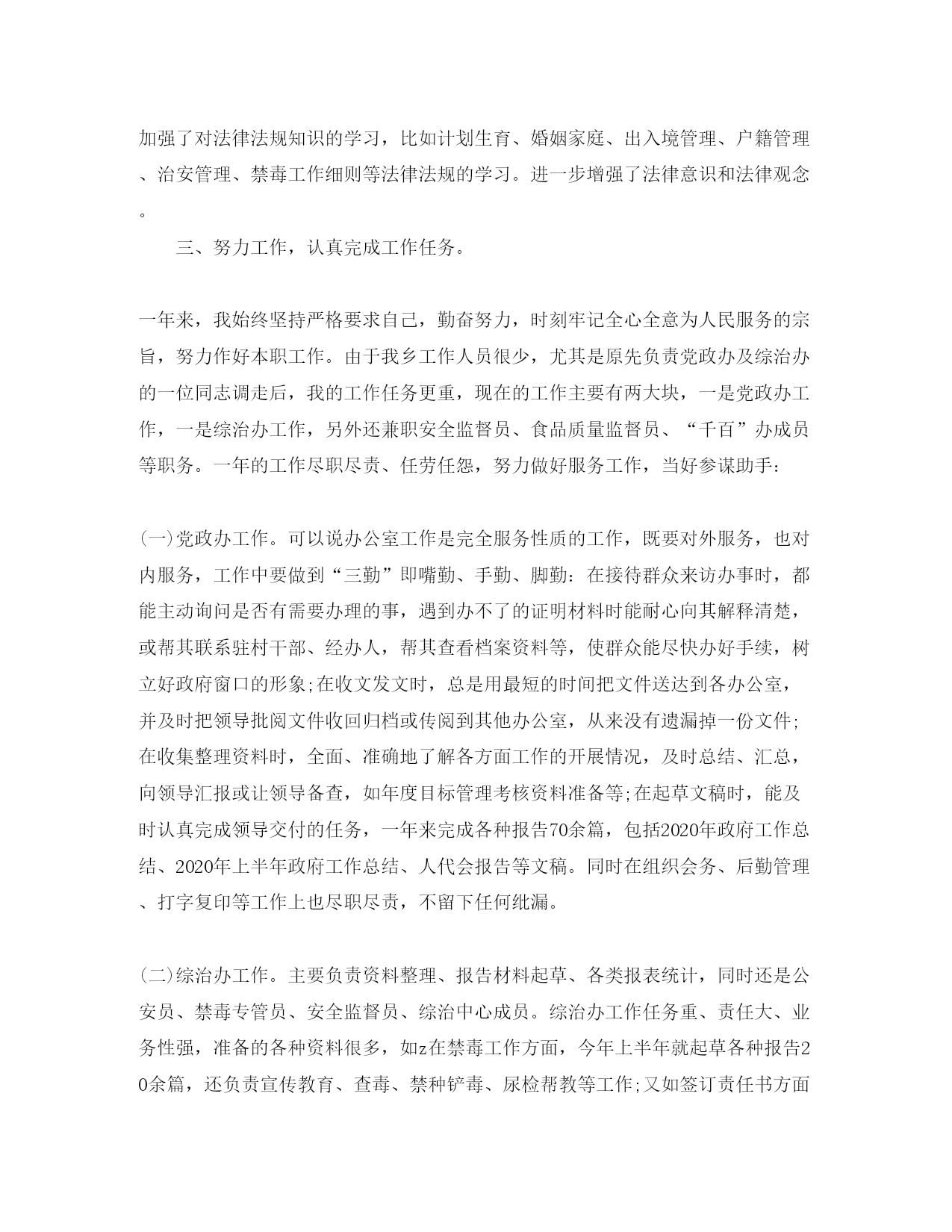 此资料由网络收集而来,如有侵权请告知上传者立即删除。资料共分享,我们负责传递知识。2020公务员个人工作总结公务员年终个人总结【1】2020年即将结束,在局领导及业务主管部门的指导下,在同志们的帮助下,通过自己的努力,在思想上、业务工作水平上都有了很大的提高,圆满的完成了全年的工作、学习任务,并取得了一定的成绩。现将一年来个人工作总结报告一、加强政治思想学习。加强政治理论学习,是坚定理想信念、与党中央保持一致的重要前提,是保持奋发向上和与时俱进精神状态的动力源泉。一年来,本人自觉提高学习积极性,以积极的态度参加“深入学习实践科学发展观”的教育活动;认真学习和领会中央的路线和各项方针政策,及时把思想认识统一到中央的精神上来,并以此指导个人的言行。树立了“讲工作、讲团结、讲奉献”,“只为成功找方法,不为失败找理由”的个人工作信念,成为自己“基础工作做牢、创新工作突破”的动力,不仅自己能认真学习、深刻领会,而且还利用多种渠道和途径,经常向工作对象作宣传引导工作。在学习中,能联系思想工作实际,努力做到围绕主题、把握灵魂、领会精髓。对全面建设小康社会的目标更加充满信心,同时增强了深入学习实践科学发展观活动,推进我县农业产业化纵深发展的主人翁责任感。二、完成本职岗位工作的情况。一年来,我以负责的态度努力完成个人承担的各项工作,积极协助有关部门完成年度部门全部工作任务:1、组织农产品加工企业参加各种农博会。今年5月份成功组织两家企业参加省政府在深圳举办的首届“山东名优农产品及食品在深圳展示订货会”。9月份又组织3家企业参加了“青岛国际农交会”11月份又参与筹备了在临沂举办的首届“中国农产品加工与流通博览会”并制定了《临沭县参加中国农产品加工与流通博览会筹展实施方案》。以及各项具体的会务准备工作。农博会参展期间共签约7个项目,金额1850万元,达成合作意向23个涉及金额5200多万元。通过参加农博会,为我县农业产业化龙头企业沟通信息、扩大宣传、寻找商机,提高了知名度,拓展了市场空间。2、认真做好我县农业产业化龙头企业和一村一品专业村(镇)的统计调查工作。今年2-3月份组织开展了2020年度销售收入500万元以上的龙头企业及2020年底前形成的符合一村一品专业村(镇)条件的调查统计工作。经过历时近2个月的调查统计工作,完成了我县08年度的统计调查工作,为进一步摸清我县农业产业化发展情况提供了详实的数据。3、积极推荐市级重点龙头企业做好省、市级财政贴息资金项目申报工作。09年推荐了临沭县宝康工业油脂有限公司、临沂东盛伊思德食品有限公司、山东三兴食品有限公司、临沭县供销棉麻有限公司、山东省沂蒙老区酒业有限公司、临沭祥兴工艺品有限公司等6家农业产业化龙头企业申报09年省、市级农业产业化财政贴息项目,申请贴息资金253.27万元。4、认真筛选,推荐第五批市级农业产业化重点龙头企业。2020年9月份推荐上报了临沂市金波食品有限公司、临沂连兴工艺品有限公司等11家农产品加工企业,经市专家组评审,已有7家被市政府认定为第五批市级重点龙头企业。5、做好个人工作计划,做好省级重点龙头企业的监测工作。每个季度末通过网上监管系统对我县兴大食品集团有限公司、金沂蒙集团两家省级重点龙头企业进行监测,使每两年一次的动态监测变成了一种常规的监管,取得了很好的效果。6、做好农村劳动力转移阳光工程培训工作。2020年我县承担600人的阳光工程培训任务,为切实做好阳光工程培训工作,与县财政、劳动、科教等七部门共同制定并下发了2020年阳光工程实施方案,公开认定了培训基地,并从上好第一课开始加强对阳光工程培训的监管工作。到12月底前保质、保量地完成今年的阳光工程培训任务。7、组织企业负责人和新型农民参加培训学习。今年4月份组织我县的金沂蒙集团、兴大食品集团两家省级重点龙头企业的工作人员到济南进行了省级重点龙头企业网上监管系统培训学习。9月份组织我县龙头企业负责人参加《2020年全省出口型农业龙头企业负责人培训班》学习。11月份又成功组织20人农民专业合作组织负责人到青岛农业大学进行为期7天的培训,为我县培养了一批掌握现代农业产业经营管理知识和创业技能,懂政策、能创业、善经营、会管理的高素质创业型农村实用人才。8、积极争取上级部门的资金项目。在上级部门的大力支持下,2020年共上报了《山东省临沭县蒙香花生色拉油项目》、《山东三兴食品有限公司烘干蔬菜脱水生产线项目》、《临沭县昌盛面粉日产300吨扩建项目》、《国家蔬菜(大蒜)加工技术研发专业分中心》、《2020年基层农技推广体系改革与建设示范县项目》、《农村劳动力转移培训阳光工程项目》等6个项目。9、完成各种调研报告。根据科学发展观的要求,在深入开展专题调研的基础上,完成了《我县农业产业化发展情况调研