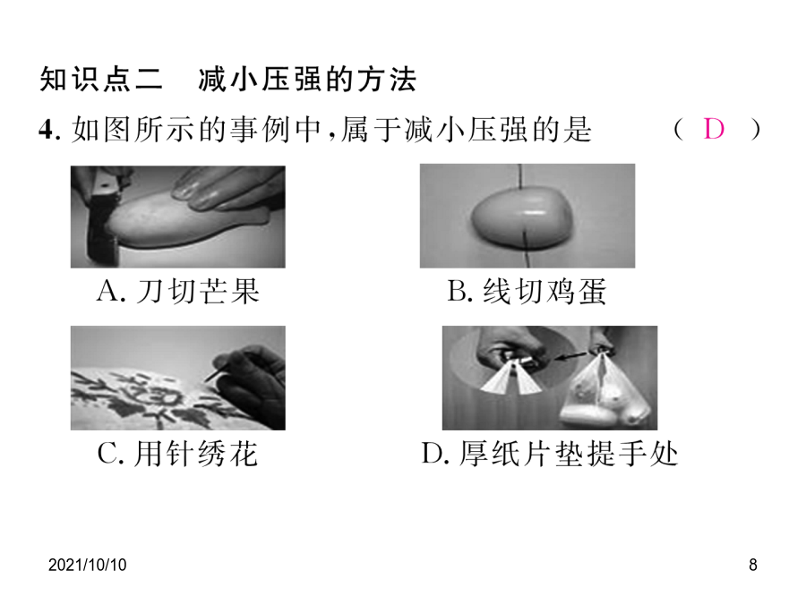 最新第2课时增大或减小压强的方法及压强的应用-经典通用.ppt