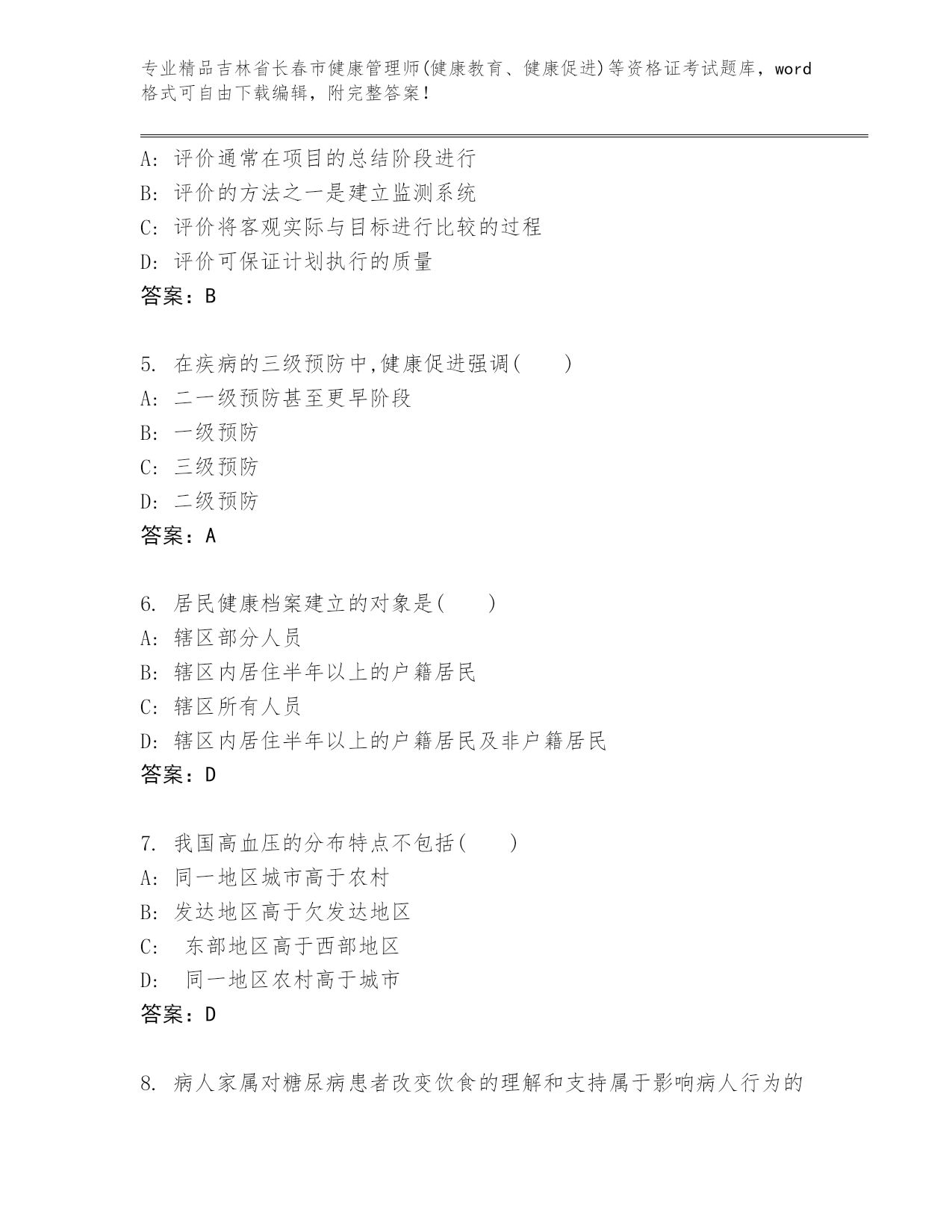 吉林省长春市健康管理师(健康教育、健康促进)等资格证考试王牌题库加答案解析
