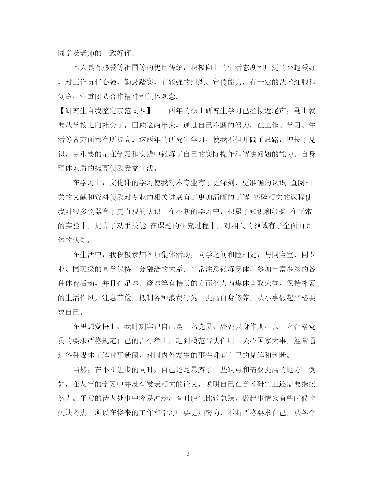 此资料由网络收集而来,如有侵权请告知上传者立即删除。资料共分享,我们负责传递知识。PAGEPAGE4最新研究生自我鉴定表范文自我鉴定时自己在学习、工作中的过程、成效进行评定。下面由小编为大家收集的4篇研究生自我鉴定表范文,仅供大家参考!【研究生自我鉴定表范文一】从本科毕业到走入研究生的教室,再由研究生的教育中走进社会,虽然短短几年,却是我人生中最大的财富,它将伴随着我的一生,渲染着我的思想,引导给我方向,传递给我力量。在进入研究生学习之前,我就暗自下定决心,要把握住任何机会锻炼自己,多积累实践经验和教训。思想上,我在本科期间已经成为了正式党员,于是在研究生学习期间不断帮助其他同学入党,无论是学习“三个代表”活动,还是党支部组织的趣味运动会,我都积极参与,争取为班争光,起表率带头作用。学习上,在LCF导师的教导下,深入研究了石家庄市科技局的基金项目——石家庄市企业自主创新能力建设研究,通过各位老师的帮助和自己的努力,项目进行有条不紊,指标设计有效,提出的对策建议切实可行。在此期间,我的学术研究水平得到了提高,经济学和管理学知识十分融洽地结合,达到了提高自我素质、深入社会实践的目的。在今后的社会生活中,会面临更大的挑战和机遇,我已经做好了准备,迎头而上。我会继续学习,不断进取,勇于开拓,直视困难,校正缺点,实现更高的社会价值。【研究生自我鉴定表范文二】本人在硕士研究生学习阶段,注重政治理论学习,关心国家大事,认真学习”三个代表”重要思想和党的创新理论,拥护党的路线方针政策,自觉以科学发展观来认识世界和社会,时刻牢记担负的社会责任,时时以共产党员的先进性标准来要求自己、事事力争做到模范带头。在专业课程学习上,根据研究方向的要求,认真学习了通信领域的核心课程,所选课程全部达到国家要求。在科研实践中,广泛阅读有关博士、硕士论文和大量的外文文献,开阔视野的同时,对本人研究方向的应用背景以及整个学科的结构有了宏观的认识。勤恳踏实,注重团队合作精神和集体观念,实践动手能力比较强,参与了导师多项课题的研究,使自己的理论知识与实践水平得到了进一步的增强和提高,同时顺利完成了硕士毕业论文。在平时生活中,为人处世和善热情,和同学关系融洽;积极参与班级各项集体活动,热情为同学们服务。在研究生阶段,从学业、科研工作,到个人素质,都得到了充分的培养和锻炼,是充实且有意义的两年。相信这些经历和积累都将成为本人人生道路上的宝贵财富。在以后的工作和学习中,本人将继续保持并发扬严谨治学的作风,兢兢业业,争取取得更大的成绩。【研究生自我鉴定表范文三】三年的大学校园生活是我人生的一大转折点。我于XX年9月以优异的成绩考入XX大学。四年的校园生涯和社会实践生活我不断的挑战自我、充实自己,为实现人生的价值打下坚实的基础。一直都认为人应该是活到老学到老的我对知识、对本专业一丝不苟,因而在成绩上一直都得到肯定,每学年都获得三等奖学金。在不满足于学好理论课的同时也注重于对各种应用软件和硬件的研究。因此在第四学期开始就被老师信任为计算机房的负责人。有广泛爱好的我特别擅长于排版及网页美工和多媒体的制作,就任本班组织委员的同时也加入了校学生会宣传部。对工作热情、任劳任怨,和部内成员团结一致,一年间我由部委升为部长。在任部长期间注重配合学校、学生会其它部门,出色的完成各项宣传工作,促使学校的各种运作更顺利的同时行。学校的各种活动都热情的参加,在XX年至XX年间获校文娱比赛及知识问答比赛等一等奖。大胆创新对校报版面进行改革,使得校报的受视率提高到一个层次。学校的各种活动都热情的参加,在XX年X月获校演讲比赛一等奖。身为学生的我在修好学业的同时也注重于对社会的实践。本着学以致用,实践结合理论发挥XX年暑假我以熟练的计算机技术应聘入揭阳市凌先电脑公司技术部任技术员兼培训部教师。技术员兼培训部教师。XX年暑假我在惠东县亿鹏印刷公司学习名片和小型广告、商标设计,自身对这方面有坚实基础和浓厚兴趣的我用一周时间就熟练了各样设计软件,之后做出了大量出色的设计方案,得到同学及老师的一致好评。本人具有热爱等祖国等的优良传统,积极向上的生活态度和广泛的兴趣爱好,对工作责任心强、勤恳踏实,有较强的组织、宣传能力,有一定的艺术细胞和创意,注重团队合作精神和集体观念。【研究生自我鉴定表范文四】两年的硕士研究生学习已经接近尾声,马上就要从学校走向社会了。回顾这两年来,通过自己不断的努力,在工作、学习、生活等各方面都有所提高。这两年的研究生学习,使我不但开阔了思路,增长了见识,更重要的是在学习和实践中锻炼了自己的实际操作和解决问题的能力。自身整体素质的提高使我受益匪浅。在学习上,文化课的学习使我对本专业有了更深刻、更准确的认识;查阅相关的文献和资料使我对专业的相关