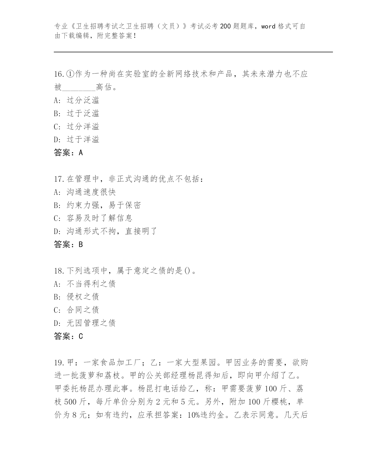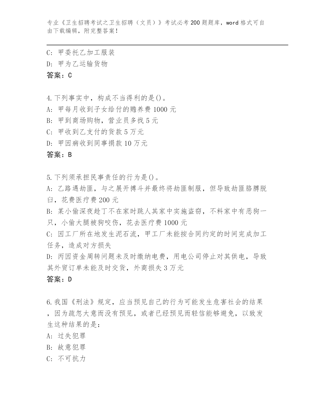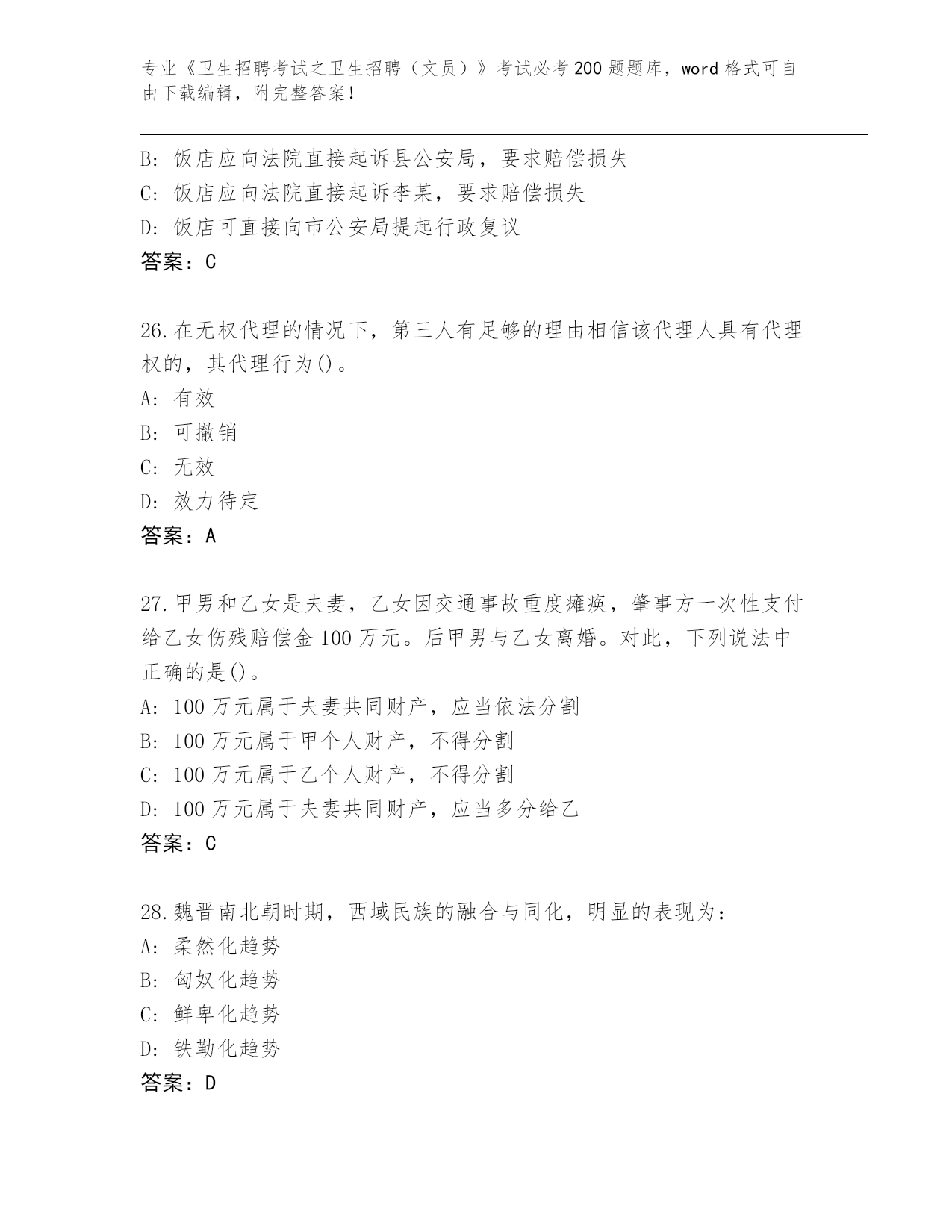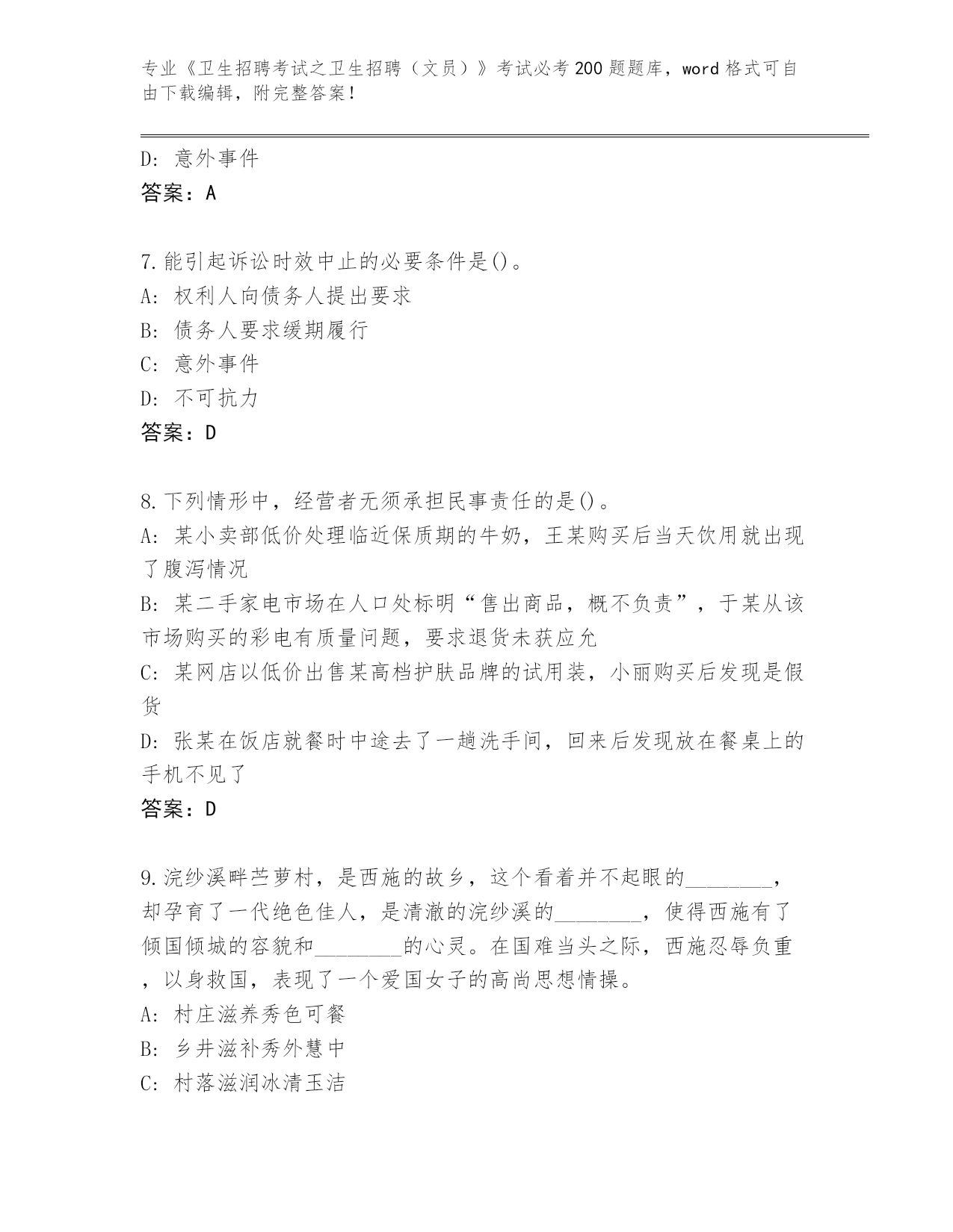 河北省蔚县《卫生招聘考试之卫生招聘(文员)》考试必考200题题库及答案下载