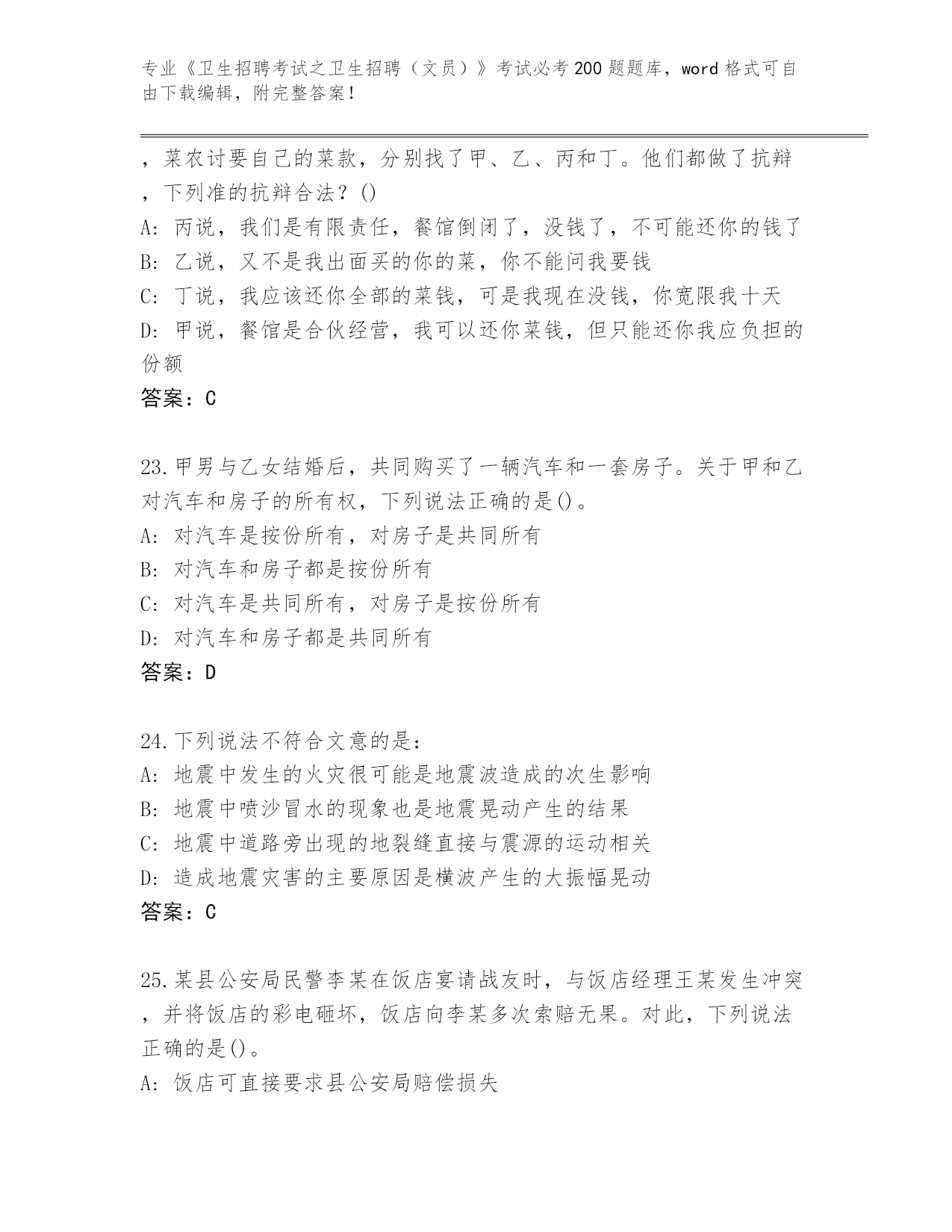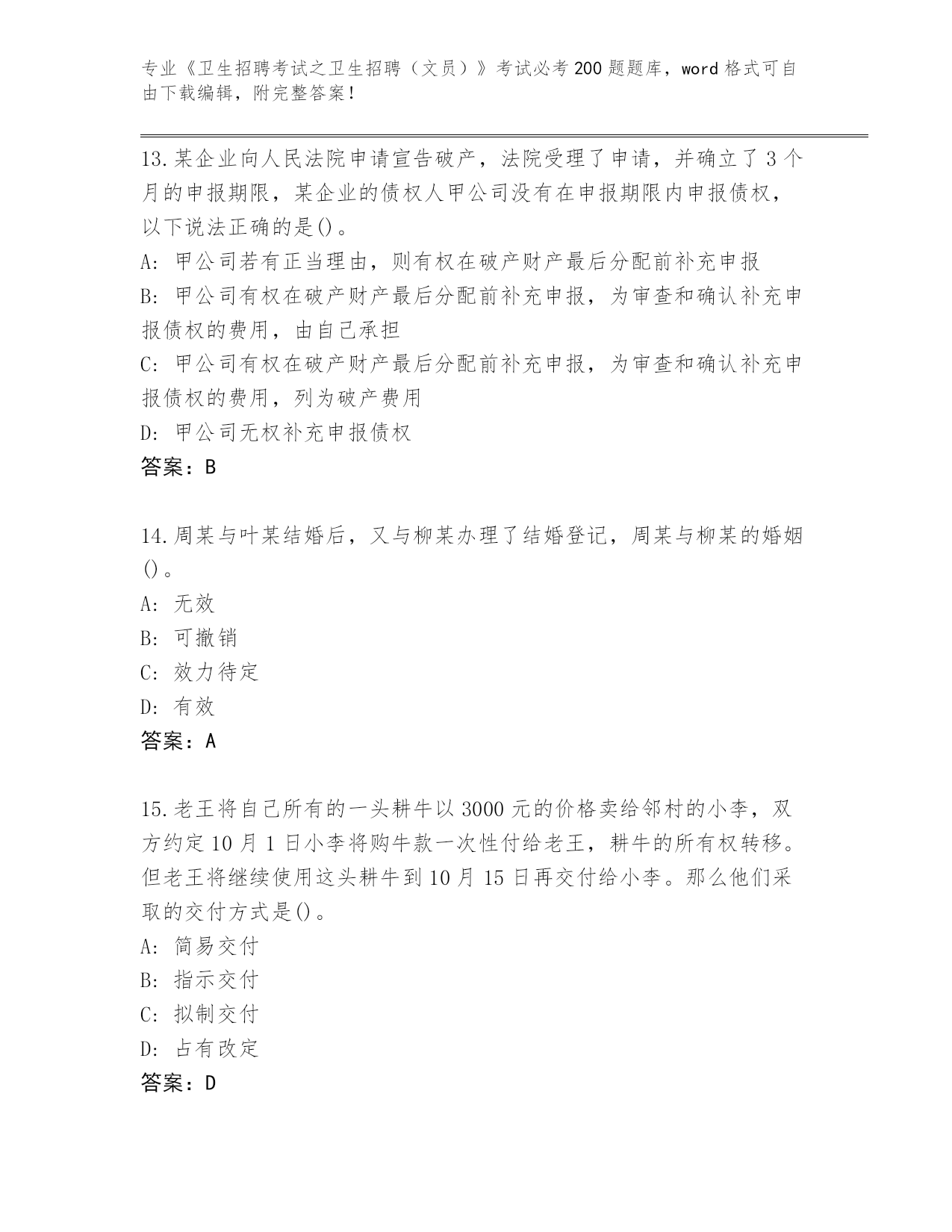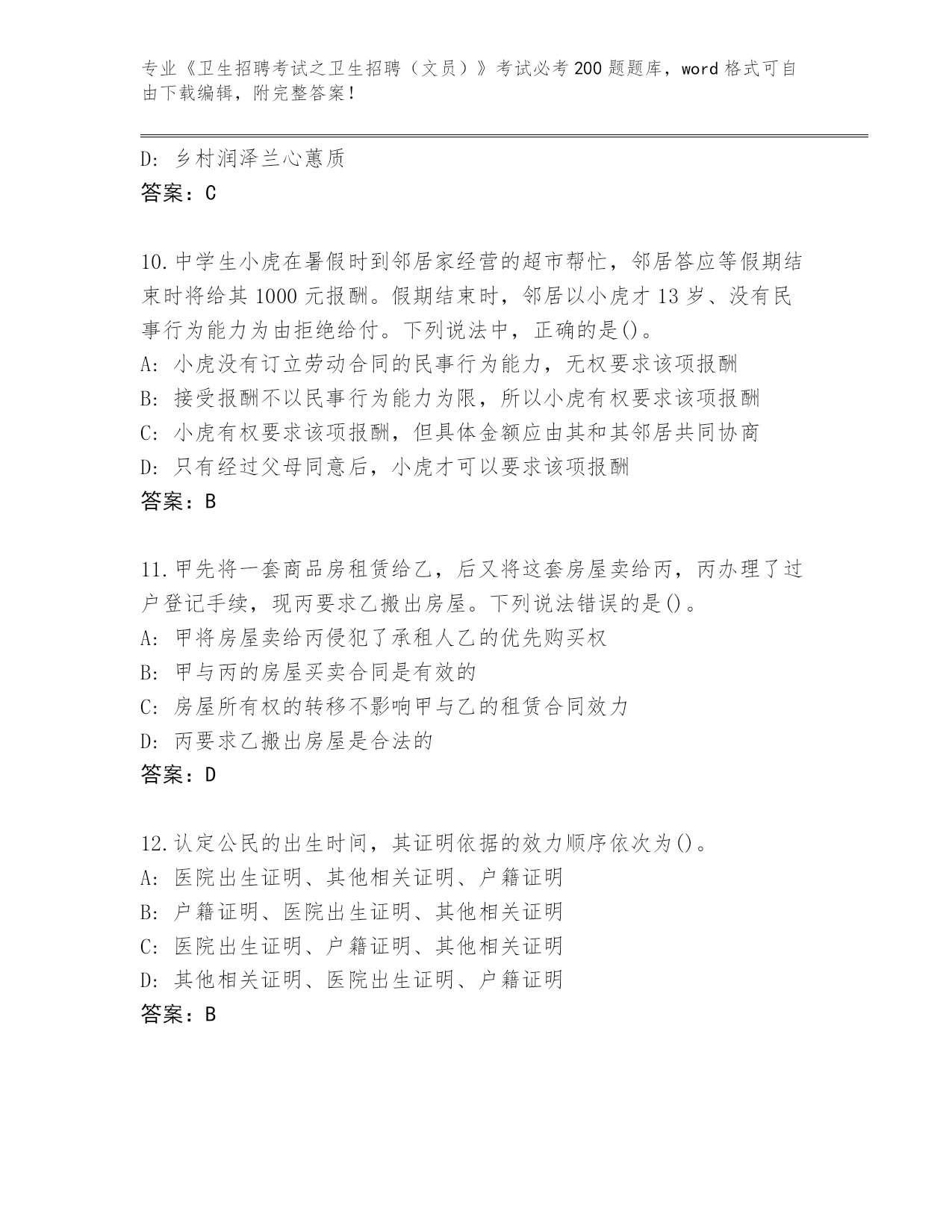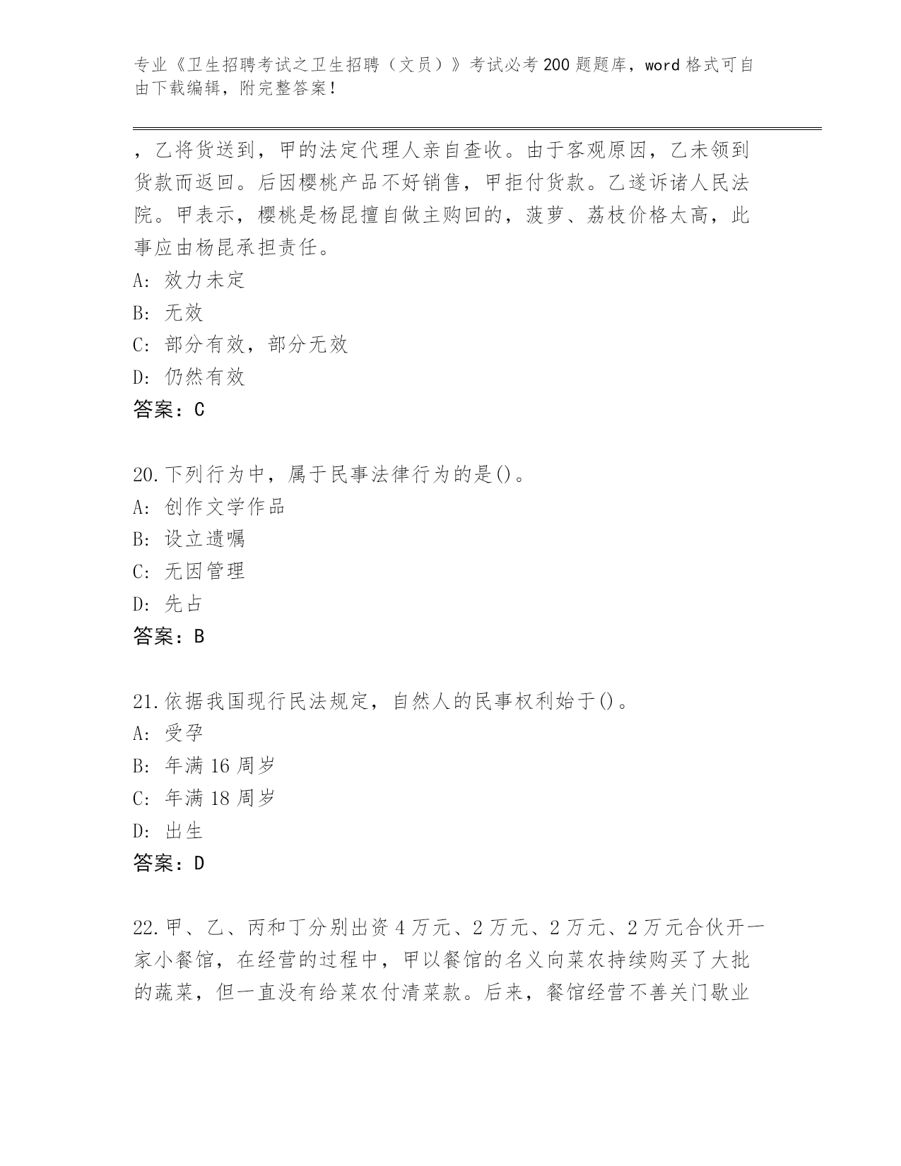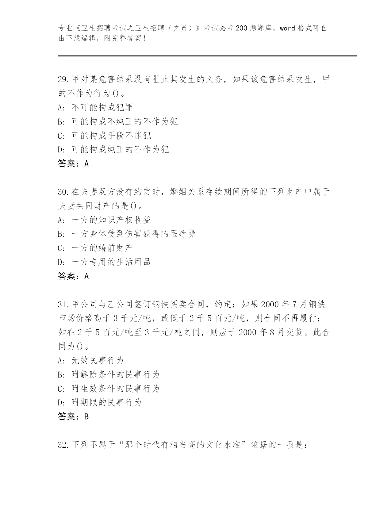 河北省蔚县《卫生招聘考试之卫生招聘(文员)》考试必考200题题库及答案下载