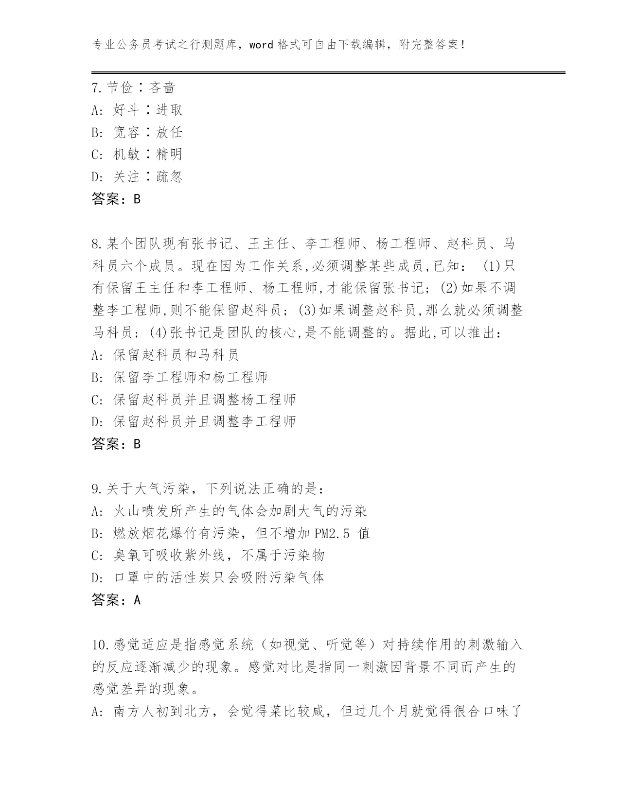 云南省永胜县完整版公务员考试之行测大全附答案下载