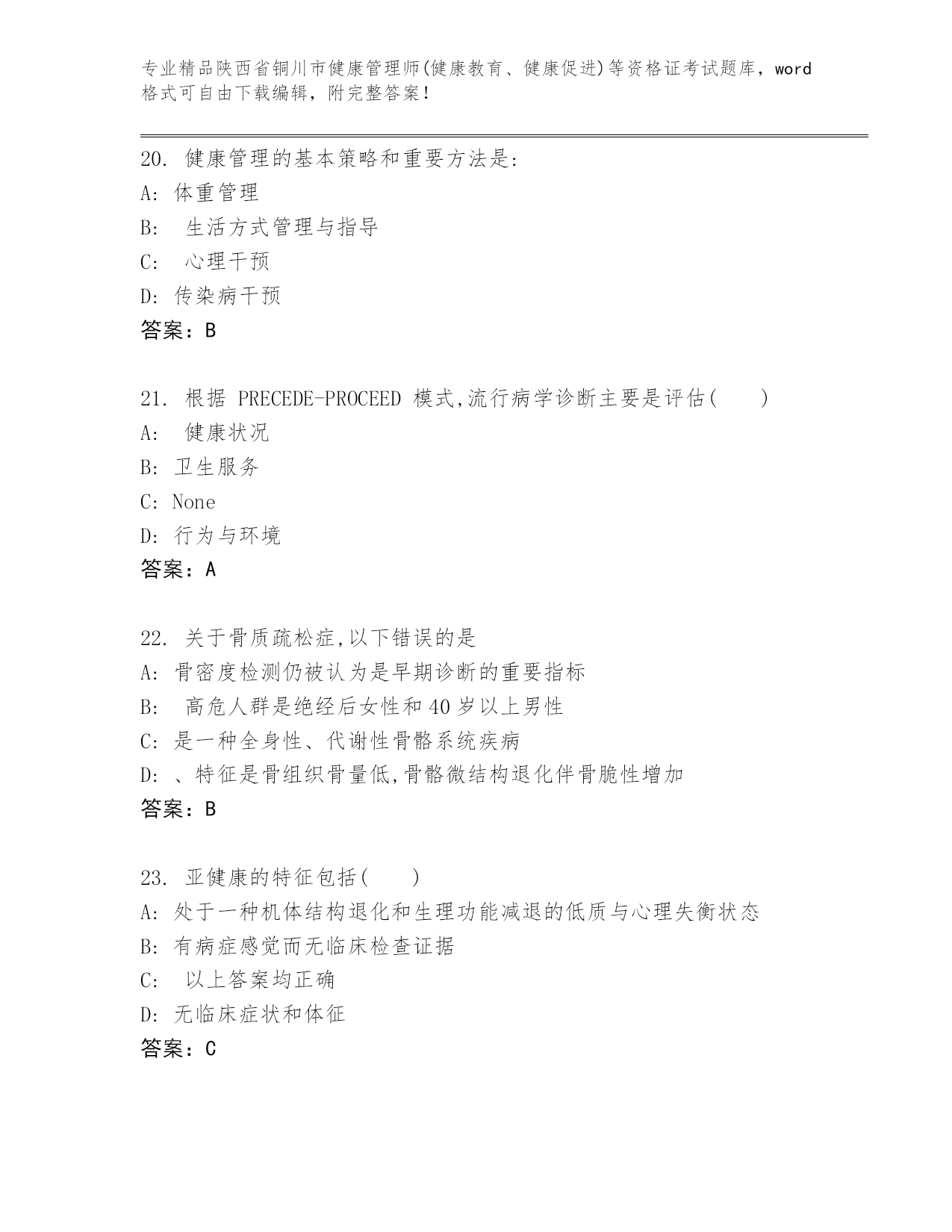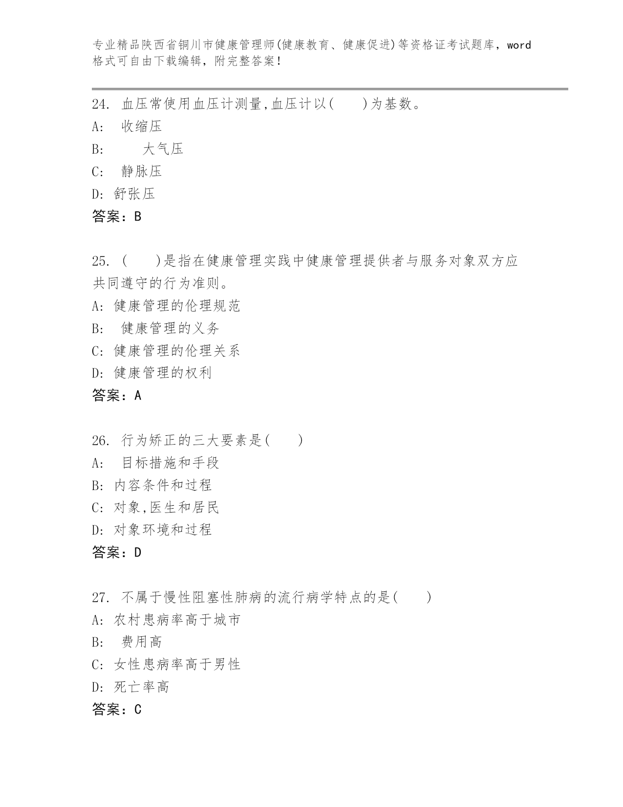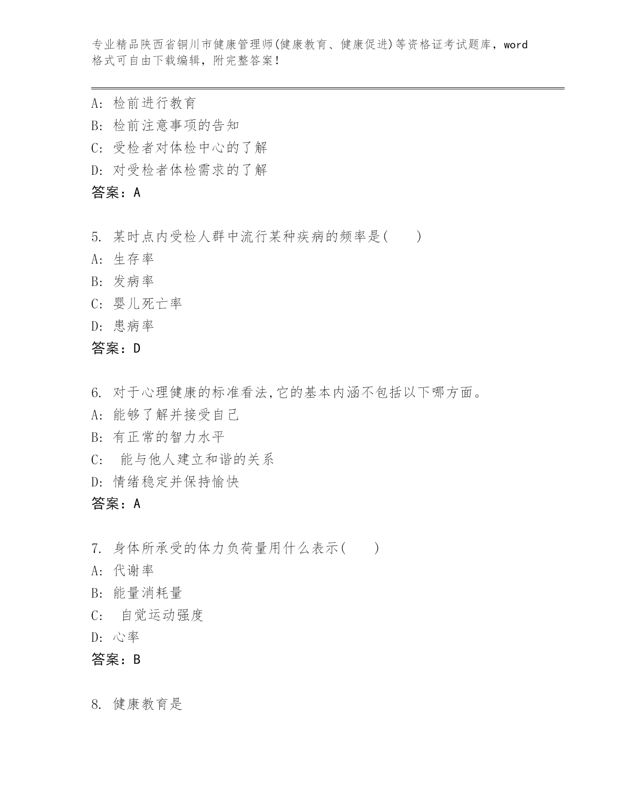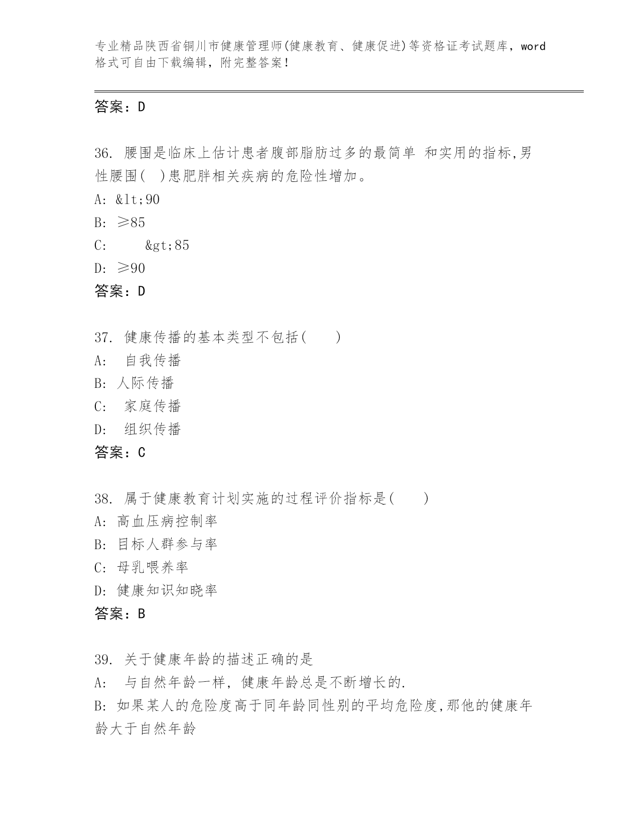 内部培训陕西省铜川市健康管理师(健康教育、健康促进)等资格证考试大全(巩固).docx