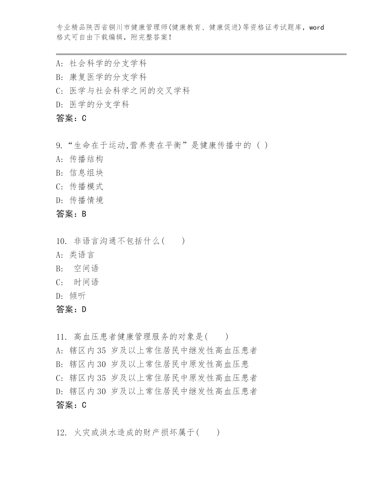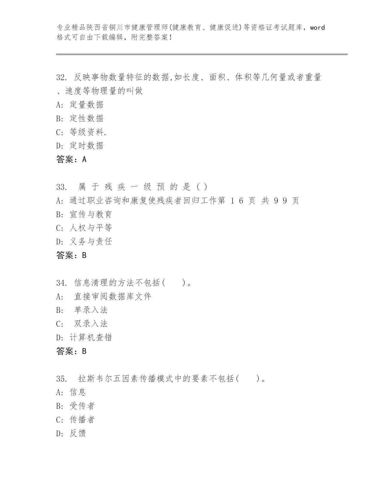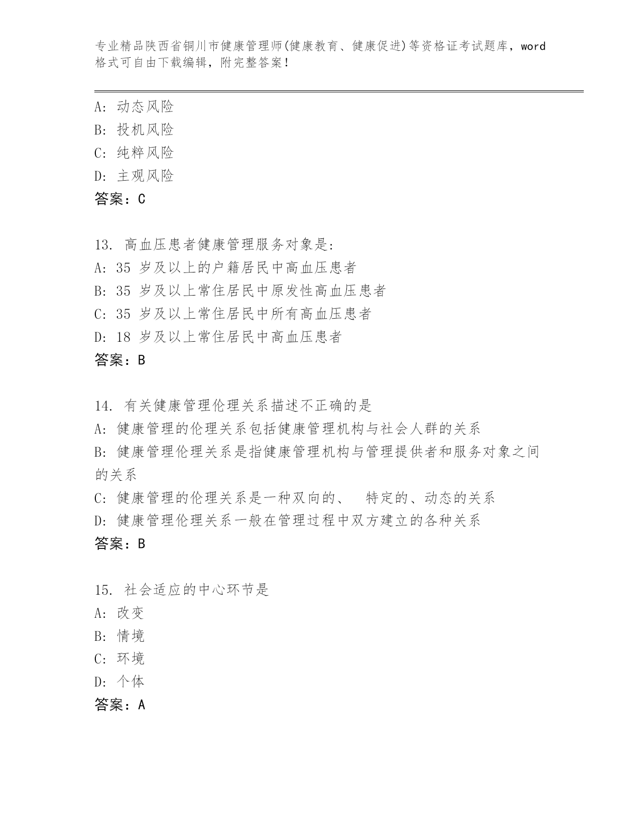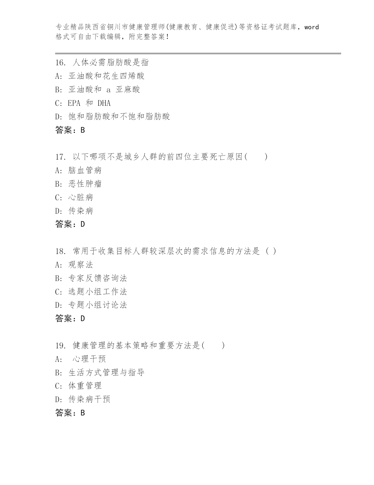 内部培训陕西省铜川市健康管理师(健康教育、健康促进)等资格证考试大全(巩固).docx