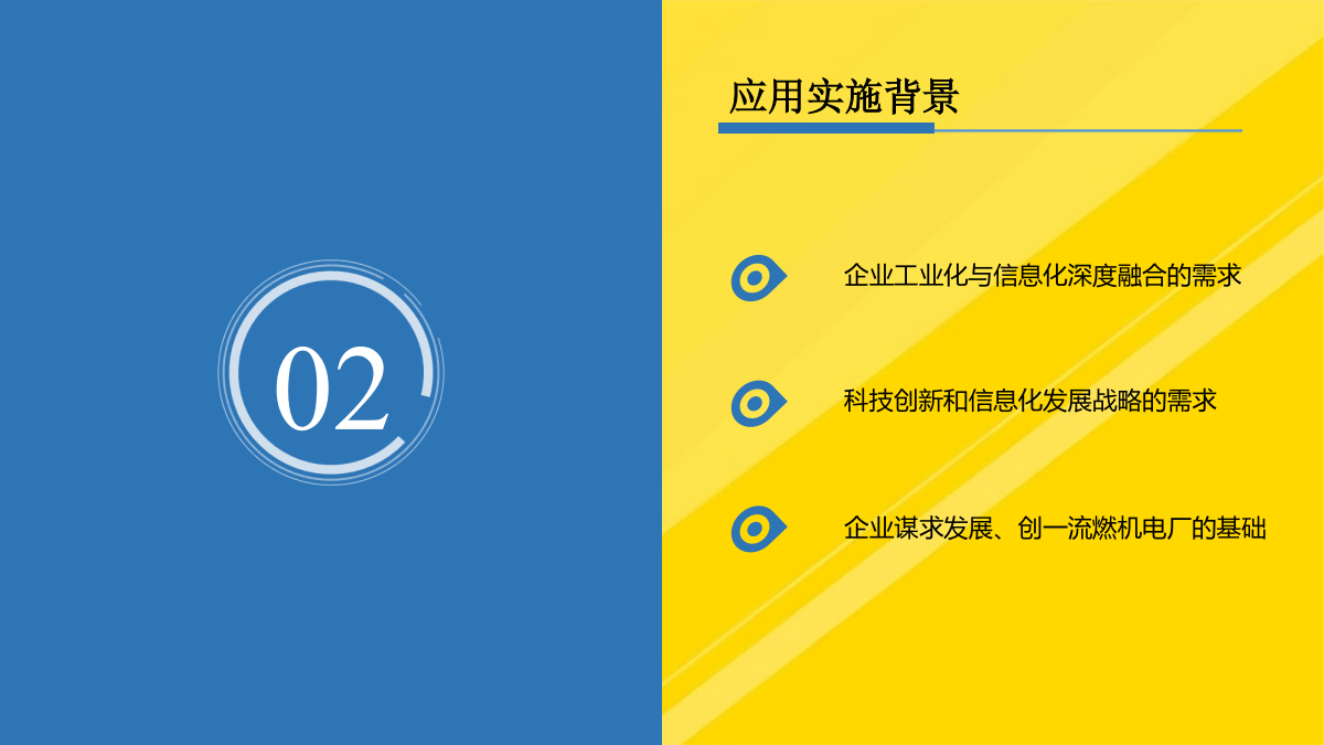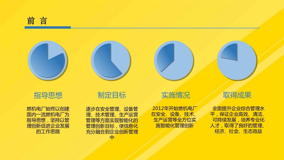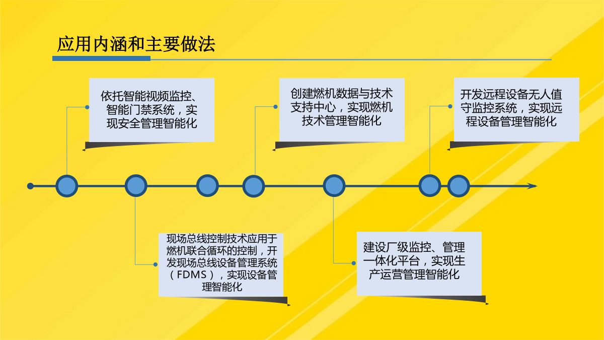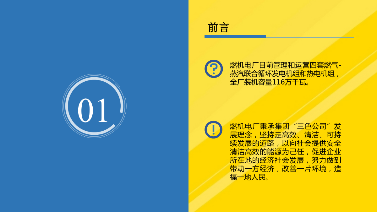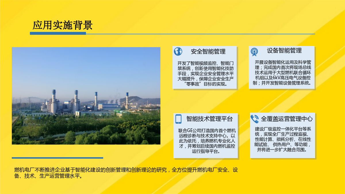 囊括所有管理人员、生产人员、外包维护人员、物业保洁人员现场总线设备监控管理系统将设备分为变送器、执行机构、电动机和其他(如阀导)4类进行管理,以便统计和查询。电厂运营管理中心的投用,大大提升了企业管理的效率,降低了人工、办公、设备维护、机组运行等成本,节约各项费用。高效清洁的燃气-蒸汽联合循环机组,提高了资源利用率(效率高达57%),在有效降低单位GDP能耗的同时,大大减少了氮氧化物的排放,提高电厂的环保水平,树立了我国现代化电厂在环境保护方面的公众形象。与人员工号相挂钩,管理方技术应用4—现场总线设备监控管理系统技术应用6—厂级监控、管理一体化平台水洗前,压气机效率降低科技创新和信息化发展战略的需求技术应用2—智能门禁系统技术应用5—燃机数据与技术支持中心水洗前,压气机效率降低安全带智能识别:选定区域若有人未系安全带,该系统告警。种类繁多,钥匙管理困难年9月28日下午4点59分,M&D接收到#1机组燃烧冷点报警,机组运行于190MW,分散度由正常运行时的30华氏度上升至60华氏度。技术应用1—智能视频监控安全帽智能识别:2012年09月10日13时31分#3燃机88TK模块基础模板安装过程中一名作业人员未带安全帽被抓拍技术应用3—现场总线技术在燃机电厂应用开发了智能视频监控、智能门禁系统,创新使用智能化技防手段,实现企业安全管理水平大幅提升,保障企业安全生产“零事故”目标的实现。燃机电厂目前管理和运营四套燃气-蒸汽联合循环发电机组和热电机组,全厂装机容量116万千瓦。现场工况性能监视(老化)技术支持中心减少电厂机组非计划停运。通过实时监控,维护人员能快速地定位问题采用以太网和MIS网络,通过防火墙和单向网闸自下而上单向传输数据。技术应用2—智能门禁系统现场总线控制技术应用于燃机联合循环的控制,开发现场总线设备管理系统(FDMS),实现设备管理智能化联合GE公司打造国内首个燃机远程诊断与技术支持中心。技术应用6—厂级监控、管理一体化平台为企业获取可持续发展动力,是建立管控制一体化平台的目的车辆速度智能识别:若选定区域有车辆超过规定速度行驶,该系统告警。技术应用5—燃机数据与技术支持中心电厂推动创新管理闭环联动及持续改进,实现技术、业务流程、组织结构三要素的同步创新和持续优化,从而实现管理模式的螺旋式提升停机孔探后,证实1号燃烧筒有裂纹,更换后,机组重启后恢复正常。高效清洁的燃气-蒸汽联合循环机组,提高了资源利用率(效率高达57%),在有效降低单位GDP能耗的同时,大大减少了氮氧化物的排放,提高电厂的环保水平,树立了我国现代化电厂在环境保护方面的公众形象。功能与定位技术应用5—燃机数据与技术支持中心应用成效技术应用6—厂级监控、管理一体化平台应用实施效果THANKS谢谢观看