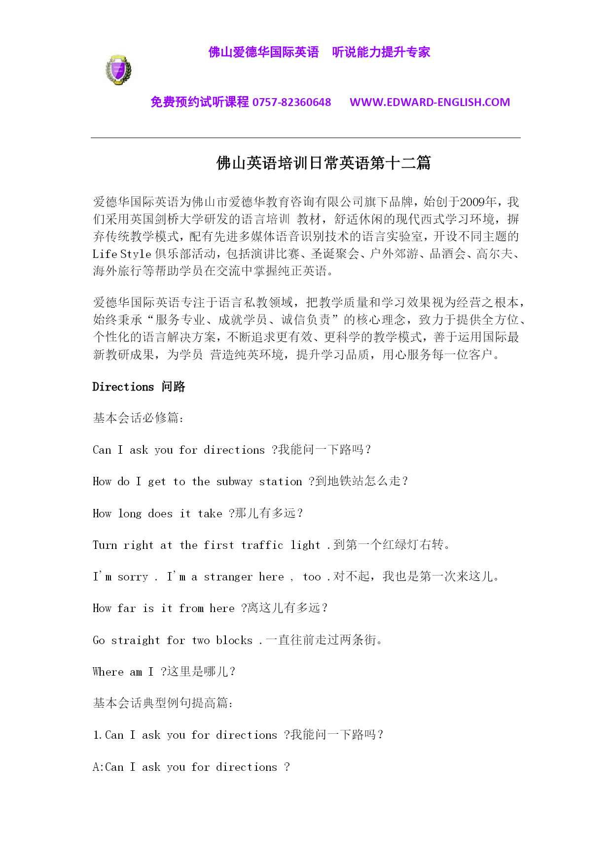 佛山英语培训首选佛山爱德华国际英语日常英语第十二篇.doc
