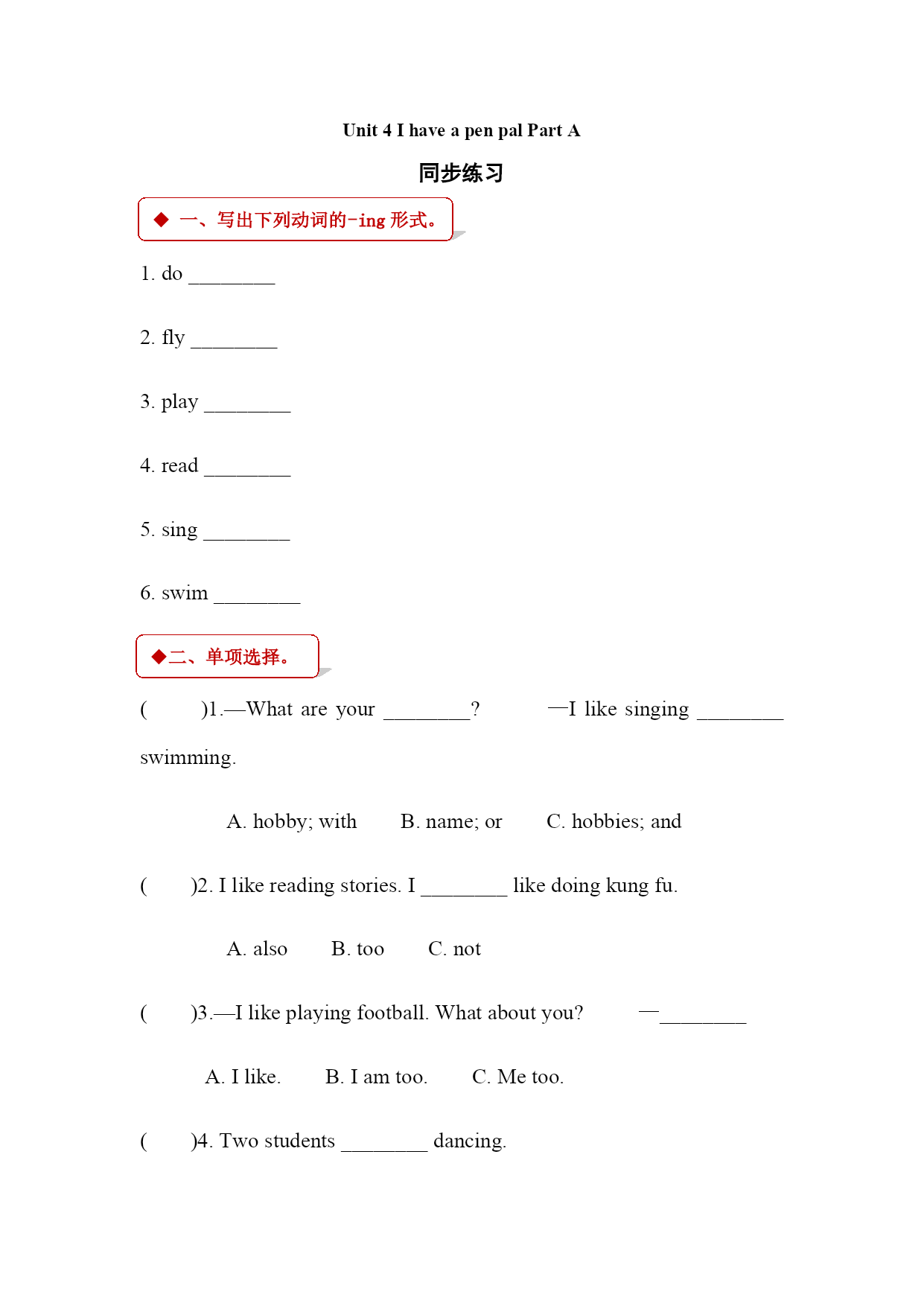 第一单元同步习题Part A(含听力材料及答案)-最新经典通用教辅资料