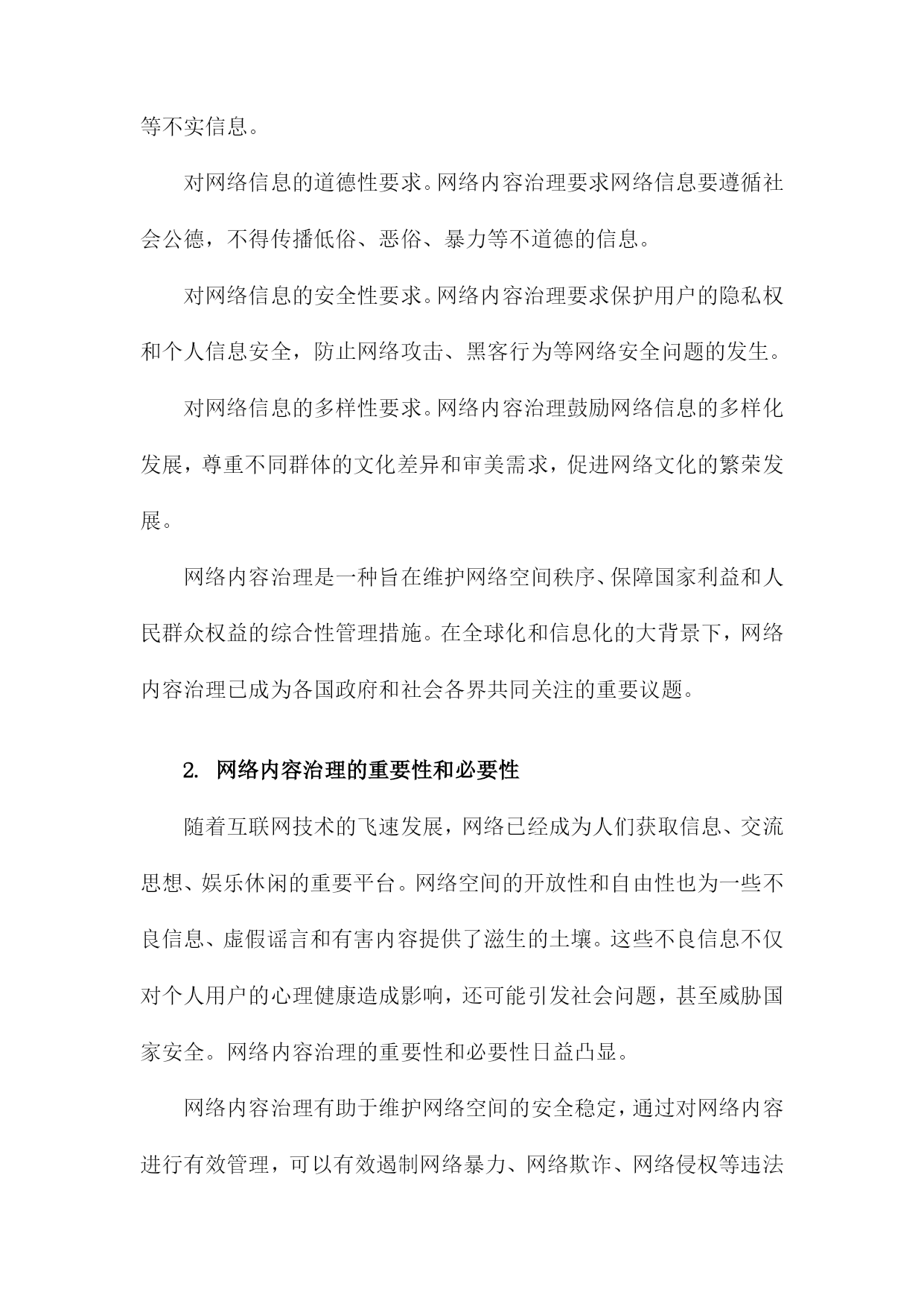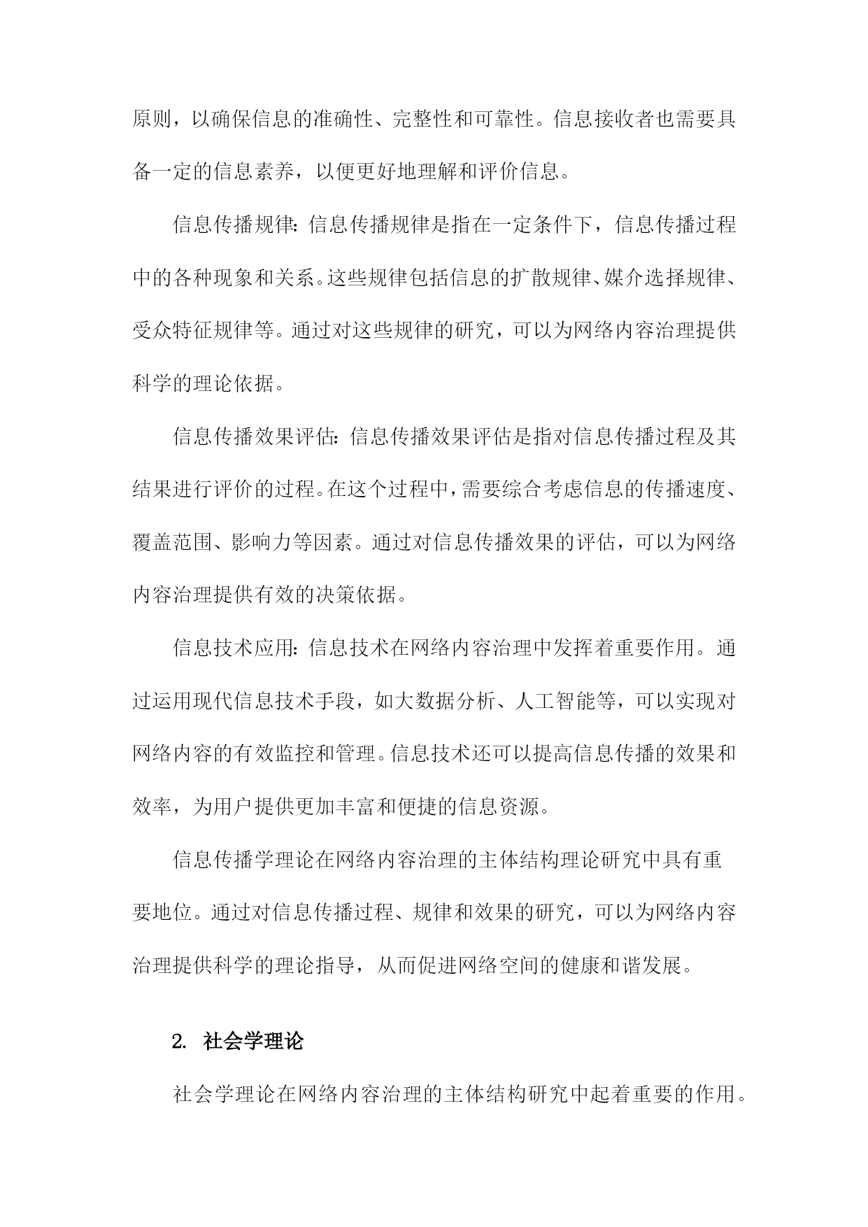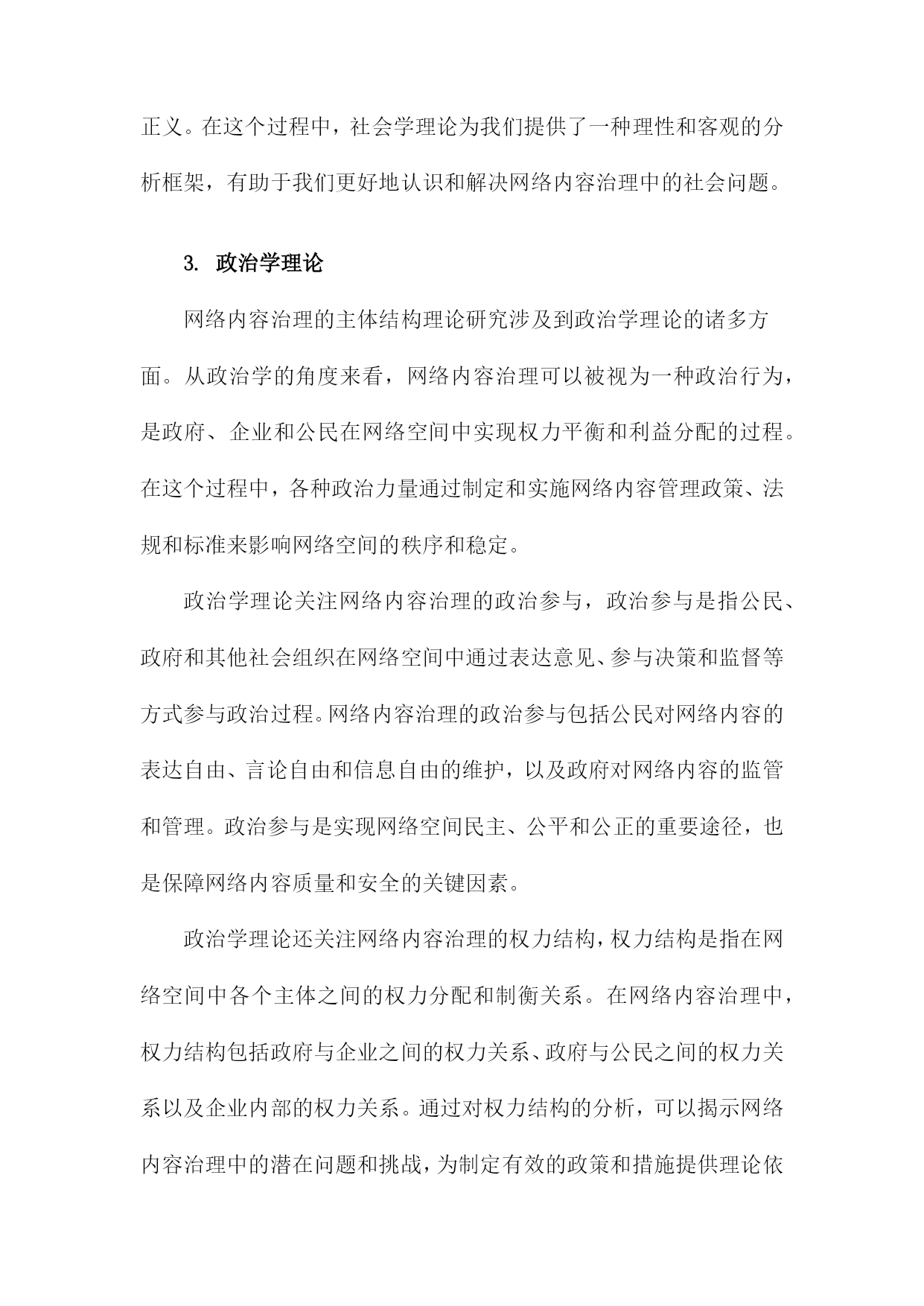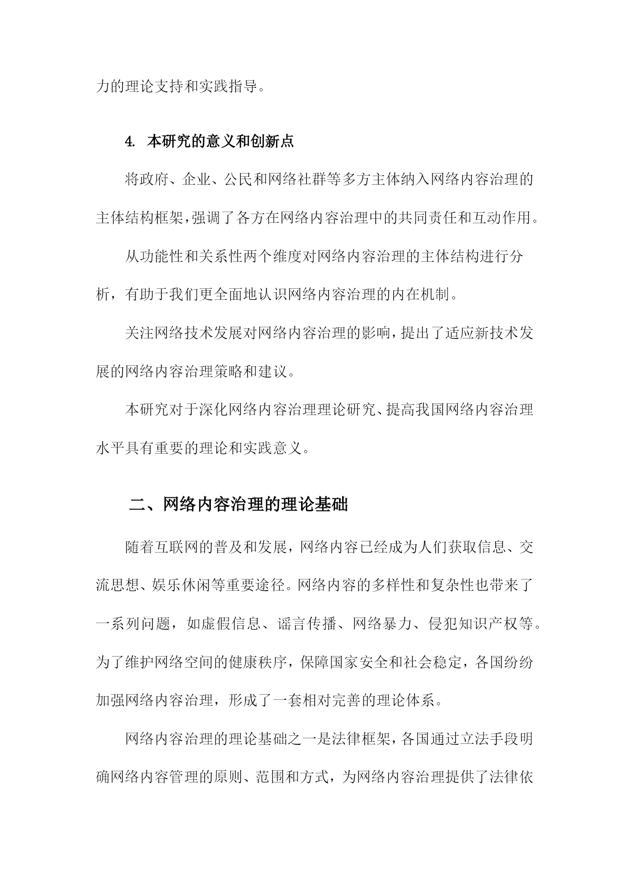 网络内容治理的主体结构理论研究一、研究背景和意义随着互联网技术的飞速发展,网络已经成为人们生活、工作、学习等各个方面不可或缺的重要组成部分。网络空间的虚拟性和匿名性为一些不法分子提供了传播违法违规信息、侵犯他人权益的便利条件。网络内容治理成为维护网络秩序、保障国家安全和社会稳定的重要任务。在这个背景下,网络内容治理的主体结构理论研究具有重要的现实意义和理论价值。研究网络内容治理的主体结构理论研究有助于揭示网络内容治理的内在规律。通过对网络内容治理的主体结构进行深入分析,可以更好地理解网络内容治理的运行机制,为制定有效的网络内容治理政策提供理论支持。研究网络内容治理的主体结构理论研究有助于提高网络内容治理的针对性和有效性。通过对不同主体在网络内容治理中的作用和地位进行分析,可以有针对性地加强网络内容治理,提高网络内容治理的效果。研究网络内容治理的主体结构理论研究有助于促进网络空间的健康发展。通过对网络内容治理主体结构的分析,可以发现网络空间存在的一些问题和矛盾,从而为优化网络空间环境、促进网络空间的健康发展提供理论指导。研究网络内容治理的主体结构理论研究有助于提升国家的网络治理能力。通过对网络内容治理主体结构的研究,可以为国家制定更加科学合理的网络内容治理政策提供理论依据,从而提升国家的网络治理能力。1.网络内容治理的概念和内涵随着互联网技术的飞速发展,网络已经成为人们生活、工作、学习等各个方面不可或缺的一部分。网络空间的开放性和自由性也为一些不良信息、虚假新闻、有害内容等提供了传播的渠道。为了维护网络空间的健康有序,各国政府和相关部门对网络内容进行了一定程度的管理和治理。网络内容治理,是指对网络内容进行规范、监管和引导的过程。其主要目的是确保网络空间的安全、稳定和可持续发展,保障国家利益和人民群众的合法权益。对网络信息的合法性要求。网络内容治理要求网络信息必须符合国家的法律法规,不得传播违法违规的内容,如涉及国家安全、社会稳定、民族团结等方面的敏感信息。对网络信息的真实性要求。网络内容治理强调网络信息的真实性,要求发布者提供真实、准确的信息,不得制造和传播虚假新闻、谣言等不实信息。对网络信息的道德性要求。网络内容治理要求网络信息要遵循社会公德,不得传播低俗、恶俗、暴力等不道德的信息。对网络信息的安全性要求。网络内容治理要求保护用户的隐私权和个人信息安全,防止网络攻击、黑客行为等网络安全问题的发生。对网络信息的多样性要求。网络内容治理鼓励网络信息的多样化发展,尊重不同群体的文化差异和审美需求,促进网络文化的繁荣发展。网络内容治理是一种旨在维护网络空间秩序、保障国家利益和人民群众权益的综合性管理措施。在全球化和信息化的大背景下,网络内容治理已成为各国政府和社会各界共同关注的重要议题。2.网络内容治理的重要性和必要性随着互联网技术的飞速发展,网络已经成为人们获取信息、交流思想、娱乐休闲的重要平台。网络空间的开放性和自由性也为一些不良信息、虚假谣言和有害内容提供了滋生的土壤。这些不良信息不仅对个人用户的心理健康造成影响,还可能引发社会问题,甚至威胁国家安全。网络内容治理的重要性和必要性日益凸显。网络内容治理有助于维护网络空间的安全稳定,通过对网络内容进行有效管理,可以有效遏制网络暴力、网络欺诈、网络侵权等违法犯罪行为,保障广大网民的合法权益。网络内容治理还可以防止境外势力利用网络传播错误思想、煽动民族仇恨等危害国家安全的内容,维护国家的主权和领土完整。网络内容治理有助于净化网络环境,提升网络文明水平。通过对网络内容进行规范,可以减少低俗、恶俗、暴力等不良信息的传播,营造一个健康向上的网络氛围。网络内容治理还可以推动网络文化产业的发展,促进文化创新,提升国家文化软实力。网络内容治理有助于保护未成年人的身心健康,对于涉及暴力、色情、赌博等不良内容的网络信息,及时予以查处,可以有效保护未成年人免受不良信息的侵害,为他们提供一个健康的成长环境。网络内容治理有助于维护社会主义核心价值观,在网络空间中传播正能量,弘扬中华优秀传统文化,可以增强人们的民族自豪感和认同感,为实现中华民族伟大复兴的中国梦凝聚共识。网络内容治理具有重要的现实意义和深远的历史意义,我们应该高度重视网络内容治理工作,加强顶层设计,完善法律法规,形成多方参与、协同治理的工作机制,共同构建清朗、健康、有序的网络空间。3.国内外相关研究现状及不足之处在网络内容治理的主体结构理论研究方面,国内外学者已经进行了一定的探索。国内研究主要集中在网络内容治理的理论框架、政策体系和实践探索等方面。国外研究则更注重网络内容治理的技术手段和伦理道德问题,在现有研究中仍然存在一些不足之处。在理论框架方面,国内外研究往往过于关注网络内容治理的具体措施和政
