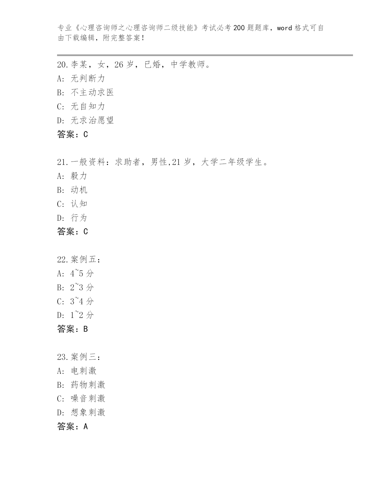 2024安徽省谯城区《心理咨询师之心理咨询师二级技能》考试必考200题通关秘籍题库及答案【各地真题】
