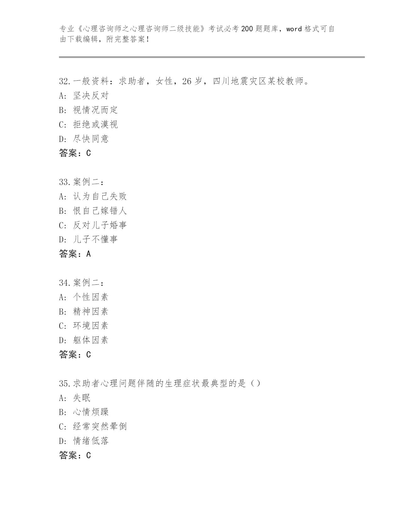 安徽省烈山区整理《心理咨询师之心理咨询师二级技能》考试必考200题通关秘籍题库及参考答案