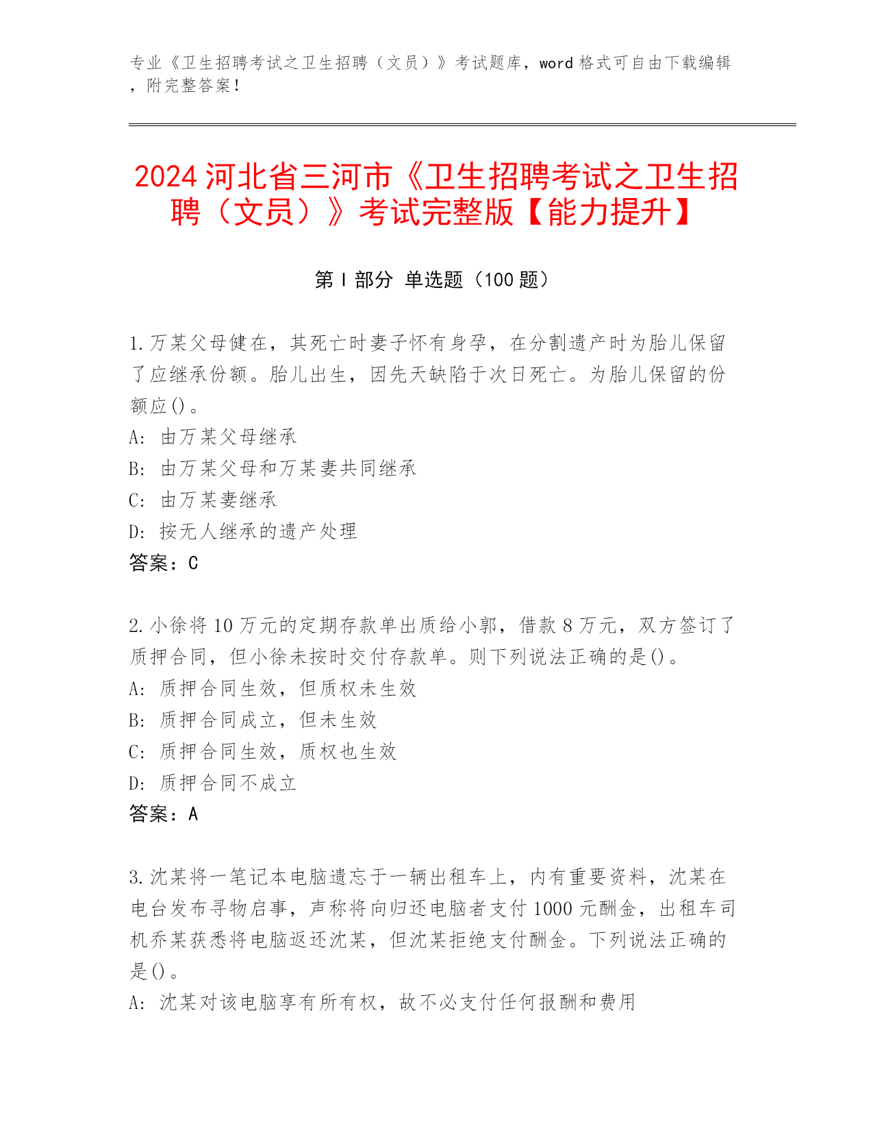 2024河北省三河市《卫生招聘考试之卫生招聘(文员)》考试完整版【能力提升】