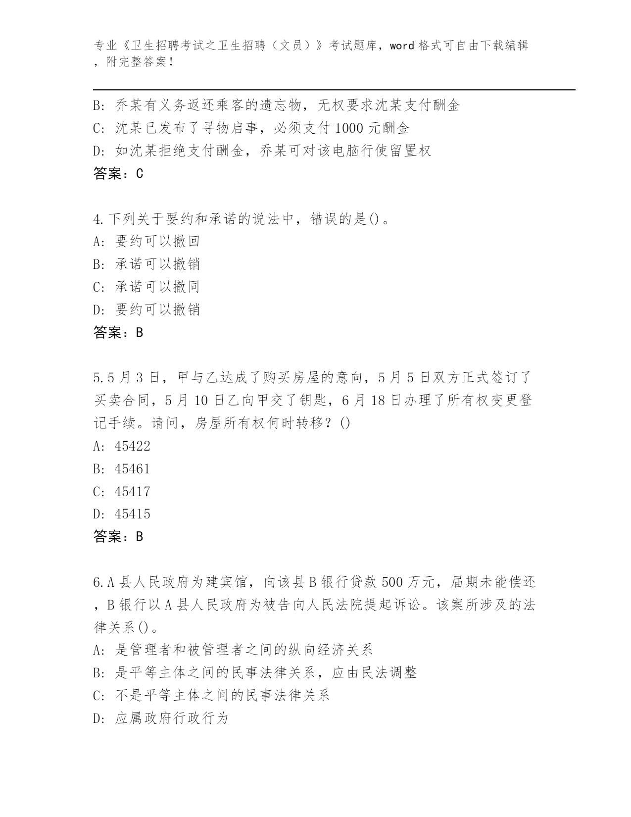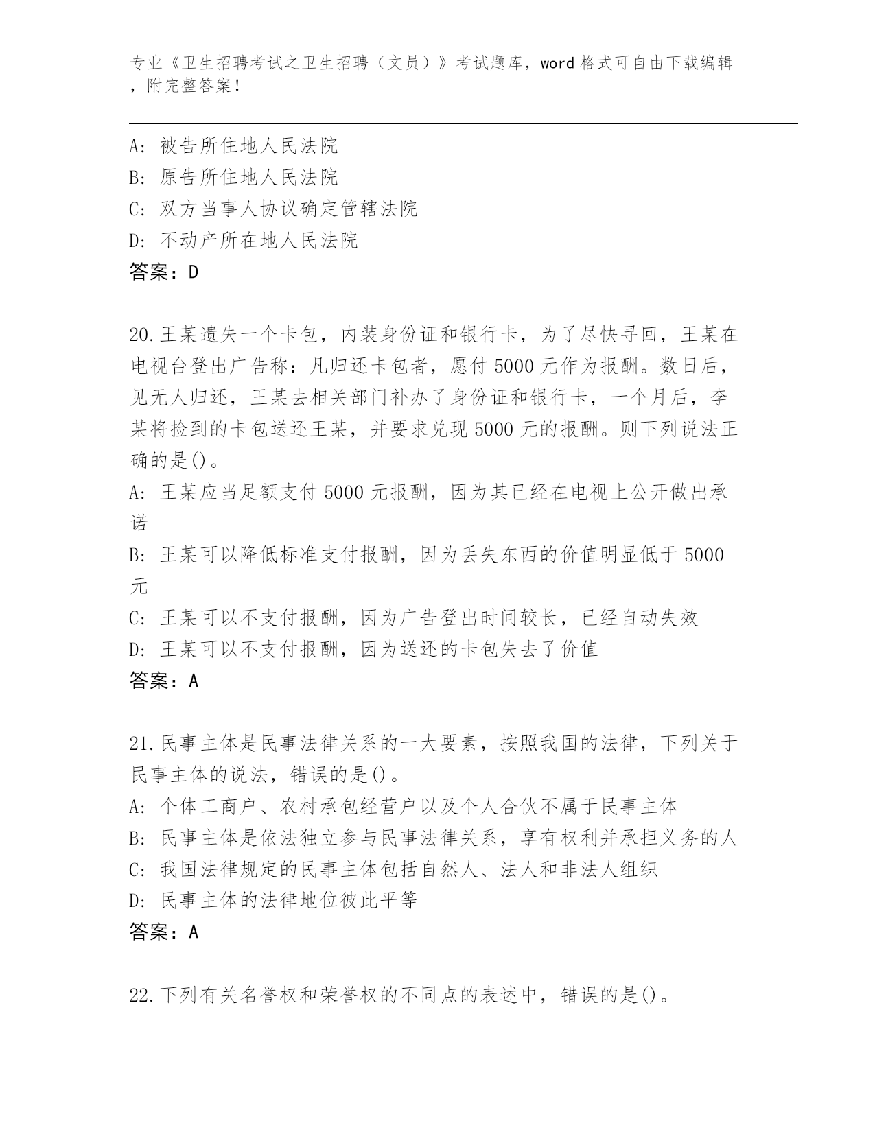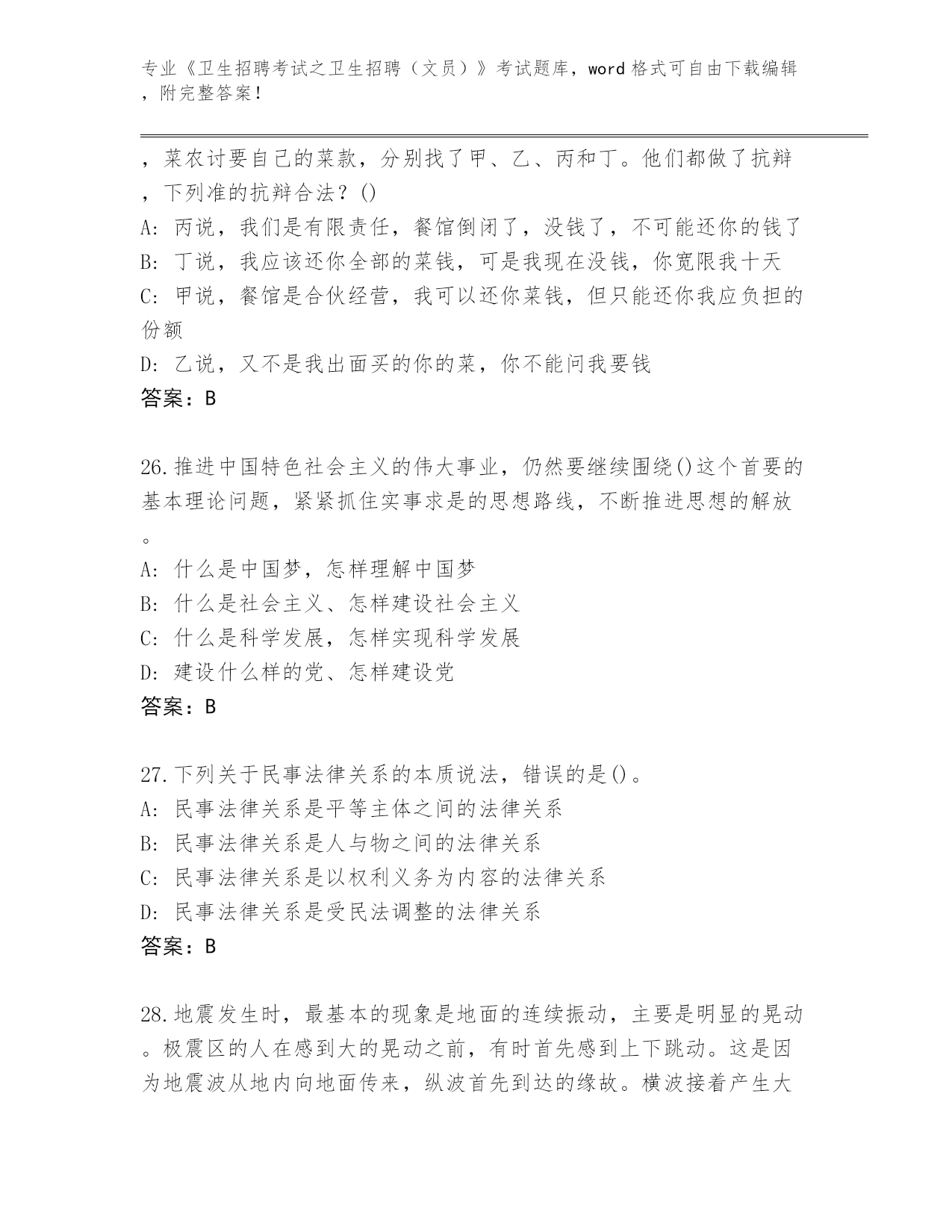 河北省双滦区2024年《卫生招聘考试之卫生招聘(文员)》考试大全带答案(能力提升)
