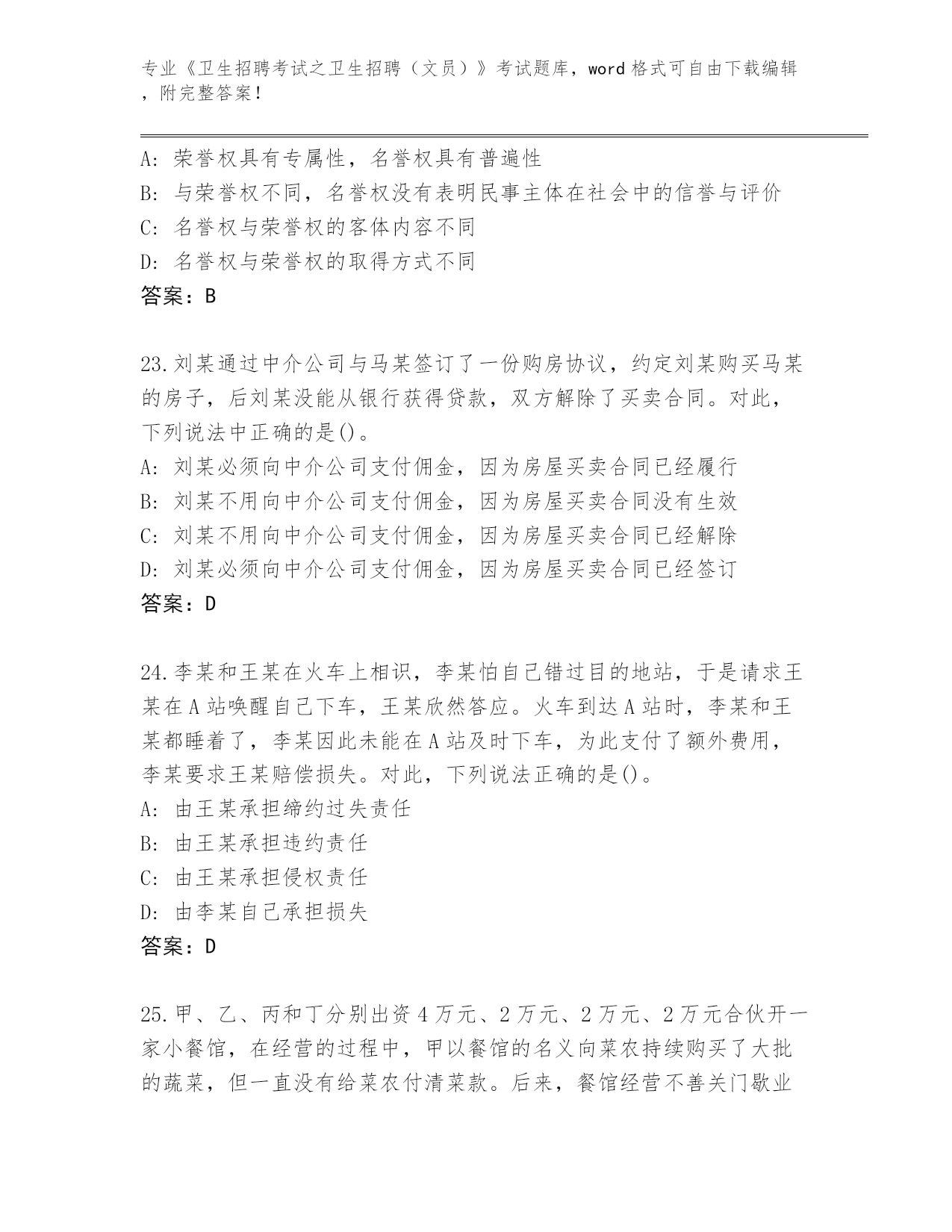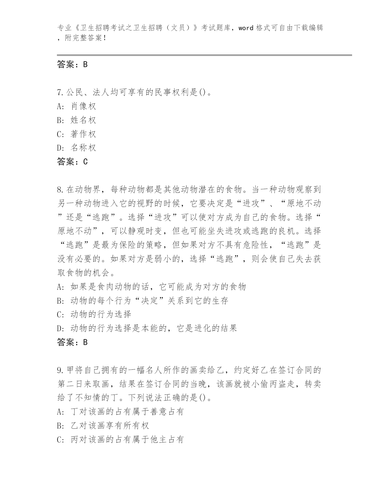 河北省崇礼区2024《卫生招聘考试之卫生招聘(文员)》考试通关秘籍题库(能力提升)