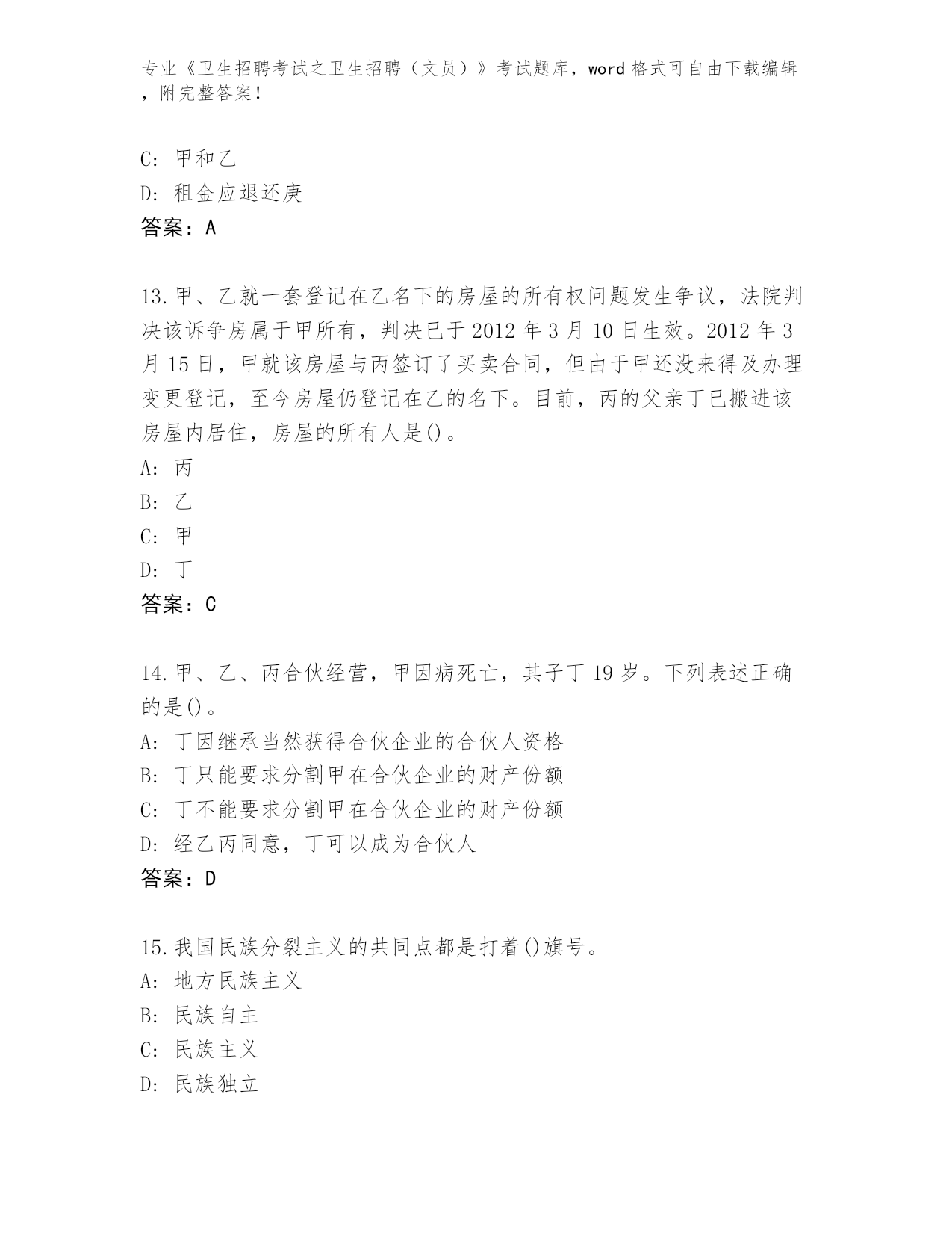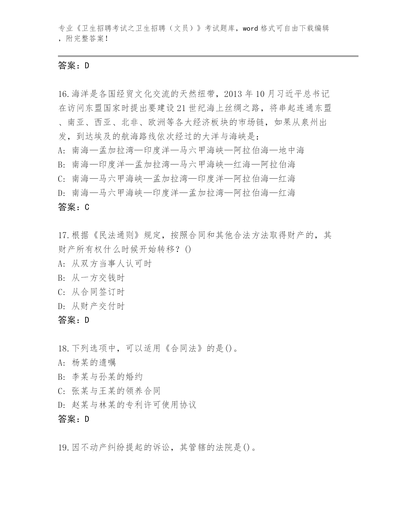 河北省三河市完整版《卫生招聘考试之卫生招聘(文员)》资格考试必背200题通关秘籍题库(能力提升)