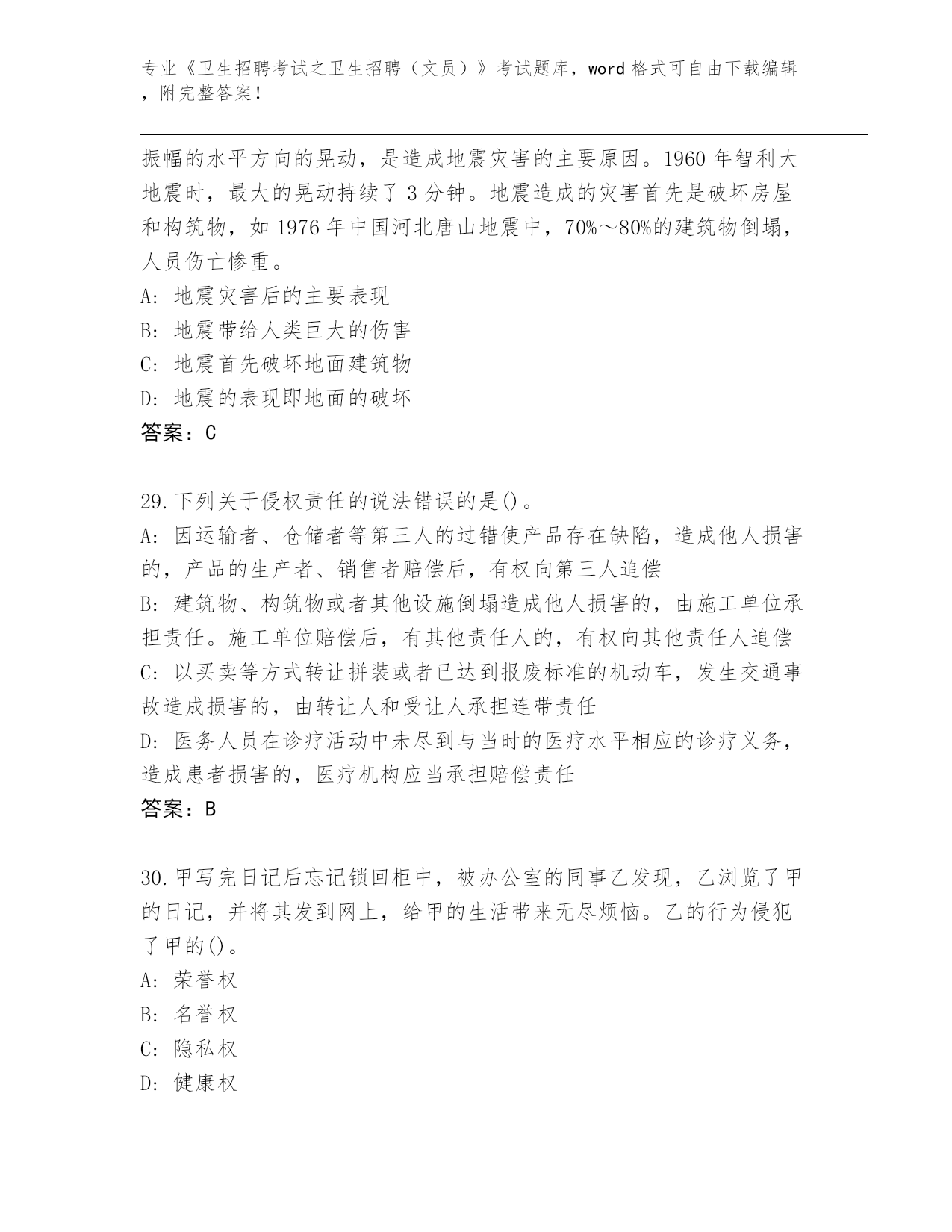 河北省海兴县2024年《卫生招聘考试之卫生招聘(文员)》考试完整版(能力提升)