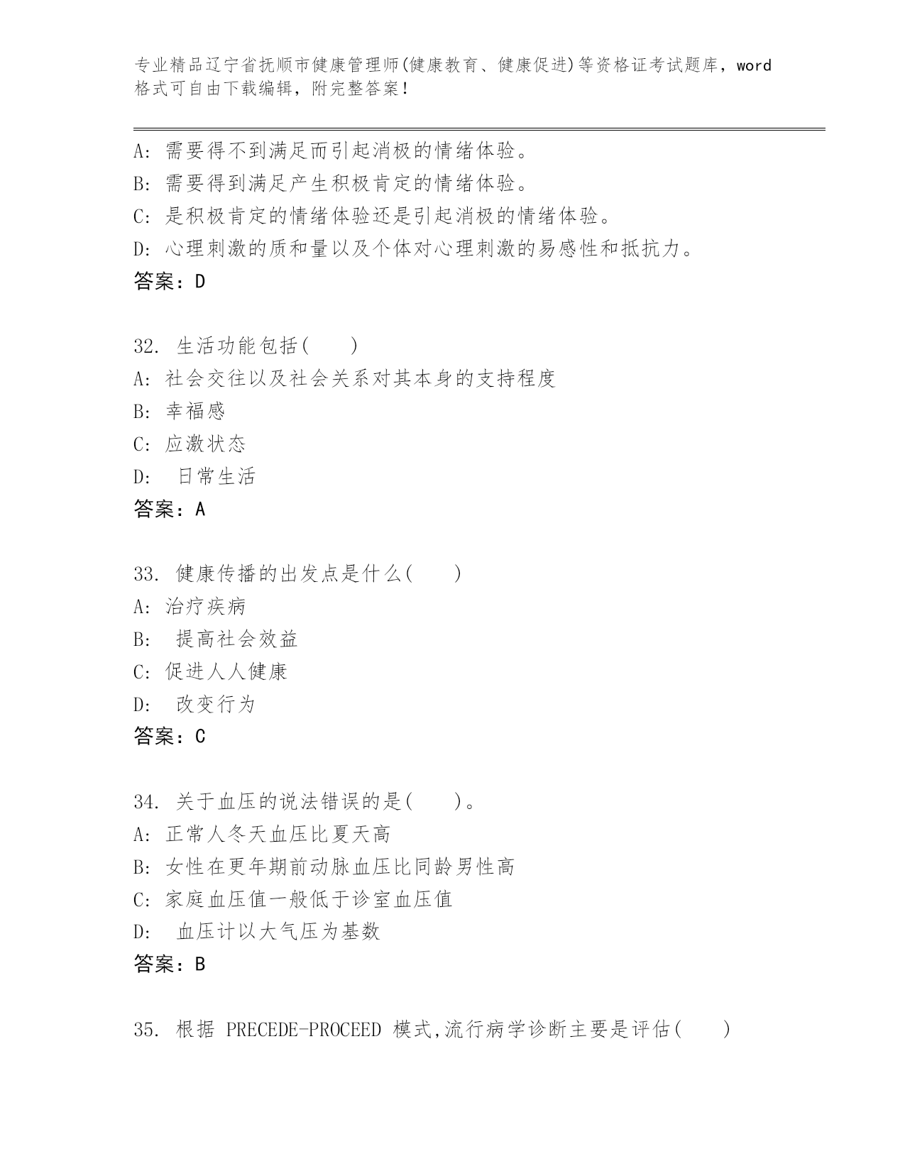 优选辽宁省抚顺市健康管理师(健康教育、健康促进)等资格证考试通关秘籍题库(含答案).docx