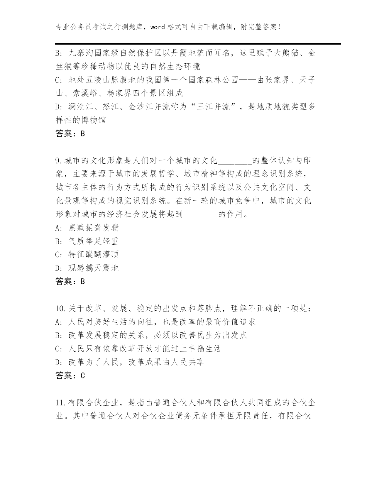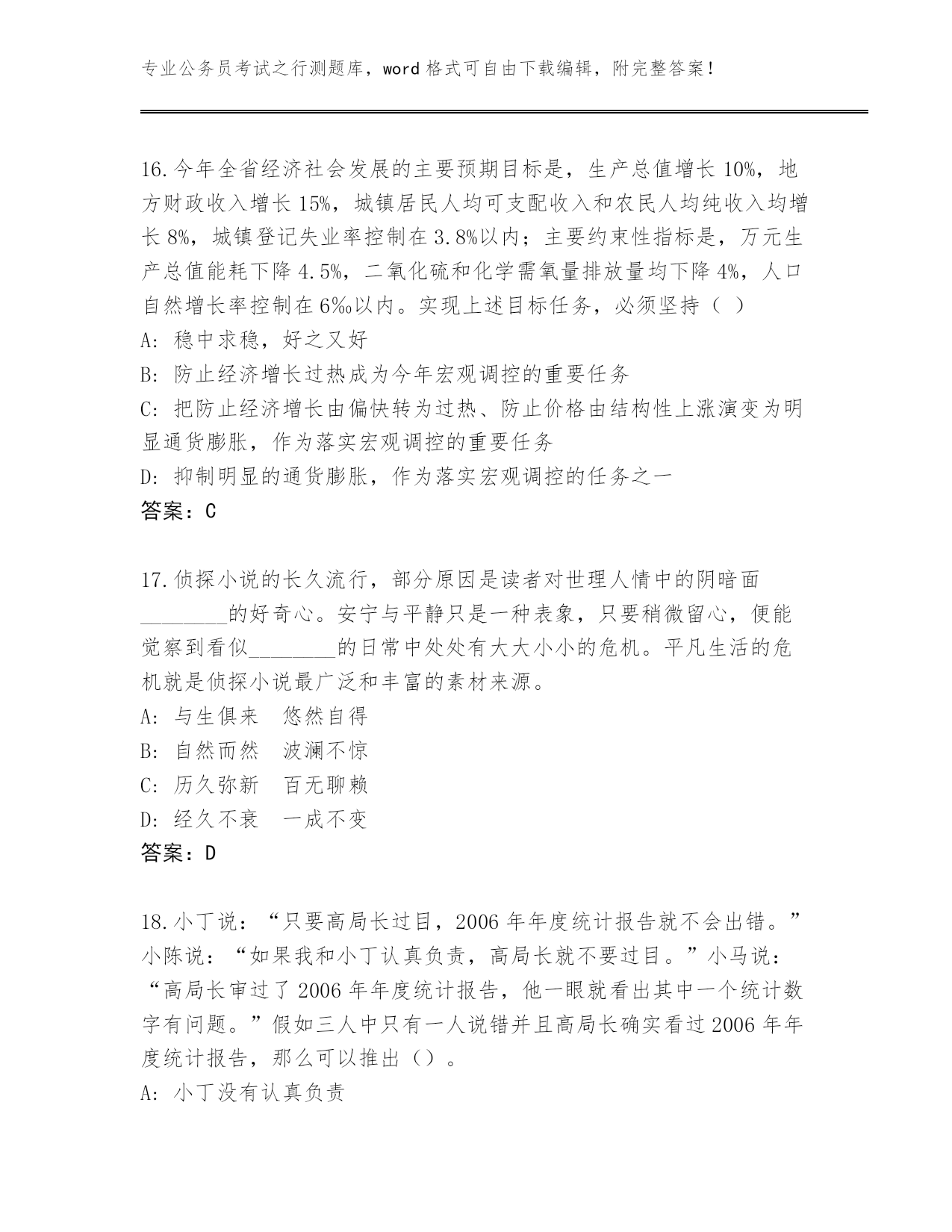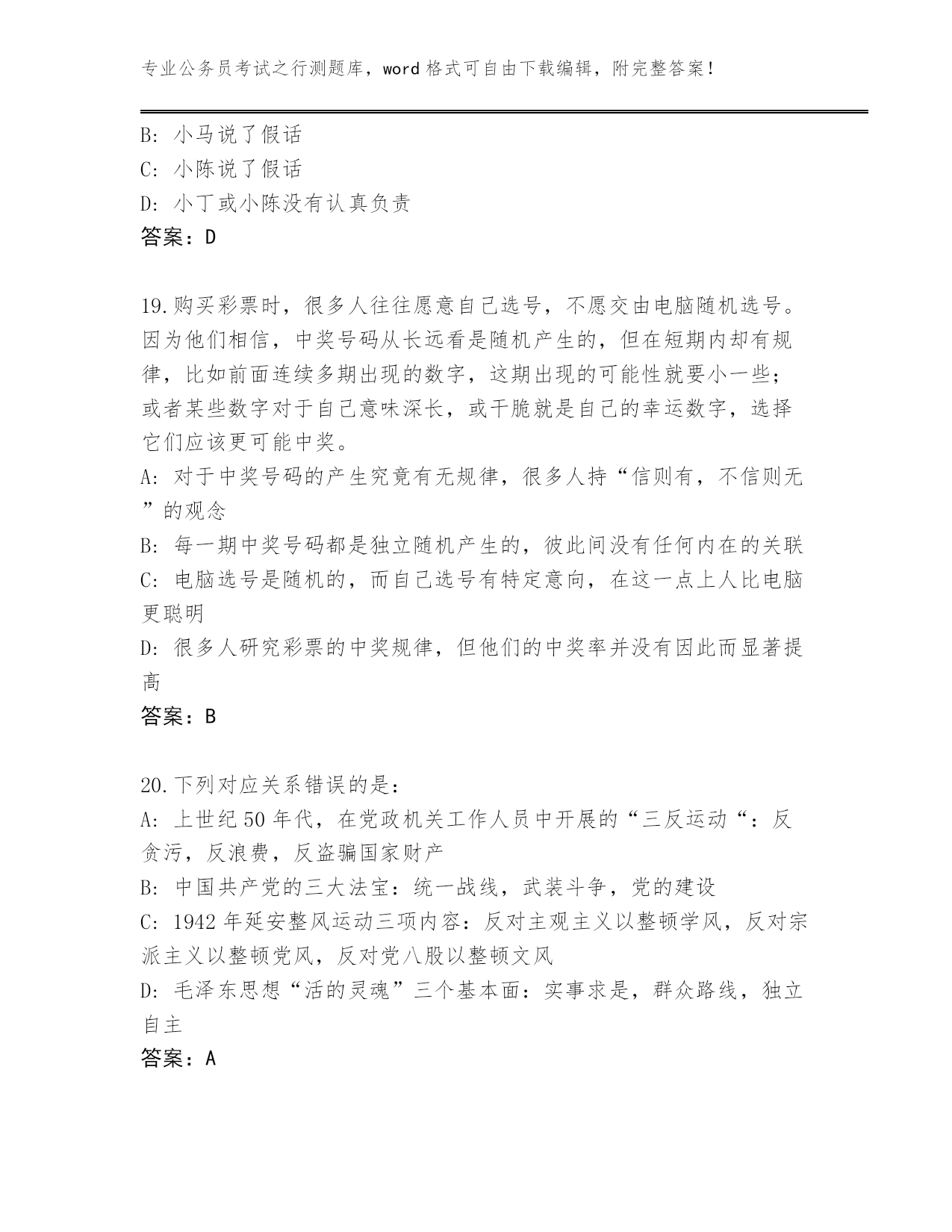 湖南省安仁县2024公务员考试之行测大全及答案(易错题)