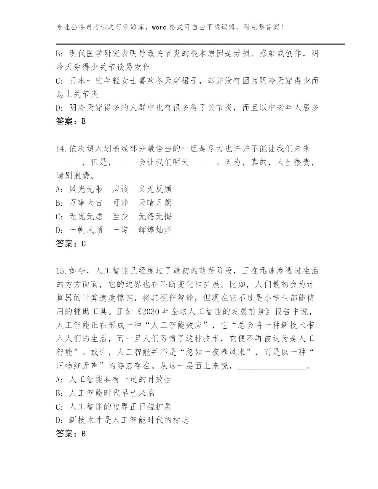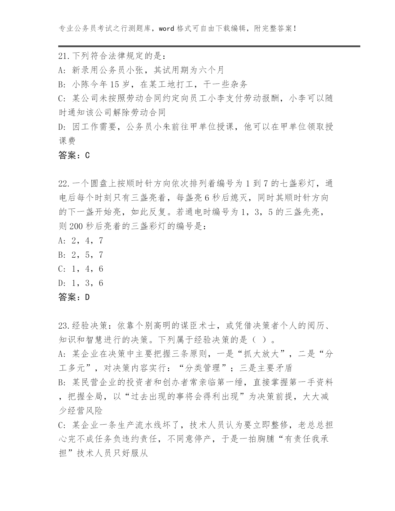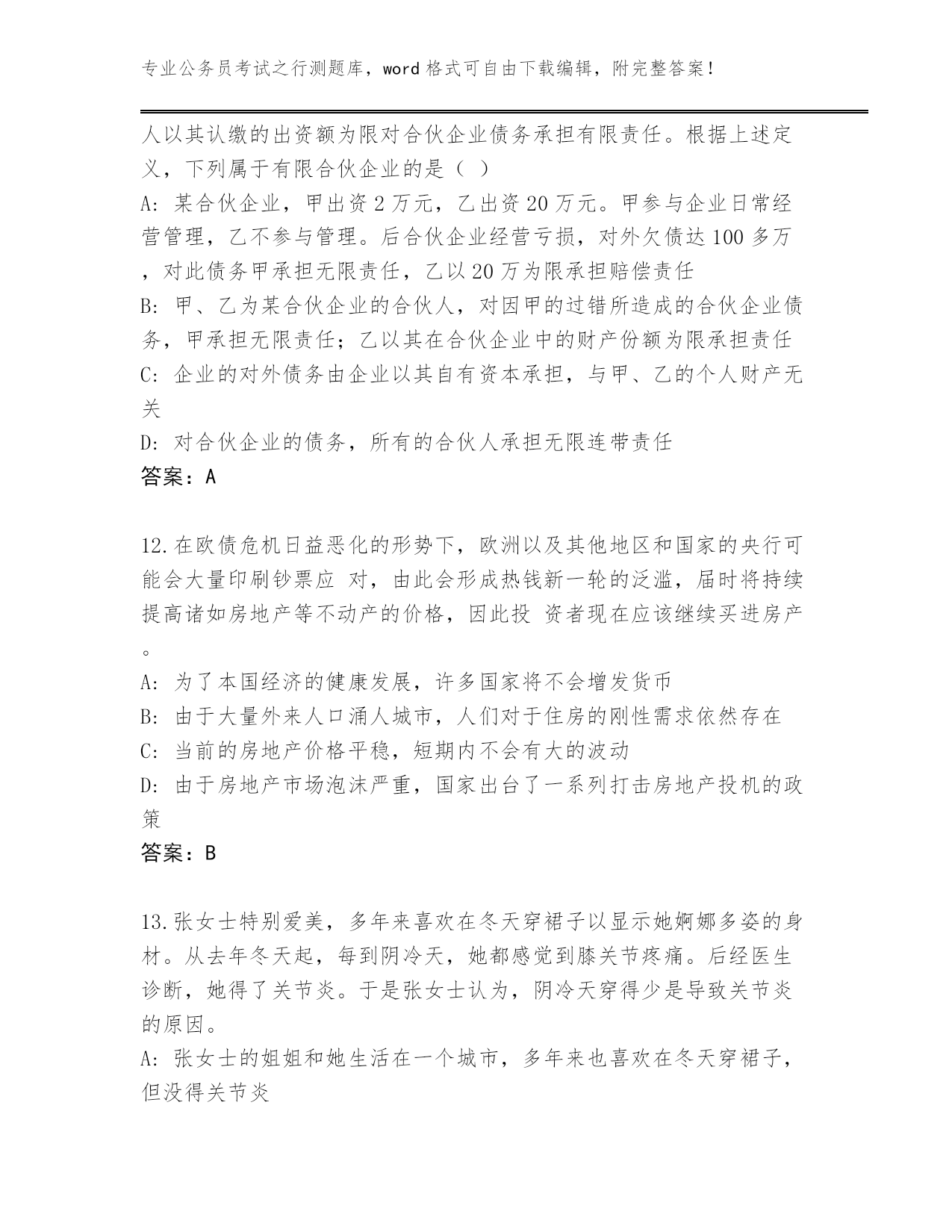 湖南省安仁县2024公务员考试之行测大全及答案(易错题)
