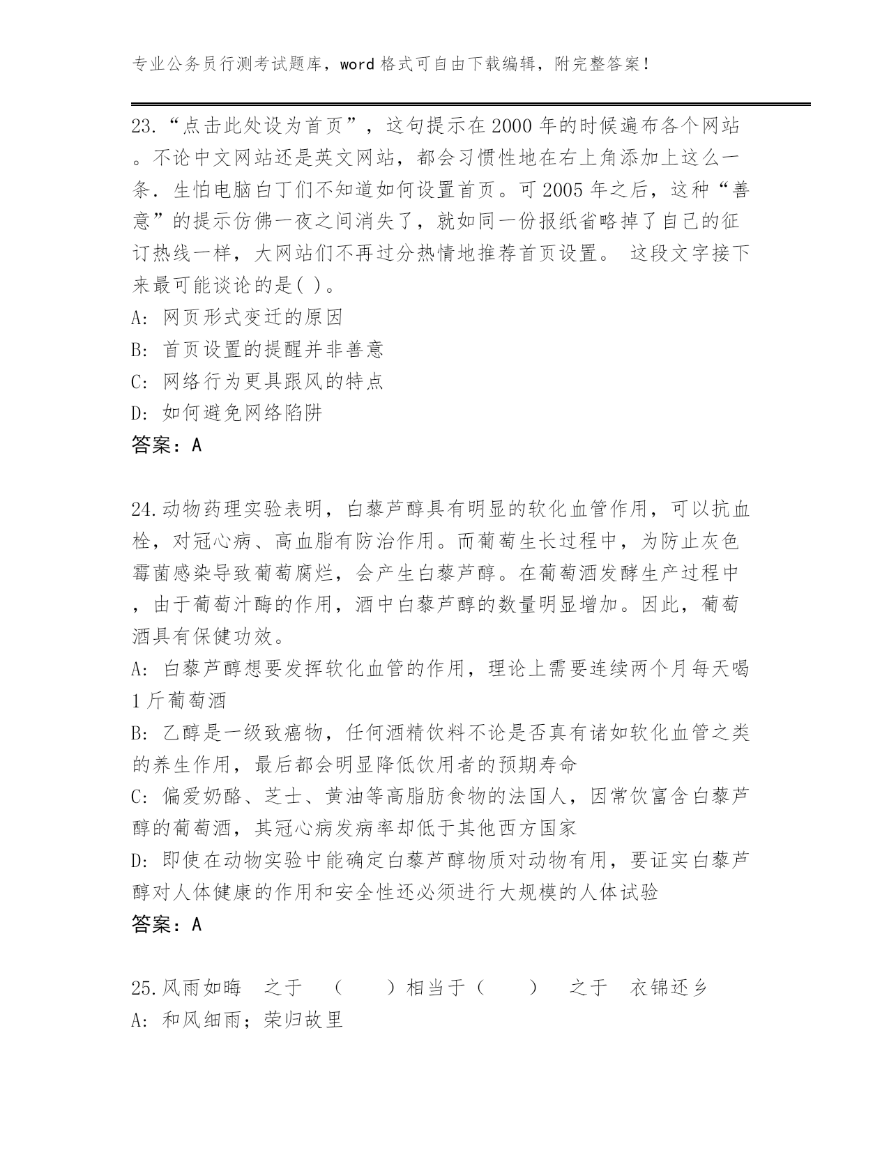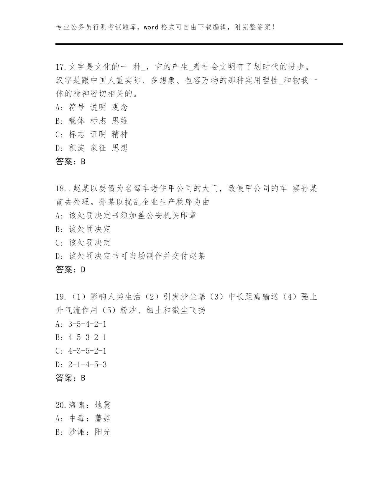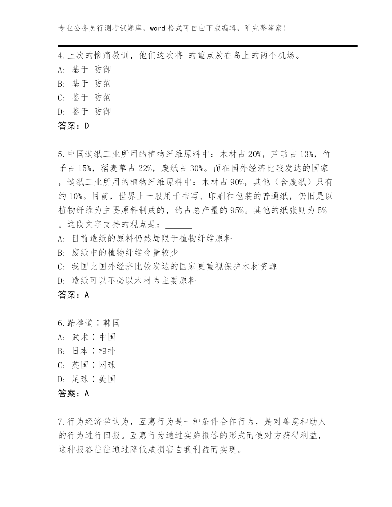 湖南省武冈市2024公务员行测考试题库审定版.docx