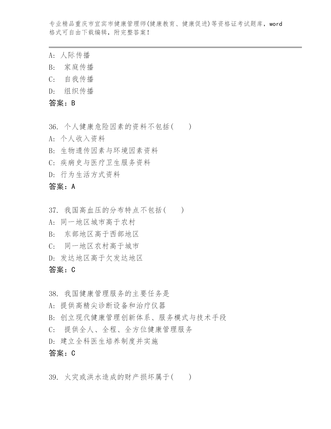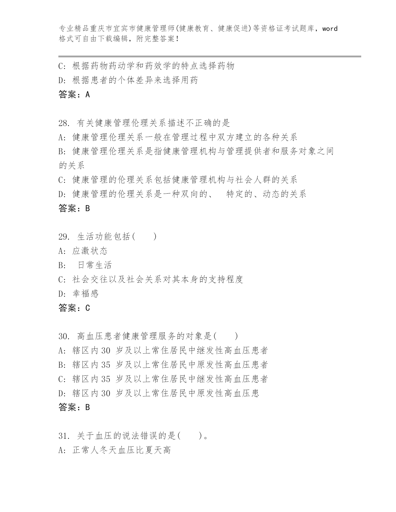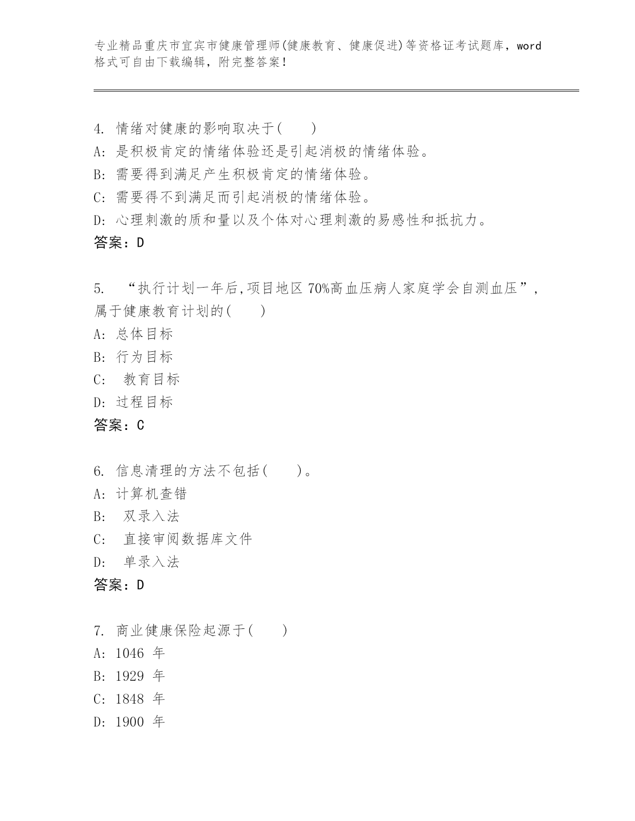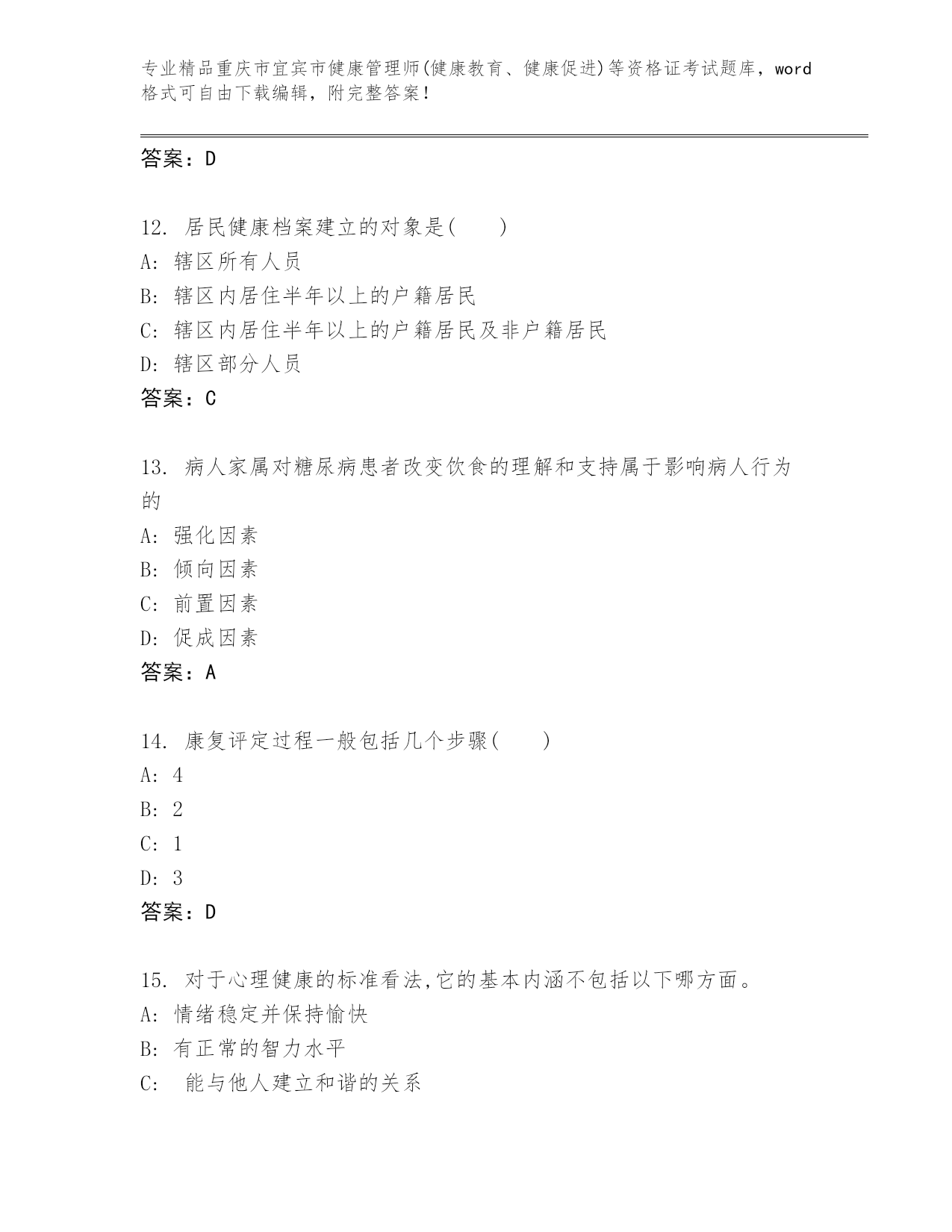 最新重庆市宜宾市健康管理师(健康教育、健康促进)等资格证考试内部题库含答案(实用).docx