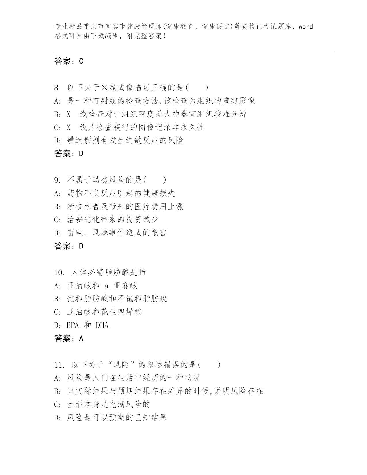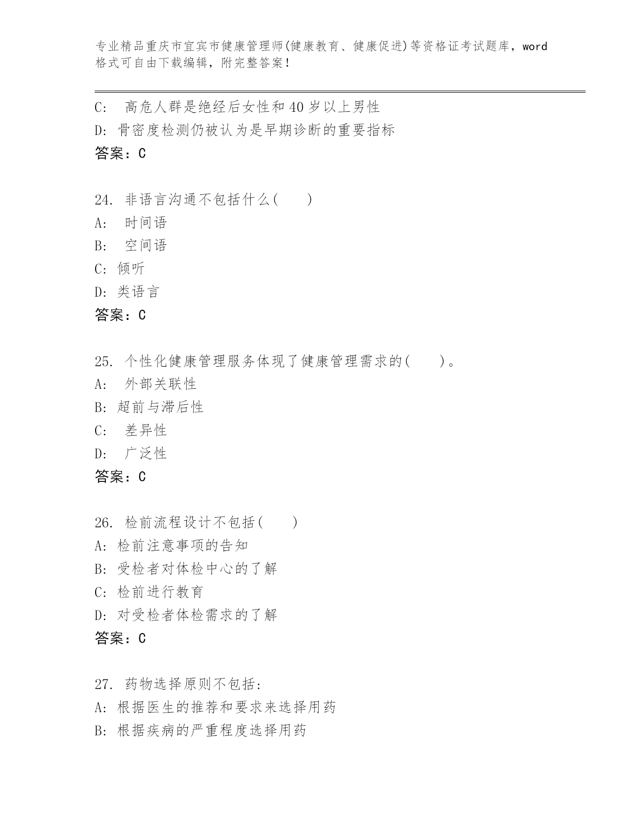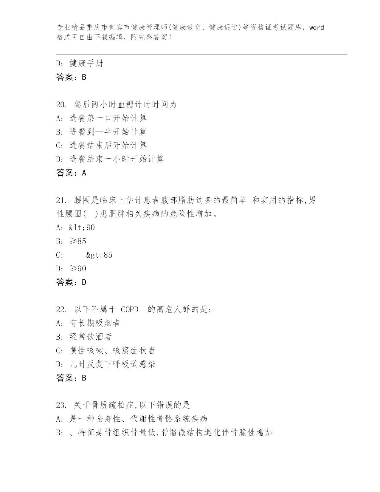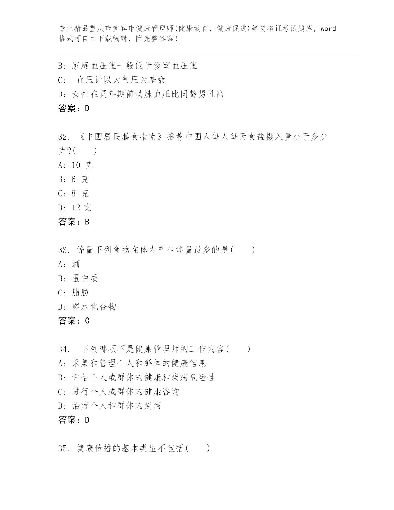 最新重庆市宜宾市健康管理师(健康教育、健康促进)等资格证考试内部题库含答案(实用).docx