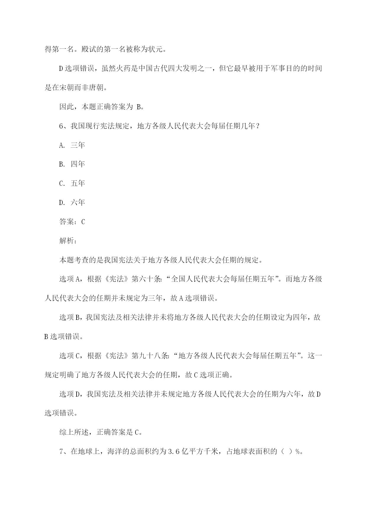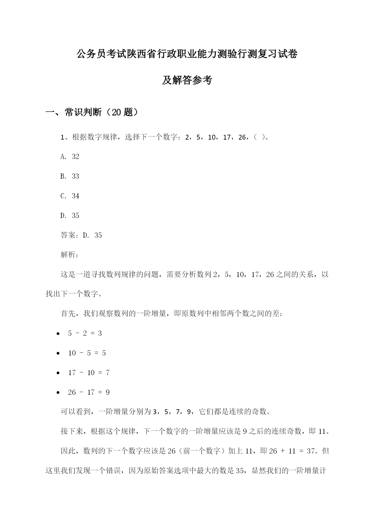 公务员考试陕西省行政职业能力测验行测复习试卷及解答参考