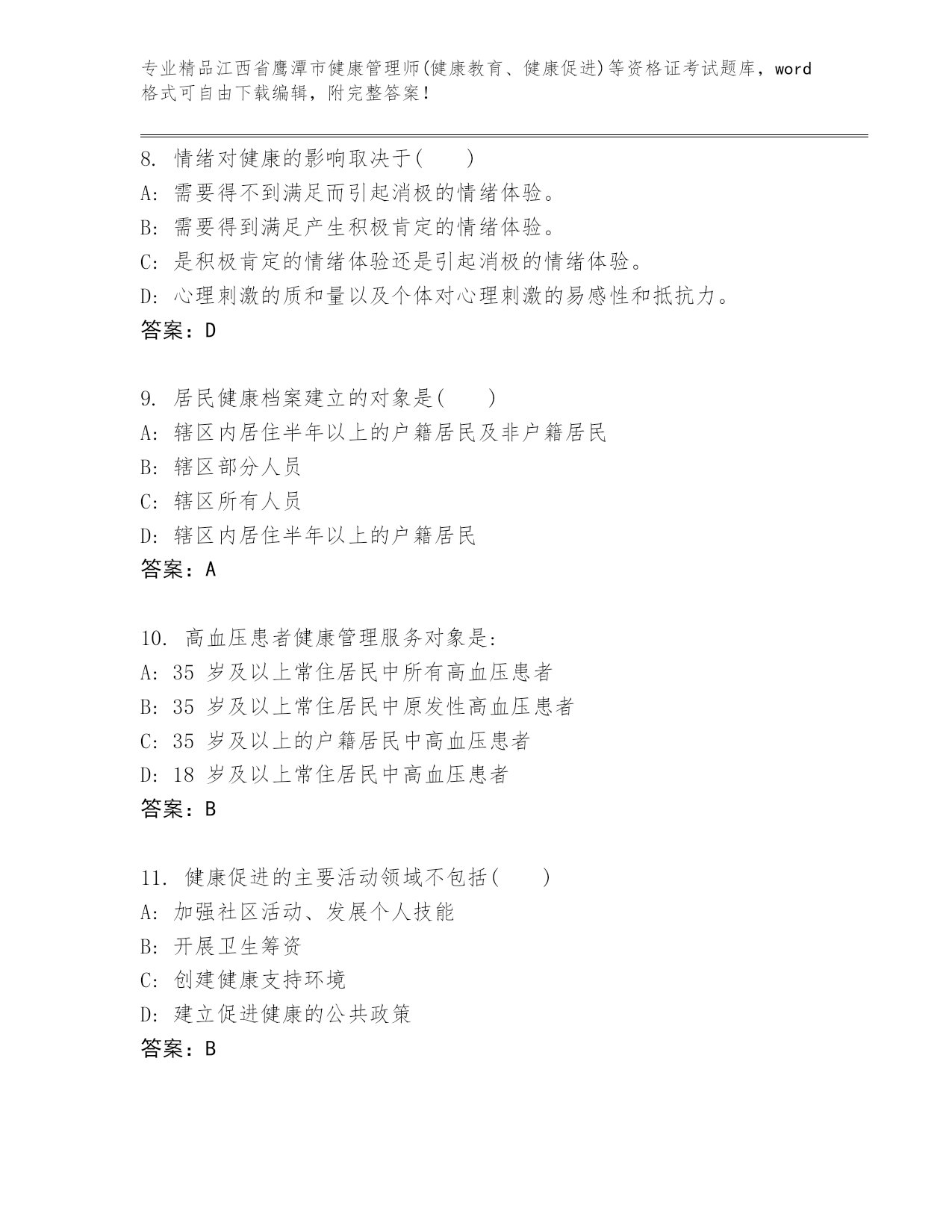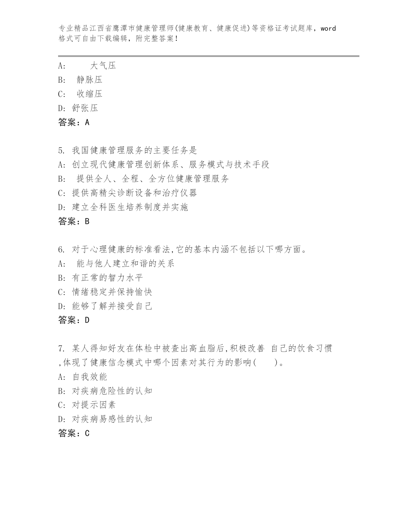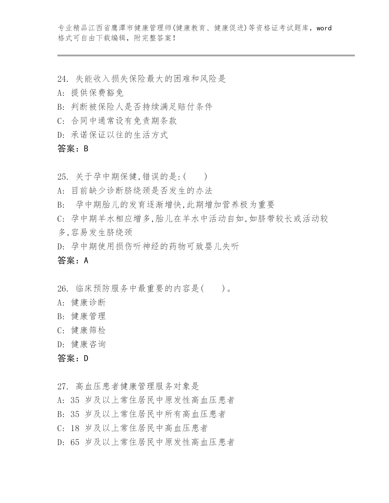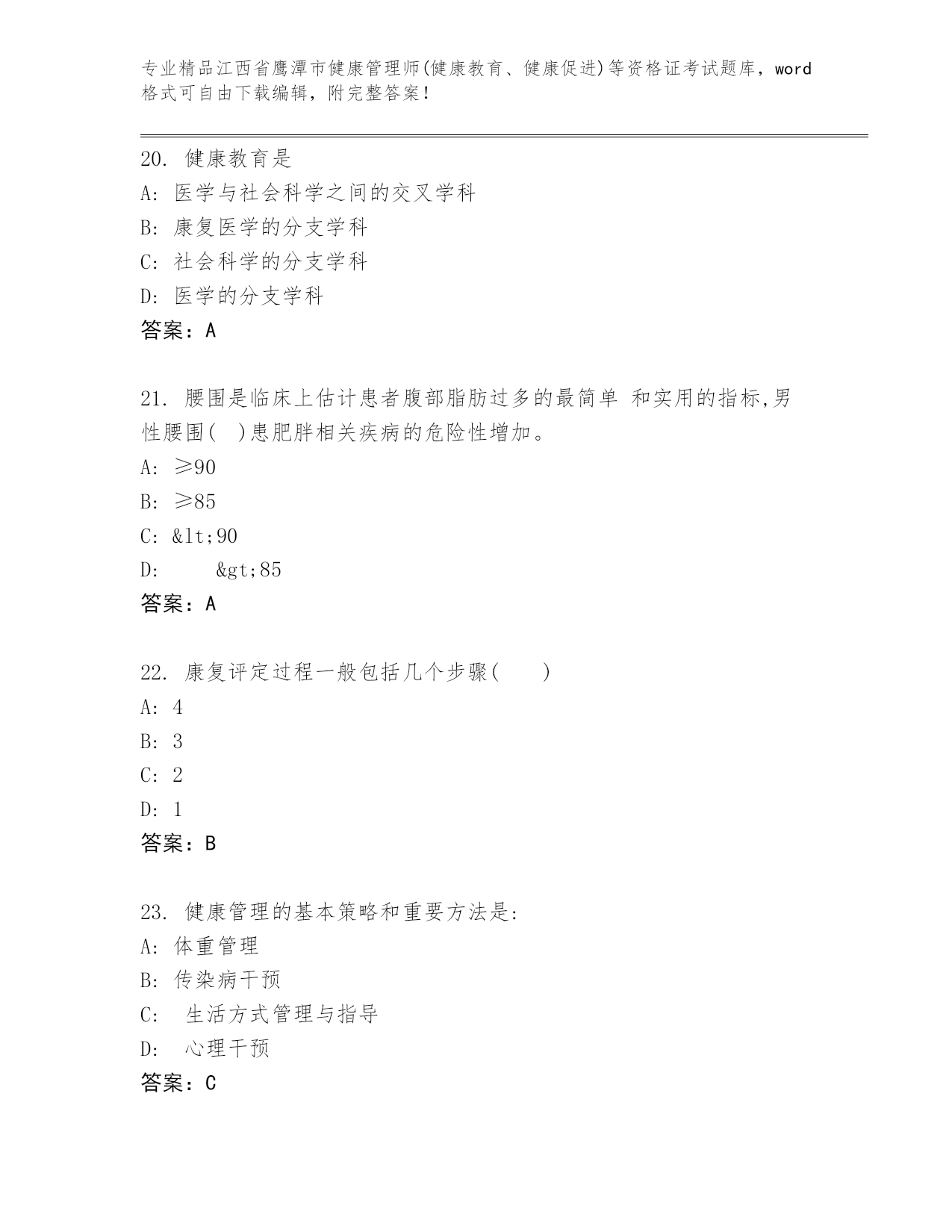 精编江西省鹰潭市健康管理师(健康教育、健康促进)等资格证考试及答案参考.docx