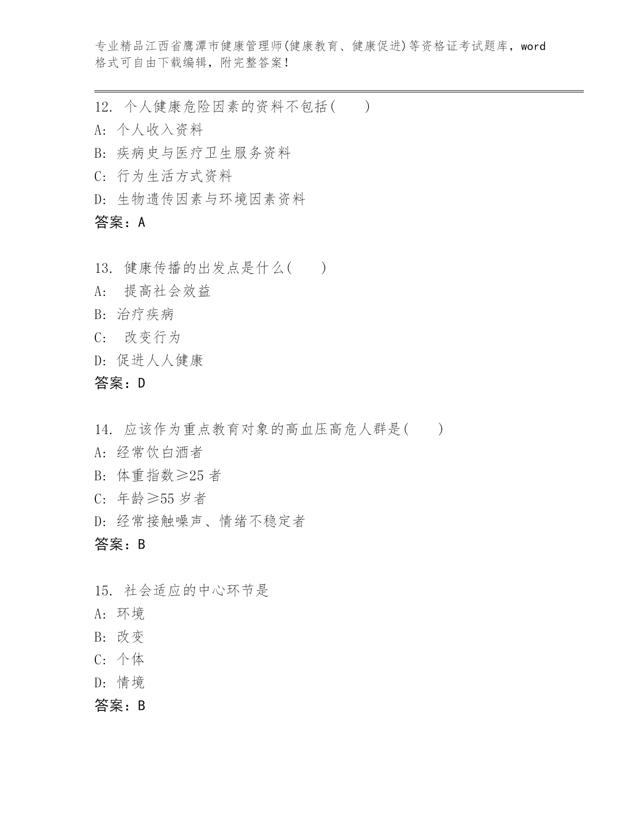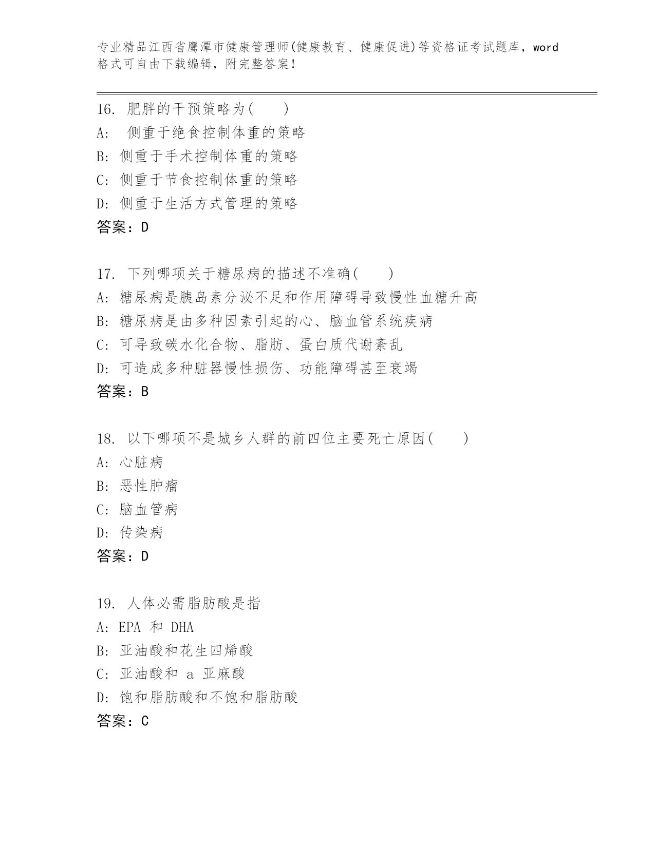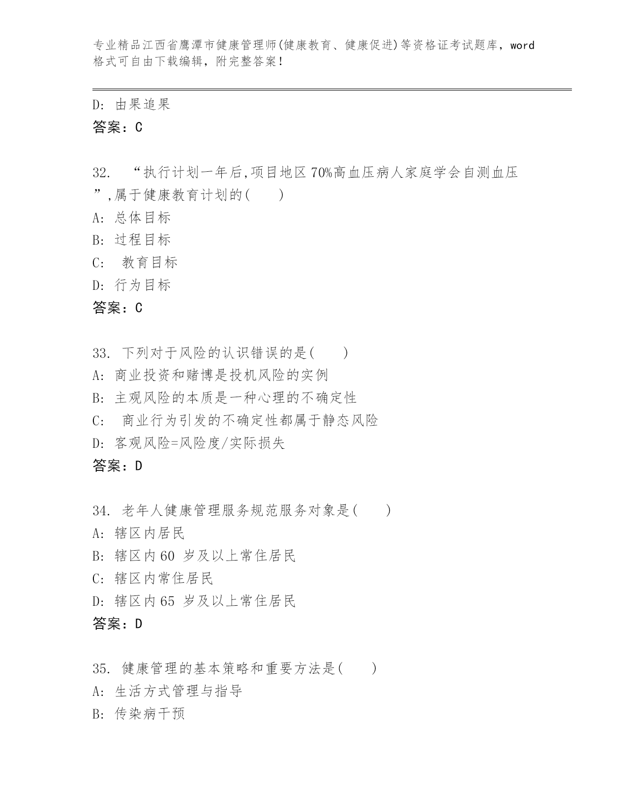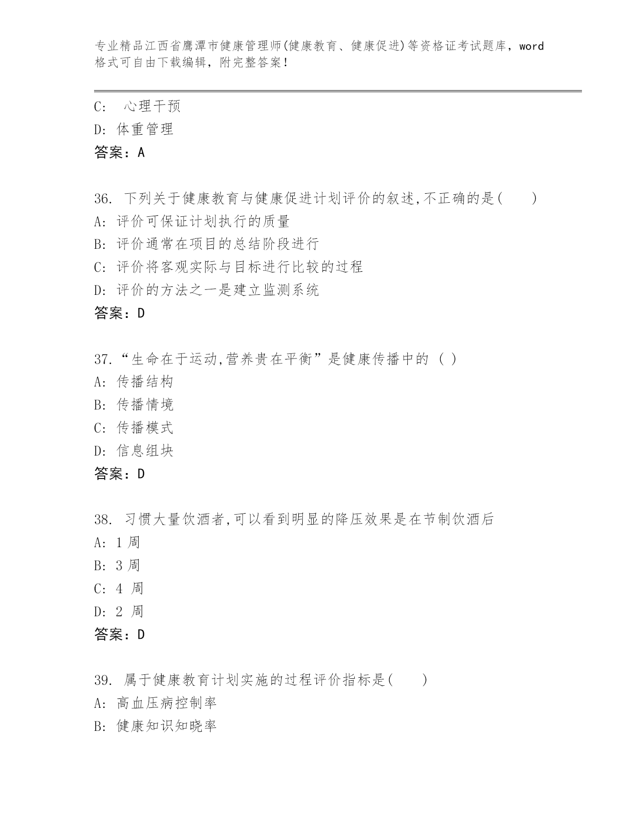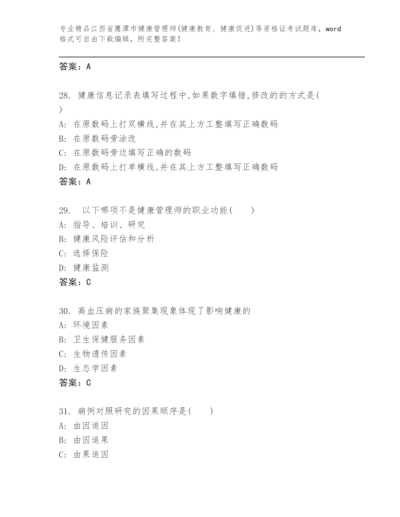 精编江西省鹰潭市健康管理师(健康教育、健康促进)等资格证考试及答案参考.docx