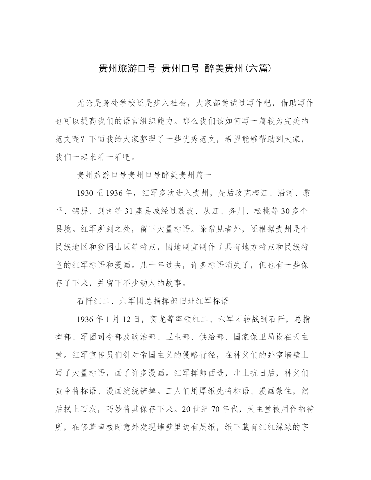 贵州旅游口号 贵州口号 醉美贵州(六篇).docx