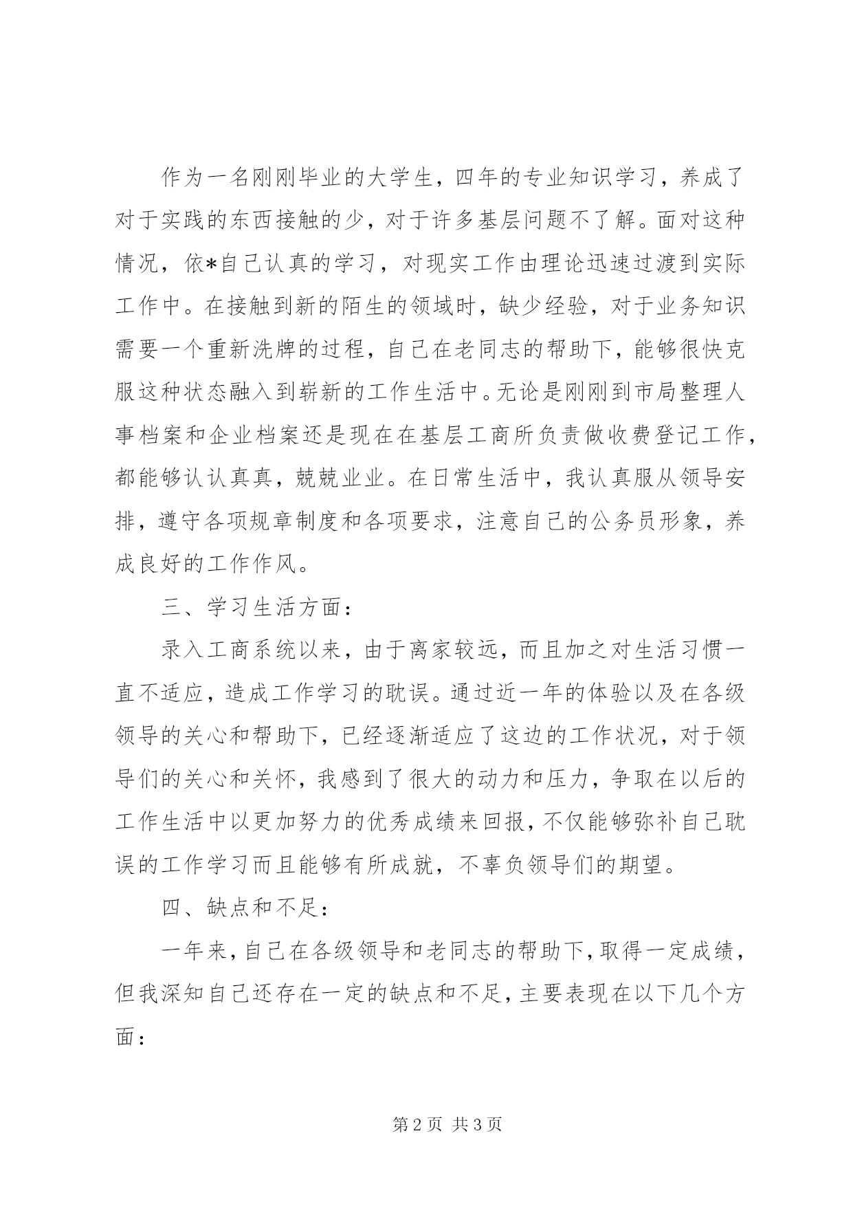 第PAGE\*Arabic\*MERGEFORMAT3页共NUMPAGES\*MERGEFORMAT3页工商系统公务员转正申请尊敬的局领导:200x年7月份,大学刚刚毕业的我经过全省公务员录用考试被招录到工商系统,成为一名光荣的国家公务员。一年来,我在这个团结求实,温暖友爱的集体里,亲身感受到了组织的关怀,团结奋斗的快乐,在组织的培养教育下,我认真按照国家公务员的标准去做,加强政治学习,对业务精益求精,在见习期满之际,我郑重向局领导提出转正申请。为了便于局领导对我自己的考察,我将自己一年的实际工作情况向组织作以汇报:一、政治思想方面:首先,我主动加强政治学习,除了经常看电视、看报纸、关心时事政治外,我还利用业余时间认真学习党章,了解党的光荣历史,并积极要求加入党组织,在思想上和党组织保持高度一致;其次,我还认真学习了国家公务员条例,认真与自己平时行为进行对照,改正不良习惯,继续发扬优秀传统。另外,除了干好自己的本职工作外,还积极参加各项活动,对于工商局组织的活动,能够积极参加与配合,在生活上乐于助人,关心集体荣誉。通过以上努力,我感到自己的政治素质有了长足进步,希望在以后的学习中进一步提高。二、业务培训和作风纪律方面:作为一名刚刚毕业的大学生,四年的专业知识学习,养成了对于实践的东西接触的少,对于许多基层问题不了解。面对这种情况,依*自己认真的学习,对现实工作由理论迅速过渡到实际工作中。在接触到新的陌生的领域时,缺少经验,对于业务知识需要一个重新洗牌的过程,自己在老同志的帮助下,能够很快克服这种状态融入到崭新的工作生活中。无论是刚刚到市局整理人事档案和企业档案还是现在在基层工商所负责做收费登记工作,都能够认认真真,兢兢业业。在日常生活中,我认真服从领导安排,遵守各项规章制度和各项要求,注意自己的公务员形象,养成良好的工作作风。三、学习生活方面:录入工商系统以来,由于离家较远,而且加之对生活习惯一直不适应,造成工作学习的耽误。通过近一年的体验以及在各级领导的关心和帮助下,已经逐渐适应了这边的工作状况,对于领导们的关心和关怀,我感到了很大的动力和压力,争取在以后的工作生活中以更加努力的优秀成绩来回报,不仅能够弥补自己耽误的工作学习而且能够有所成就,不辜负领导们的期望。四、缺点和不足:一年来,自己在各级领导和老同志的帮助下,取得一定成绩,但我深知自己还存在一定的缺点和不足,主要表现在以下几个方面:1政治理论基础不扎实,理论与实践的结合做的较差;2对系统的工作要求和规定能认真执行,但积极性不够;3和系统内的领导和同志们思想和工作业务交流不够;4自己的整体素质和业务学习还有待进一步提高。在今后的工作和学习中,自己要更进一步严格要求自己,虚心向老同志们学习,注意克服自己的缺点和不足,争取在思想、工作、学习上有更大的进步。以上是自己工作一年来的基本情况小结,不妥之处,恳请组织批评指正,作为一名国家公务员,我渴望按期转正,请局领导考虑我的申请,我将虚心接受组织对我的审查和考验。此致敬礼申请人:××200x年x月xx日
