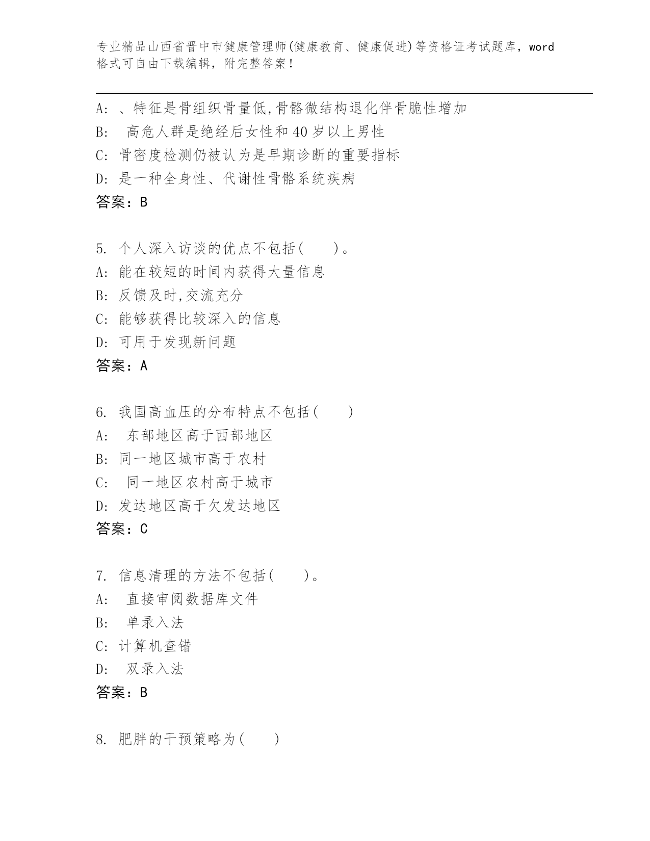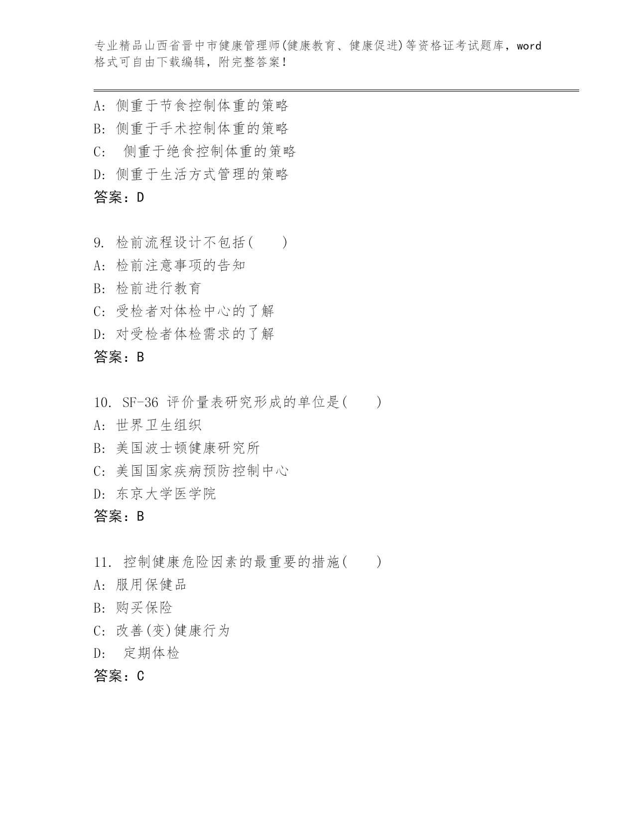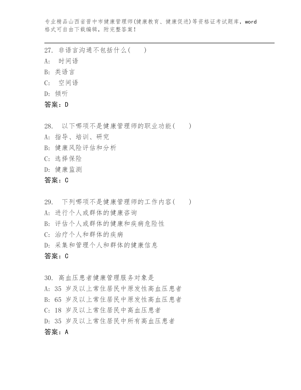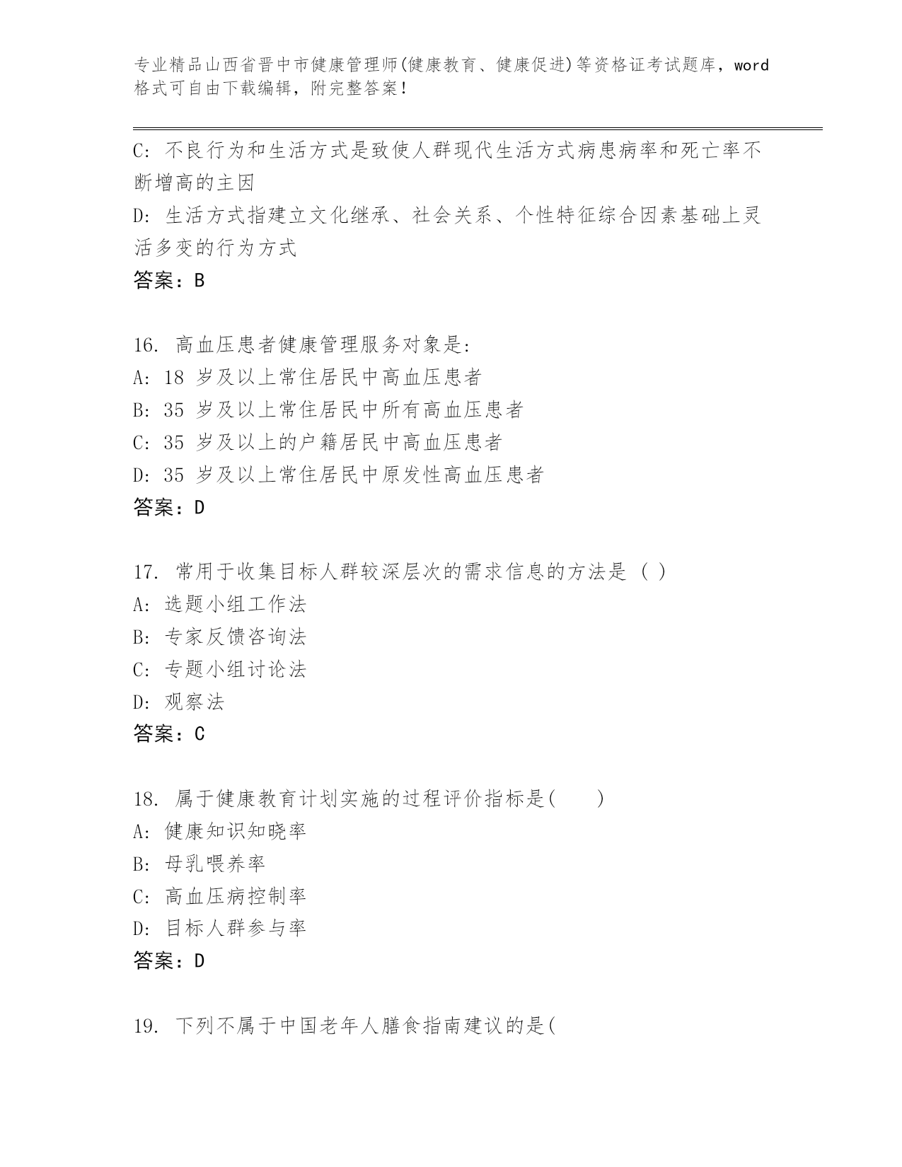 优选山西省晋中市健康管理师(健康教育、健康促进)等资格证考试通关秘籍题库通用