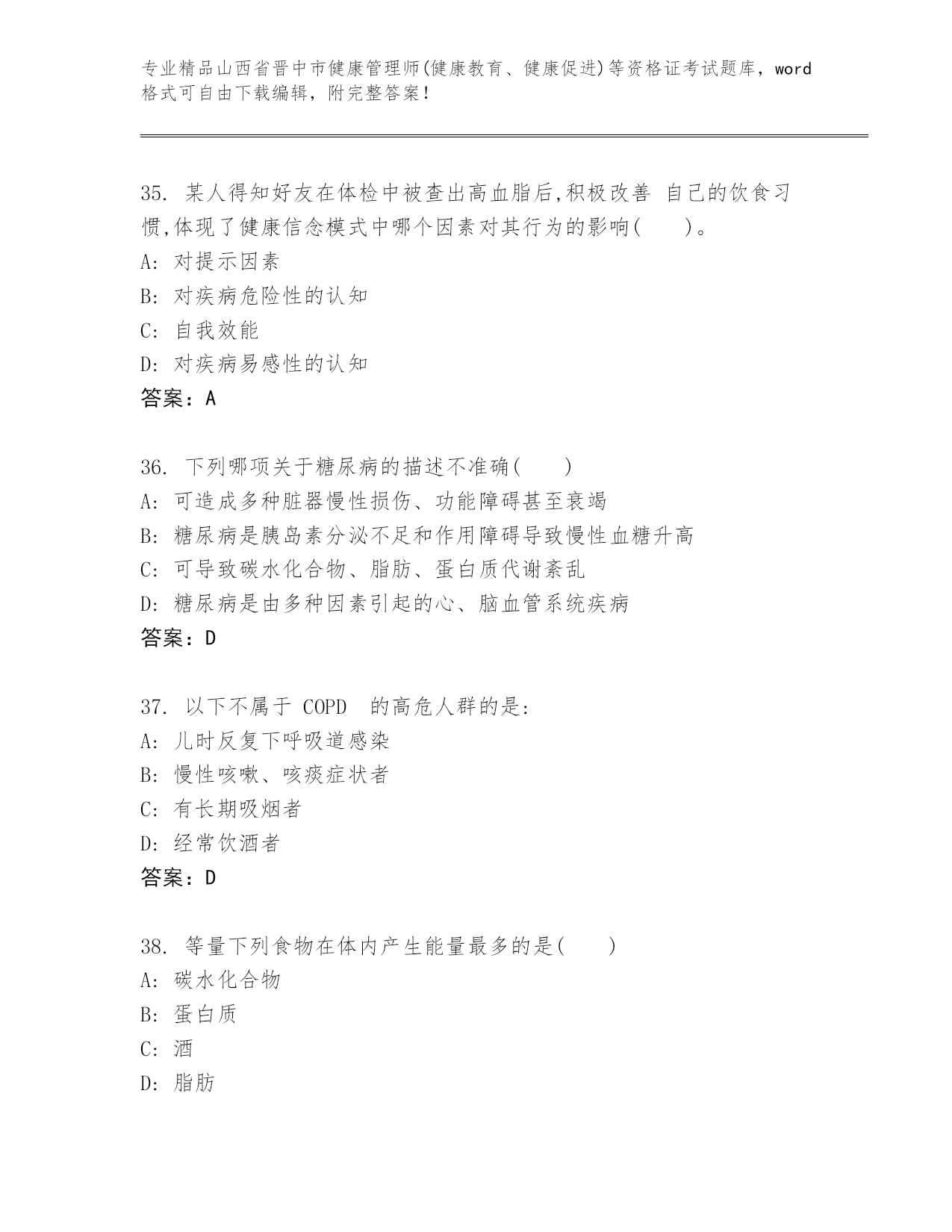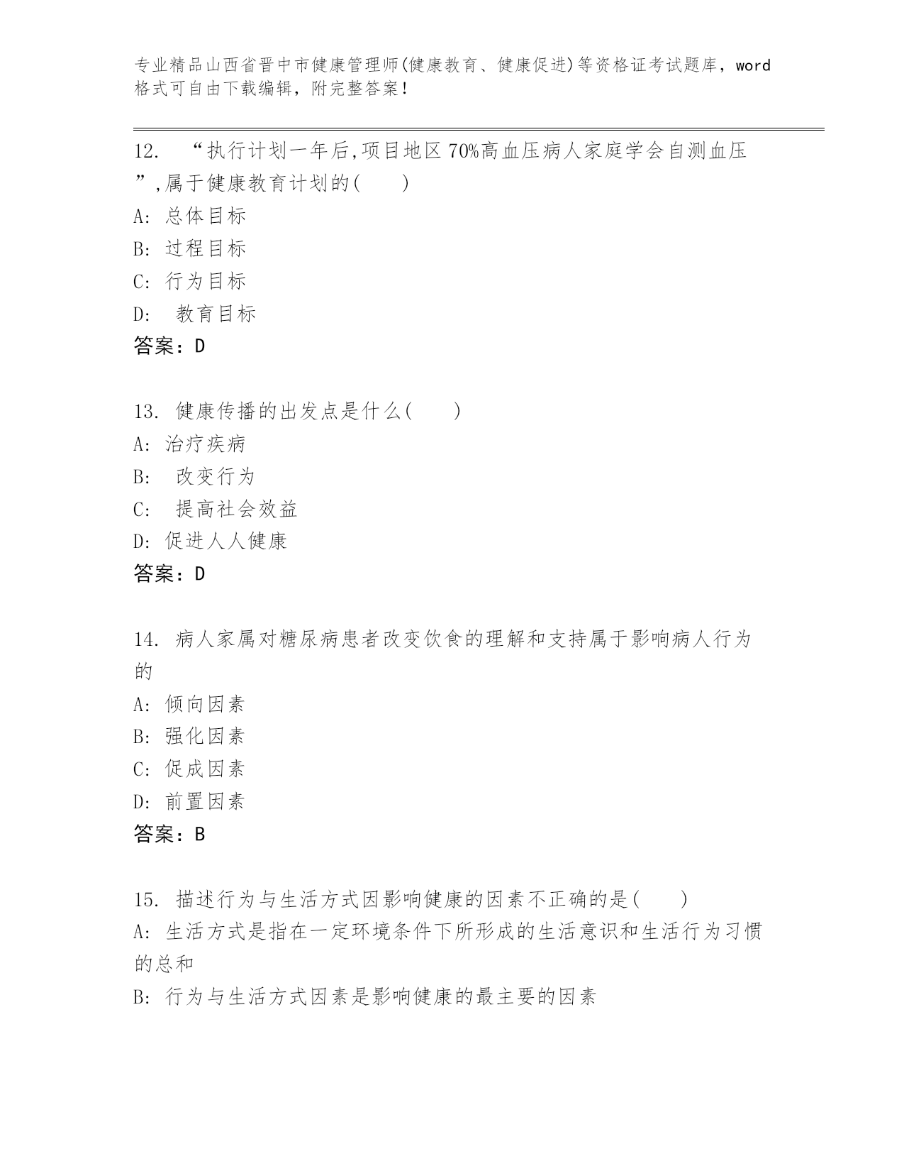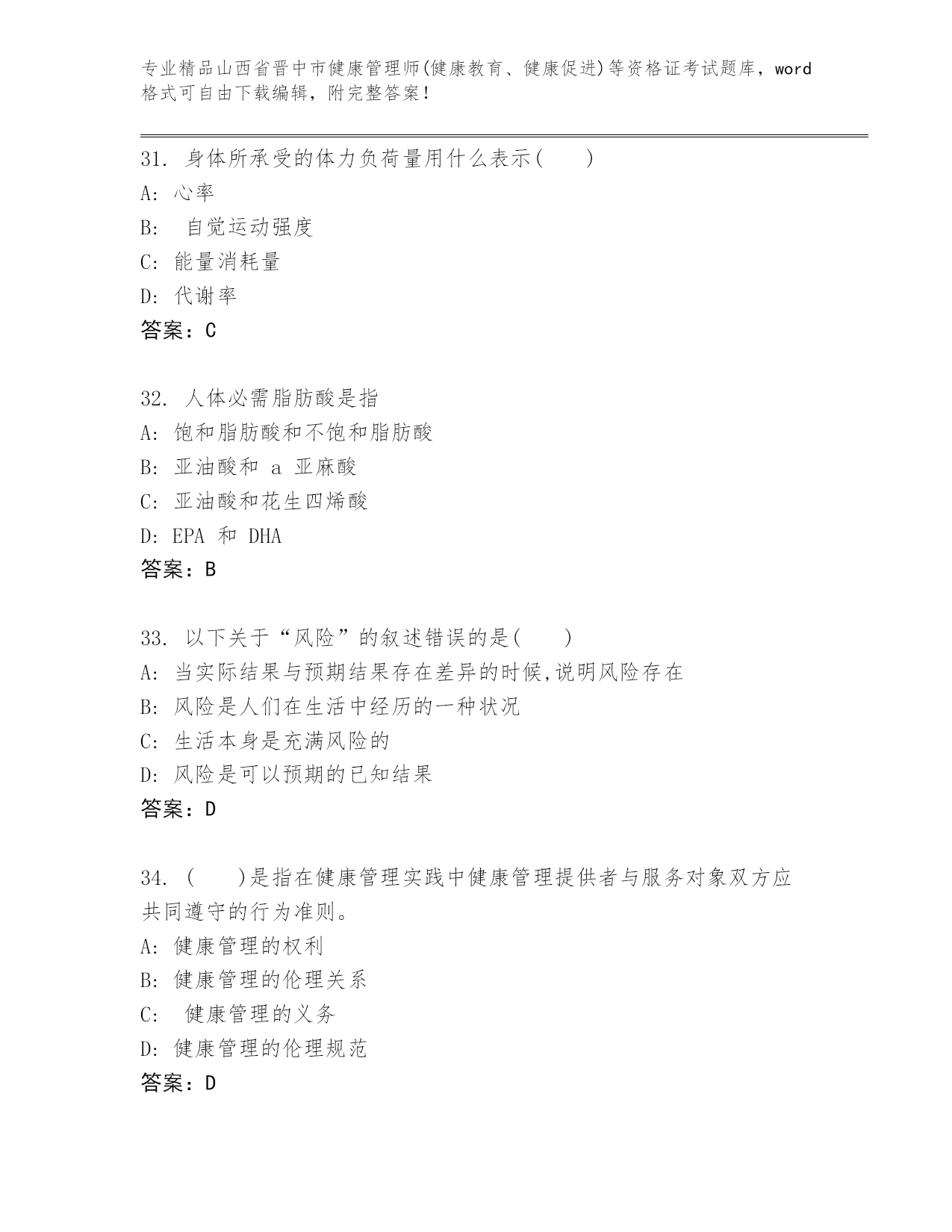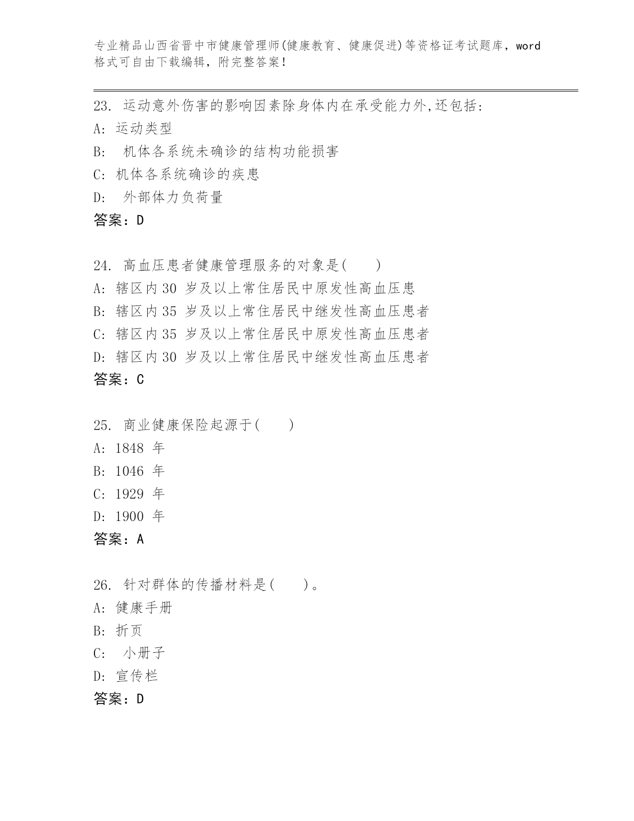 优选山西省晋中市健康管理师(健康教育、健康促进)等资格证考试通关秘籍题库通用