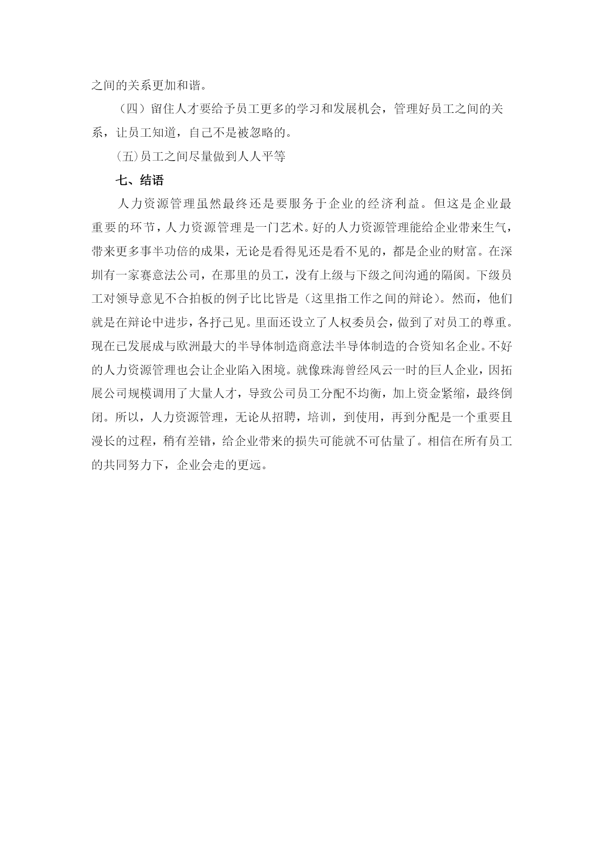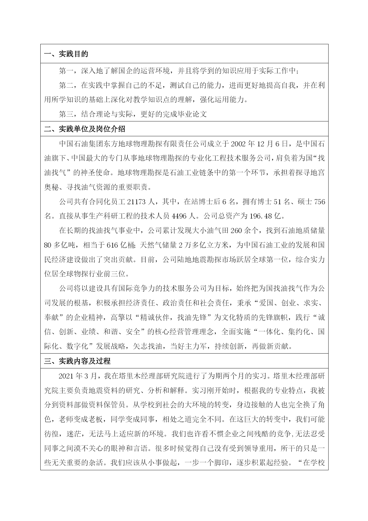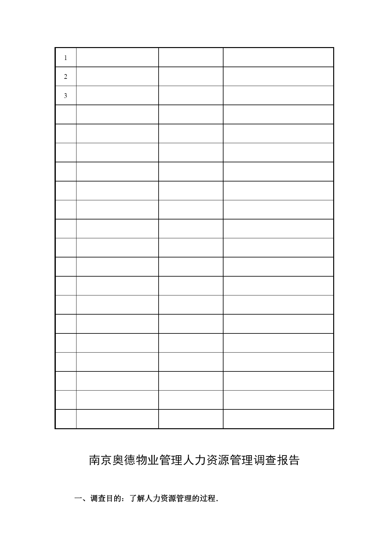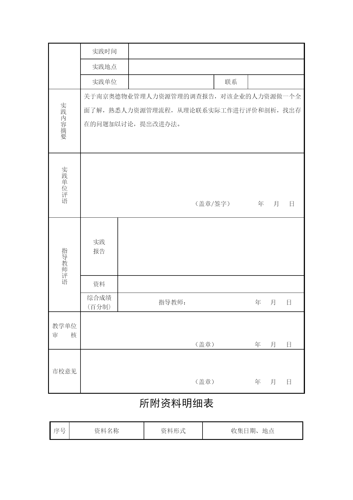 南京广播电视大学社会实践报告题目:关于南京奥德物业管理人力资源管理的调查姓名:学号:年级:12春专业:工商管理学生类别:开放专科指导教师:教学单位:2014年4月2日南京广播电视大学学生社会实践情况表学号专业工商管理(专)实践活动情况实践题目实践时间实践地点实践单位联系实践内容摘要关于南京奥德物业管理人力资源管理的调查报告,对该企业的人力资源做一个全面了解,熟悉人力资源管理流程,从理论联系实际工作进行评价和剖析,找出存在的问题加以讨论,提出改进办法。实践单位评语(盖章/签字)年月日指导教师评语实践报告资料综合成绩(百分制)指导教师:年月日教学单位审核(盖章)年月日市校意见(盖章)年月日所附资料明细表序号资料名称资料形式收集日期、地点123南京奥德物业管理人力资源管理调查报告一、调查目的:了解人力资源管理的过程.众所周知,企业能不能走的远,和企业文化息息相关,而人是文化的载体,也是企业文化的核心,所以恰当的用人对于一个企业来说尤其重要。这就突出了人力资源管理对企业的重要性,于是我就人力资源管理访谈了奥德物业公司人力资源部沈经理。二、调查对象:奥的物业公司人力资源部沈经理三、调查时间:2021年4月1日四、调查方式:访谈类为了使调查的数据真实可靠,我们不用传统的问卷调查。而是直接对人物进行访谈,这样做的好处也是显而易见的:(一)数据真实可靠。对人物进行访谈可以得到他对人力资源管理的真实想法和人力资源管理的组织现状。(二)及时发现问题。访谈中可以得到实时的资料从而能快速的发现人力资源管理中出现的问题,给出建议。五、调查内容及过程2021年4月1日我就对人力资源管理的看法访谈了奥德物业管理人力资源部沈经理。她认为人力资源管理是一项大工程,从组织上说这是企业最重要的一环。企业的发展如何,最重要的是看企业中人的发展如何,所以无论从对员工的招聘、培训,到使用、激励、调整,都是漫长而艰苦的过程。对此她对我介绍奥德物业管理的人力资源管理体系:公司理念服务理念:全心全意为业主服务;企业精神:热情、诚信、高效、创新;企业目标:争创品牌,追求卓越;企业特色:微笑服务制、首问负责制、时效承诺制、全员管理制;员工守则:全心全意做事,踏踏实实做人;服务特色:投诉处理到位、咨询回答到位、服务热情到位、回访满意到位;不准抽业主家的烟、不准喝业主家的茶、不准用业主家的,不准收业主的礼品;一颗真心、一张笑脸、一身工装、一套工具、一枚服务牌、一张验收单;有问必答、有求必应、笑脸相迎、满意相送、做专业人、干专业事;我们的核心价值观:业主是我们永远的伙伴、人才是奥德物业的资本、阳光照亮的体制。该企业对员工招聘方法是基层员工选择外部招聘,领导选择内部招聘。外部招聘多通过网络宣传或职介所介绍。该企业对员工的要求并不高,没有专门的职业技能培训,新进来的员工是跟着老员工学习,在学习中进步。有的员工甚至一样没学好又被调去做另一样了。并不是稳定的工作,员工只要完成任务就行了。人员分配也不均匀,有时公司有活动就会调动员工。在绩效方面,奥德物业管理设有奖惩制度。在一个月内表现好的员工,公司会给予工资奖励;反之表现不好的会适当罚款。在薪酬管理,和大多数厂房企业一样,奥德物业公司采用的是底薪加提成(加班费),继承了传统的多劳多得的观念。员工之间的关系一般,偶尔会发生一些打架斗殴的小插曲。沈经理认为人口流动管理是最难的,很多员工到公司里做了几个月就走了,甚至更短。公司几年来,员工总是进一批,走一批,人数在50到100人,人数并没有太大的变化。公司的管理制度有时会根据突发情况作些调整。六、调查分析:从上述资料上看,奥德物业管理的发展现状一般,5年来公司的规模并未有改变。对此,我们从人力资源管理的几个方面来分析:人力资源管理是指根据企业发展战略的要求,有计划地对人力资源进行合理配置,通过对企业中员工的招聘、培训、使用、考核、激励、调整等一系列过程,调动员工的积极性,发挥员工的潜能,为企业创造价值,确保企业战略目标的实现。是企业的一系列人力资源政策以及相应的管理活动。这些活动主要包括企业人力资源战略的制定,员工的招募与选拔,培训与开发,绩效管理,薪酬管理,员工关系管理,员工安全健康管理等。从招聘的方式看,奥德物业做的还是挺好的,基层员工选择外部招聘,人员选择范围广泛。从外部招聘找到的人员比内部多的多,无论从技术、能力和数量方面讲都有很大的选择空间。而且外部招聘会给组织带来新思想和新方法。这些新的思想和观念可以使企业数量最多的基层员工这个大环境充满活力与生机,在外部招聘找到的人才,可以节省大笔的培训费用;内部领导适合做内部招聘,一方面,这部分的人才在外部招聘选错人的风险比较大,而且
