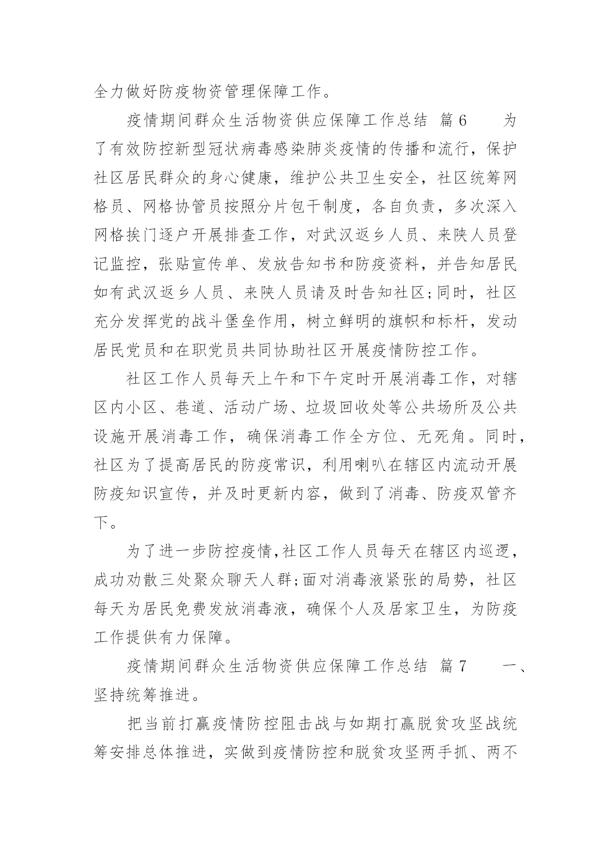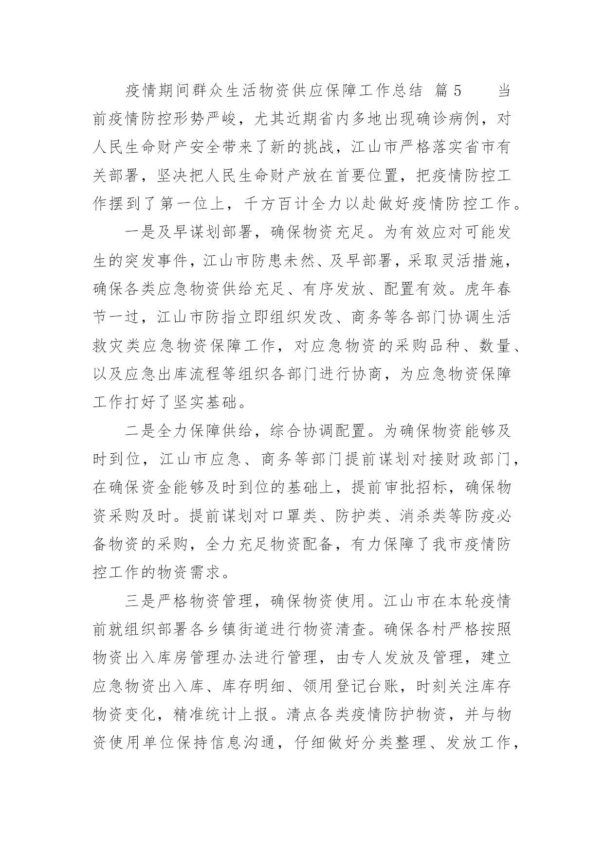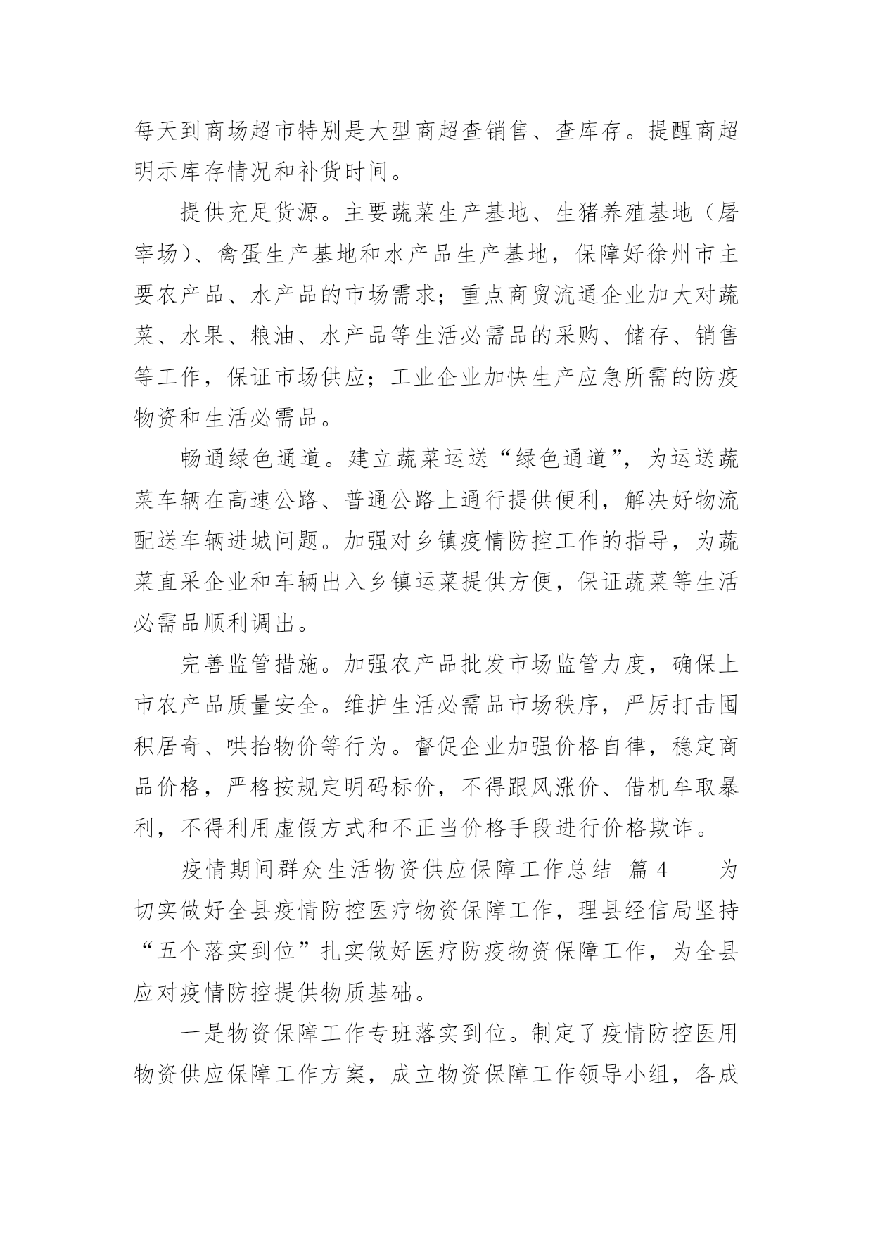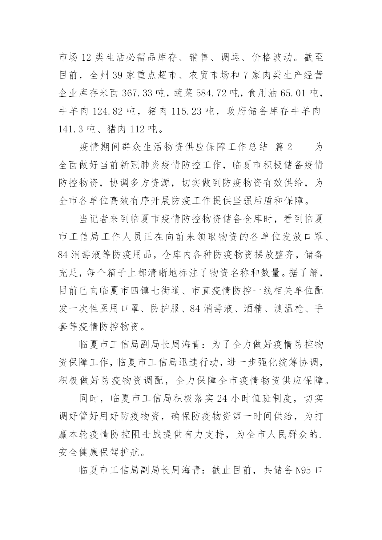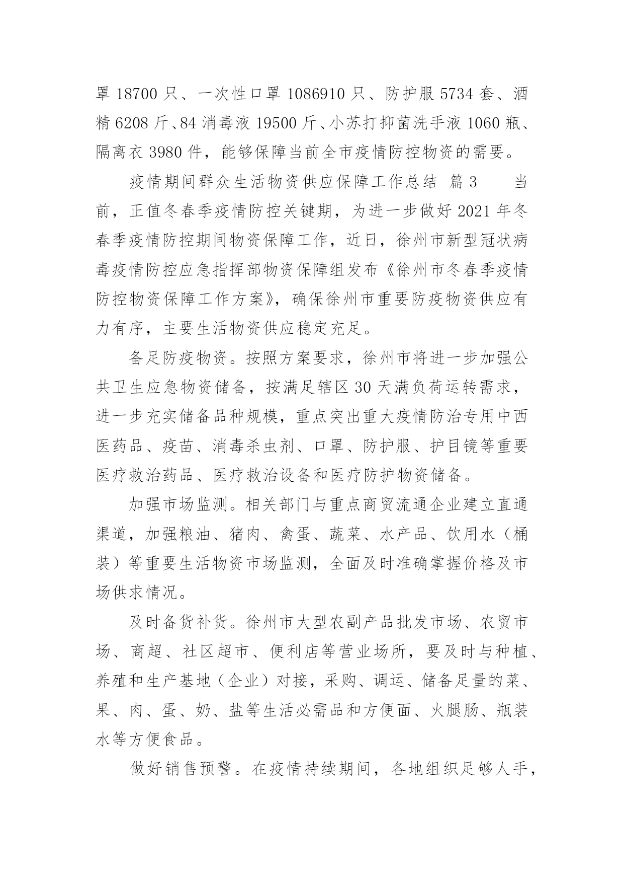 疫情期间群众生活物资供应保障工作总结疫情期间群众生活物资供应保障工作总结范文(通用26篇)一段时间的工作在不知不觉间已经告一段落了,经过这段时间的努力后,我们在不断的成长中得到了更多的进步,为此要做好工作总结。怎样写工作总结才更能吸引眼球呢?以下是小编为大家整理的疫情期间群众生活物资供应保障工作总结范文,仅供参考,大家一起来看看吧。疫情期间群众生活物资供应保障工作总结篇1疫情发生以来,海西蒙古族藏族自治州坚决扛起疫情防控政治责任,不断优化调度,持续做好医疗、生活物资储备保障工作。启动医疗、生活物资储备日监测报告制度,印发《关于加强物资储备工作的通知》等文件。州工信局牵头做好物资保障组各项工作,财政部门下达7个地区疫情防控专项经费2100万元,商务部门从货源组织等方面开展生活必需品和成品油市场保供,卫生健康部门根据疫情防控发展形势,协调储备单位做好检测试剂等储备工作。海西州疫情防控指挥部有序开展应急医疗物资的储备和调拨工作,自疫情发生以来,累计调拨防护用品33.68万个、核酸提取试剂4.3万人份、新冠检测试剂3.94万人份等。目前,全州医疗防疫物资能满足各地多轮全员核酸检测和各级医疗机构30天满负荷运转。持续开展生活必需品日监测工作,关注重点超市、农贸市场12类生活必需品库存、销售、调运、价格波动。截至目前,全州39家重点超市、农贸市场和7家肉类生产经营企业库存米面367.33吨,蔬菜584.72吨,食用油65.01吨,牛羊肉124.82吨,猪肉115.23吨,政府储备库存牛羊肉141.3吨、猪肉112吨。疫情期间群众生活物资供应保障工作总结篇2为全面做好当前新冠肺炎疫情防控工作,临夏市积极储备疫情防控物资,协调多方资源,切实做到防疫物资有效供给,为全市各单位高效有序开展防疫工作提供坚强后盾和保障。当记者来到临夏市疫情防控物资储备仓库时,看到临夏市工信局工作人员正在向前来领取物资的各单位发放口罩、84消毒液等防疫用品,仓库内各种防疫物资摆放整齐,储备充足,每个箱子上都清晰地标注了物资名称和数量。据了解,目前已向临夏市四镇七街道、市直疫情防控一线相关单位配发一次性医用口罩、防护服、84消毒液、酒精、测温枪、手套等疫情防控物资。临夏市工信局副局长周海青:为了全力做好疫情防控物资保障工作,临夏市工信局迅速行动,进一步强化统筹协调,积极做好防疫物资调配,全力保障全市疫情物资供应保障。同时,临夏市工信局积极落实24小时值班制度,切实调好管好用好防疫物资,确保防疫物资第一时间供给,为打赢本轮疫情防控阻击战提供有力支持,为全市人民群众的.安全健康保驾护航。临夏市工信局副局长周海青:截止目前,共储备N95口罩18700只、一次性口罩1086910只、防护服5734套、酒精6208斤、84消毒液19500斤、小苏打抑菌洗手液1060瓶、隔离衣3980件,能够保障当前全市疫情防控物资的需要。疫情期间群众生活物资供应保障工作总结篇3当前,正值冬春季疫情防控关键期,为进一步做好2021年冬春季疫情防控期间物资保障工作,近日,徐州市新型冠状病毒疫情防控应急指挥部物资保障组发布《徐州市冬春季疫情防控物资保障工作方案》,确保徐州市重要防疫物资供应有力有序,主要生活物资供应稳定充足。备足防疫物资。按照方案要求,徐州市将进一步加强公共卫生应急物资储备,按满足辖区30天满负荷运转需求,进一步充实储备品种规模,重点突出重大疫情防治专用中西医药品、疫苗、消毒杀虫剂、口罩、防护服、护目镜等重要医疗救治药品、医疗救治设备和医疗防护物资储备。加强市场监测。相关部门与重点商贸流通企业建立直通渠道,加强粮油、猪肉、禽蛋、蔬菜、水产品、饮用水(桶装)等重要生活物资市场监测,全面及时准确掌握价格及市场供求情况。及时备货补货。徐州市大型农副产品批发市场、农贸市场、商超、社区超市、便利店等营业场所,要及时与种植、养殖和生产基地(企业)对接,采购、调运、储备足量的菜、果、肉、蛋、奶、盐等生活必需品和方便面、火腿肠、瓶装水等方便食品。做好销售预警。在疫情持续期间,各地组织足够人手,每天到商场超市特别是大型商超查销售、查库存。提醒商超明示库存情况和补货时间。提供充足货源。主要蔬菜生产基地、生猪养殖基地(屠宰场)、禽蛋生产基地和水产品生产基地,保障好徐州市主要农产品、水产品的市场需求;重点商贸流通企业加大对蔬菜、水果、粮油、水产品等生活必需品的采购、储存、销售等工作,保证市场供应;工业企业加快生产应急所需的防疫物资和生活必需品。畅通绿色通道。建立蔬菜运送“绿色通道”,为运送蔬菜车辆在高速公路、普通公路上通行提供便利,解决好物流配送车辆进城问题。加强对乡镇疫情防控工作的指导,为蔬菜直采企业和车辆出入乡镇运菜提供方便,保证蔬菜等生活必需品顺利调出。完善监管措施。加强农产品批发市场监管力度,确保