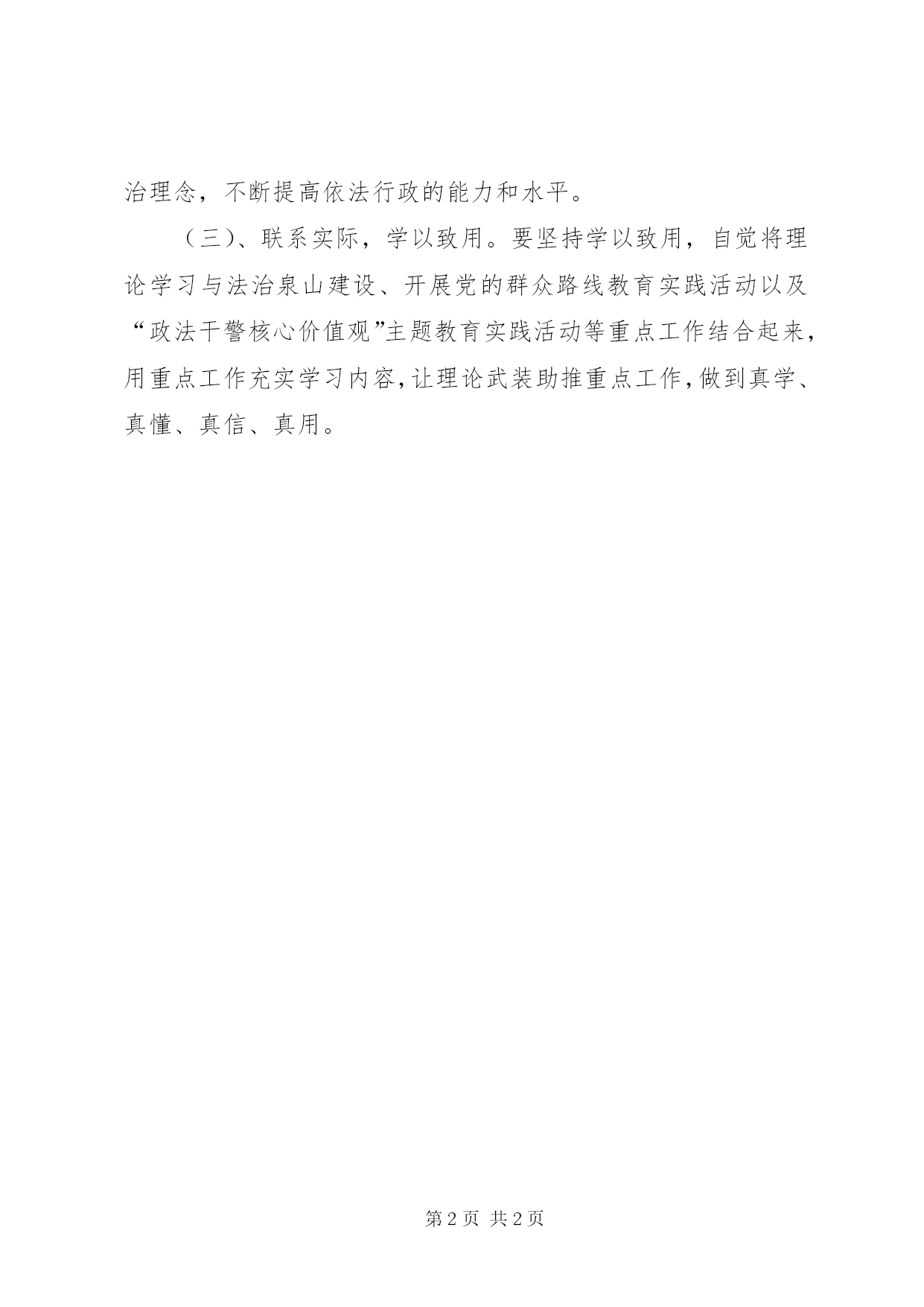 第PAGE\*Arabic\*MERGEFORMAT2页共NUMPAGES\*MERGEFORMAT2页司法行政系统学法计划一、时间安排1、集中学习每月不少于2次,每次学习时间不少于2小时,如有特殊情况可调整时间补学,全年不少于40学时。二、学习方式采取集中学习、专题辅导、举办讲座和自学等形式进行,并适时组织司法行政领导干部及工作人员参加上级举办的专题法制讲座和普法教育培训。三、学习内容深入学习宣传党的十八大精神,学习政法干警核心价值观,学习中国特色社会主义法律体系形成的重要意义、基本经验、基本构成及基本特征,同时计划完成8部新颁布(修正)法律法规的学习。(内容附后)四、要求(一)、加强领导,落实措施。单位主要负责人为落实学法制度的第一责任人,一定要切实负起责任,正确处理好工学关系,把落实好学法制度作为全面推进依法行政的重要基础工作落到实处。(二)领导重视,率先垂范。领导干部要带头学法,坚持学习法律和解决实际问题相结合,切实提高依法决策、科学决策、依法管理的能力;司法行政执法人员要强化自身的法律素养和法治理念,不断提高依法行政的能力和水平。(三)、联系实际,学以致用。要坚持学以致用,自觉将理论学习与法治泉山建设、开展党的群众路线教育实践活动以及“政法干警核心价值观”主题教育实践活动等重点工作结合起来,用重点工作充实学习内容,让理论武装助推重点工作,做到真学、真懂、真信、真用。