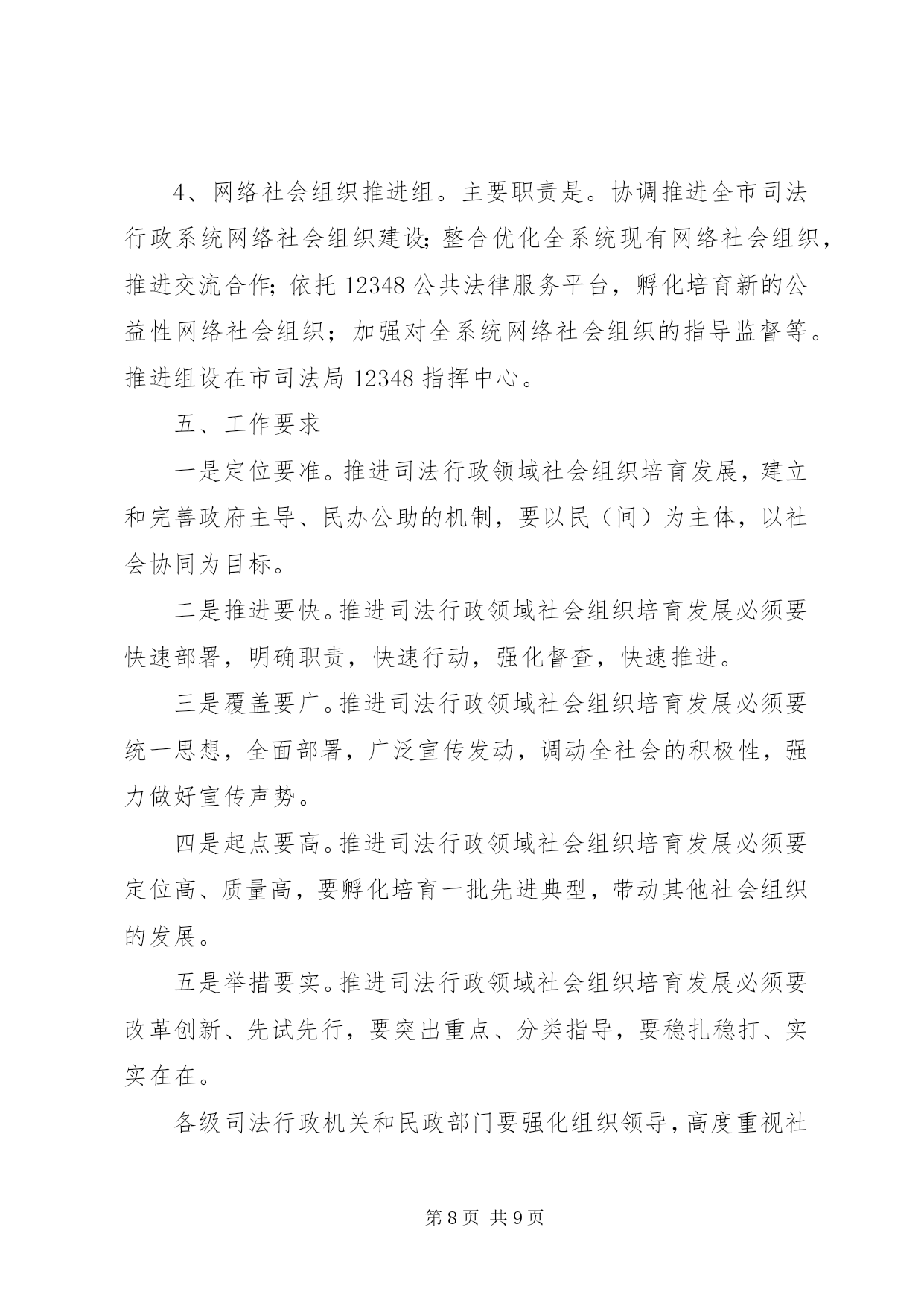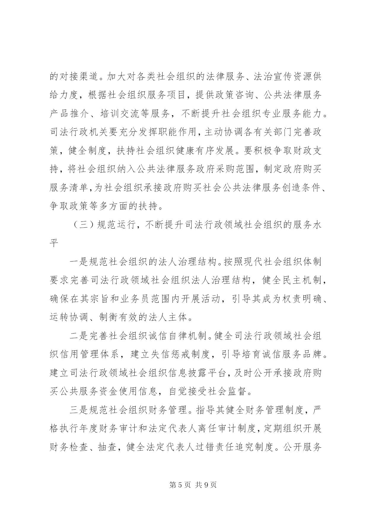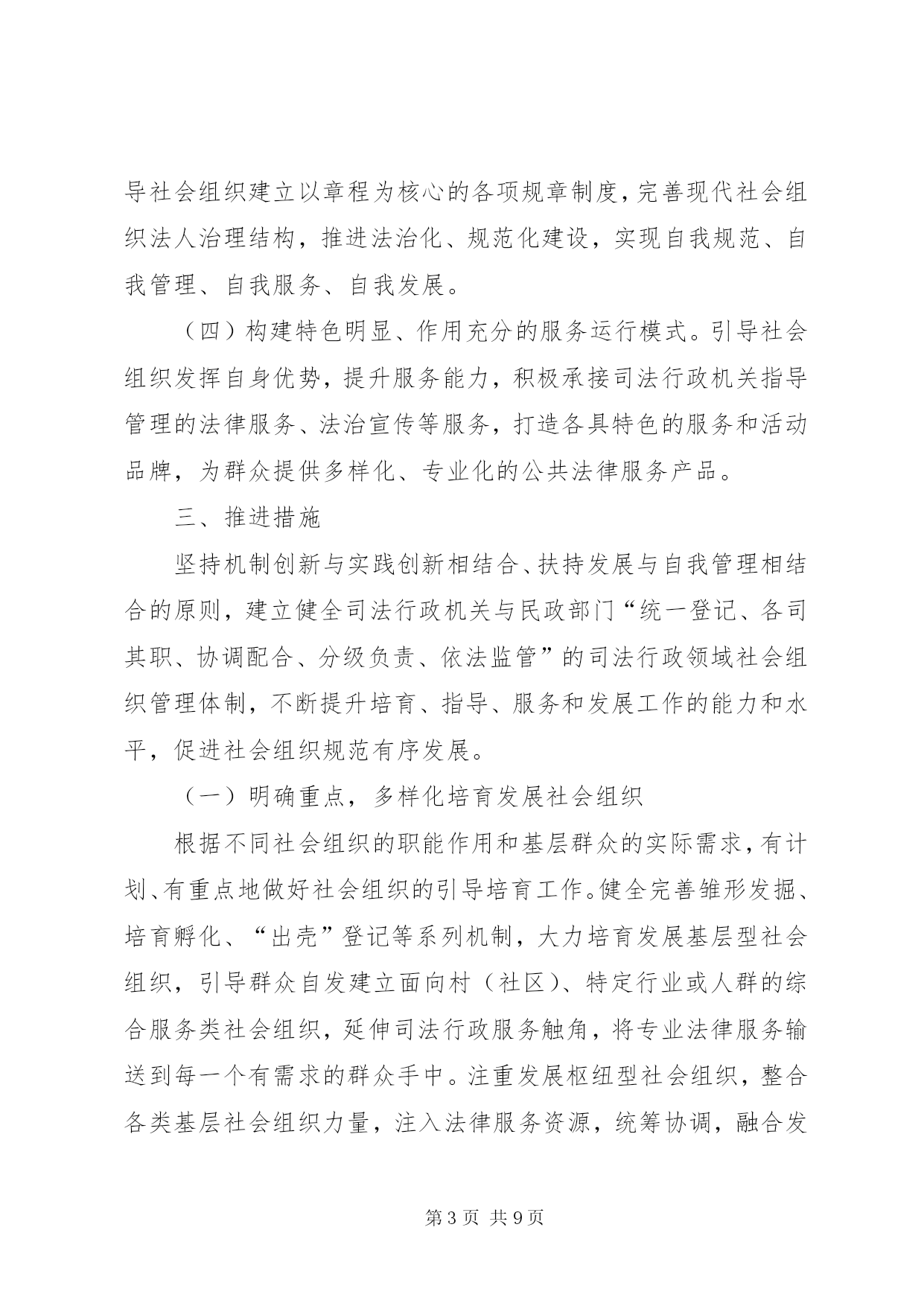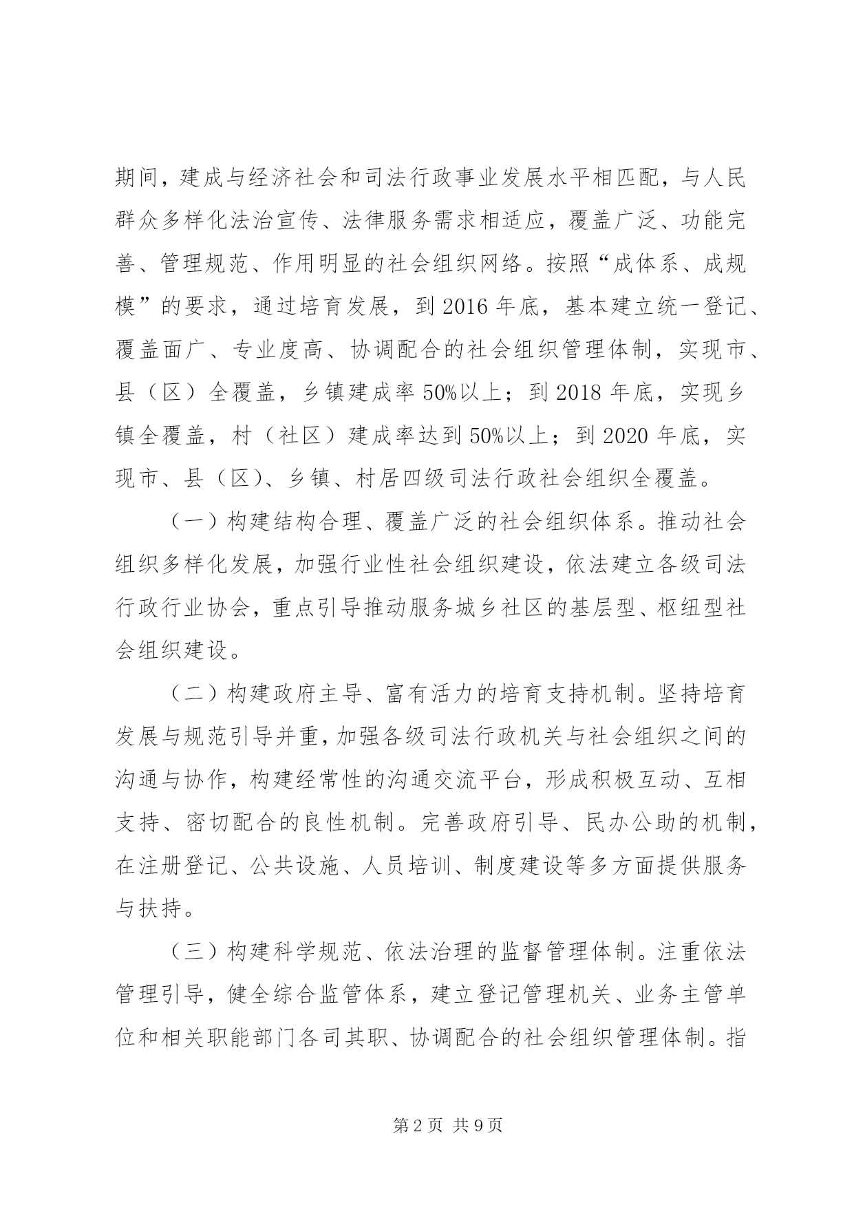 第PAGE\*Arabic\*MERGEFORMAT9页共NUMPAGES\*MERGEFORMAT9页司法领域社会组织培育发展实施方案小编寄语。下面是我们文秘114的小编为大家整理的司法领域社会组织培育发展实施方案,请大家参阅。为认真贯彻党的十八大、十八届四中五中全会精神,充分发挥社会组织在放大司法行政服务效应、推进多层次多领域依法治理中的积极作用,更好地满足广大群众对法治宣传、法律服务的需求,现就加快推进我市司法行政领域社会组织培育发展提出以下实施意见:一、指导思想司法行政领域社会组织是指经司法行政机关审查同意,在民政部门登记或备案,由广大群众自发组织建立的,以法治宣传、法律服务和特殊人群服务管理为主要服务内容的社会组织。司法行政领域社会组织培育发展要紧紧围绕法治**建设的目标任务,以满足人民群众日益增长的法治需求为出发点,以扩大社会组织覆盖面,提升司法行政服务质效为重点,按照“积极引导、加快培育、优化服务、促进规范、发挥作用”的要求,突出发展重点,优化发展环境,创新体制机制,强化指导服务,大力推进司法行政领域社会组织健康有序发展,促进社会组织在创新社会治理机制、推动司法行政事业发展中发挥积极作用。二、目标任务加快构建司法行政领域社会组织发展体系,力争在“十三五”期间,建成与经济社会和司法行政事业发展水平相匹配,与人民群众多样化法治宣传、法律服务需求相适应,覆盖广泛、功能完善、管理规范、作用明显的社会组织网络。按照“成体系、成规模”的要求,通过培育发展,到2016年底,基本建立统一登记、覆盖面广、专业度高、协调配合的社会组织管理体制,实现市、县(区)全覆盖,乡镇建成率50%以上;到2018年底,实现乡镇全覆盖,村(社区)建成率达到50%以上;到2020年底,实现市、县(区)、乡镇、村居四级司法行政社会组织全覆盖。(一)构建结构合理、覆盖广泛的社会组织体系。推动社会组织多样化发展,加强行业性社会组织建设,依法建立各级司法行政行业协会,重点引导推动服务城乡社区的基层型、枢纽型社会组织建设。(二)构建政府主导、富有活力的培育支持机制。坚持培育发展与规范引导并重,加强各级司法行政机关与社会组织之间的沟通与协作,构建经常性的沟通交流平台,形成积极互动、互相支持、密切配合的良性机制。完善政府引导、民办公助的机制,在注册登记、公共设施、人员培训、制度建设等多方面提供服务与扶持。(三)构建科学规范、依法治理的监督管理体制。注重依法管理引导,健全综合监管体系,建立登记管理机关、业务主管单位和相关职能部门各司其职、协调配合的社会组织管理体制。指导社会组织建立以章程为核心的各项规章制度,完善现代社会组织法人治理结构,推进法治化、规范化建设,实现自我规范、自我管理、自我服务、自我发展。(四)构建特色明显、作用充分的服务运行模式。引导社会组织发挥自身优势,提升服务能力,积极承接司法行政机关指导管理的法律服务、法治宣传等服务,打造各具特色的服务和活动品牌,为群众提供多样化、专业化的公共法律服务产品。三、推进措施坚持机制创新与实践创新相结合、扶持发展与自我管理相结合的原则,建立健全司法行政机关与民政部门“统一登记、各司其职、协调配合、分级负责、依法监管”的司法行政领域社会组织管理体制,不断提升培育、指导、服务和发展工作的能力和水平,促进社会组织规范有序发展。(一)明确重点,多样化培育发展社会组织根据不同社会组织的职能作用和基层群众的实际需求,有计划、有重点地做好社会组织的引导培育工作。健全完善雏形发掘、培育孵化、“出壳”登记等系列机制,大力培育发展基层型社会组织,引导群众自发建立面向村(社区)、特定行业或人群的综合服务类社会组织,延伸司法行政服务触角,将专业法律服务输送到每一个有需求的群众手中。注重发展枢纽型社会组织,整合各类基层社会组织力量,注入法律服务资源,统筹协调,融合发展,使其能够依法承揽法律服务、法治宣传等功能,加强社会组织间的交流和资源整合,放大社会组织服务的整体效能,加快发展行业型社会组织,加强行业自律、规范管理和诚信建设,切实提升行业服务管理水平。建立向社会组织购买服务的常态机制,加强对法治宣传、法律服务、人民调解等社会组织的扶持指导,强化资源供给,促进规范发展。(二)稳步推进,促进司法行政领域社会组织加快发展一是加强孵化中心建设。按照“政府主导、专业运作、社会支持”的模式,组建全市司法行政领域社会组织孵化中心,打造组织能力提升平台、资源互助平台、信息交流平台、公益品牌推广平台四大核心服务平台,提供场地支持、项目辅导、资金扶持、教育培训、资源对接等方面的服务。二是推进服务平台建设。在建立全市司法行政领域社会组织孵化中心的基础上,加快建立成市、县(区)、乡镇(街道)、社区邻坊四级服务平台,坚持“政府扶持、社会参与
