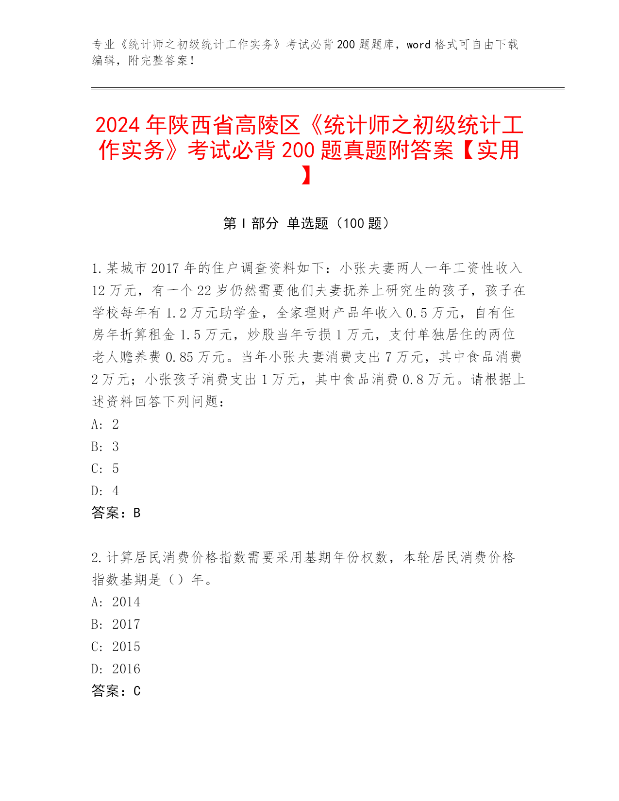 2024年陕西省高陵区《统计师之初级统计工作实务》考试必背200题真题附答案【实用】.docx