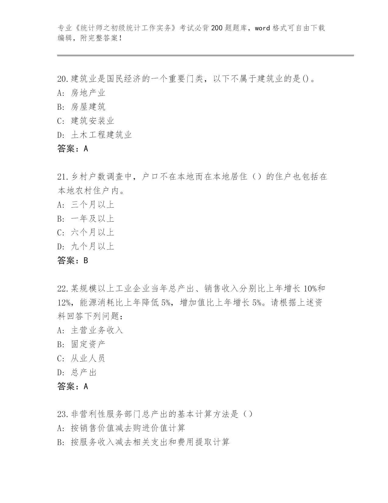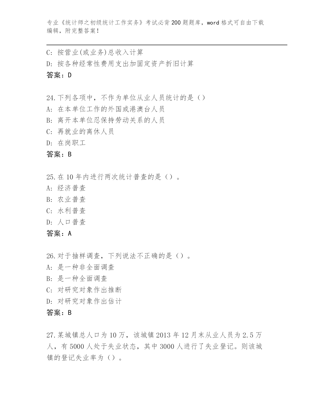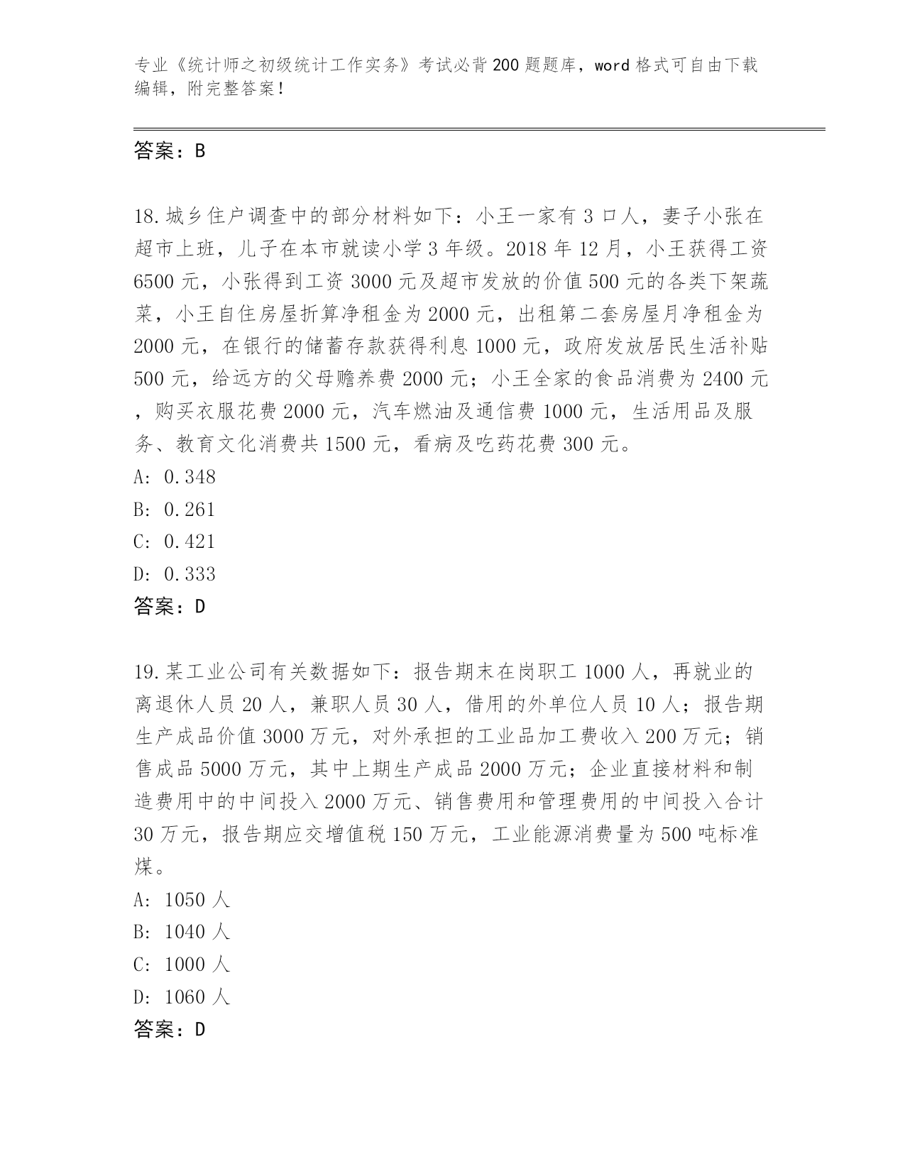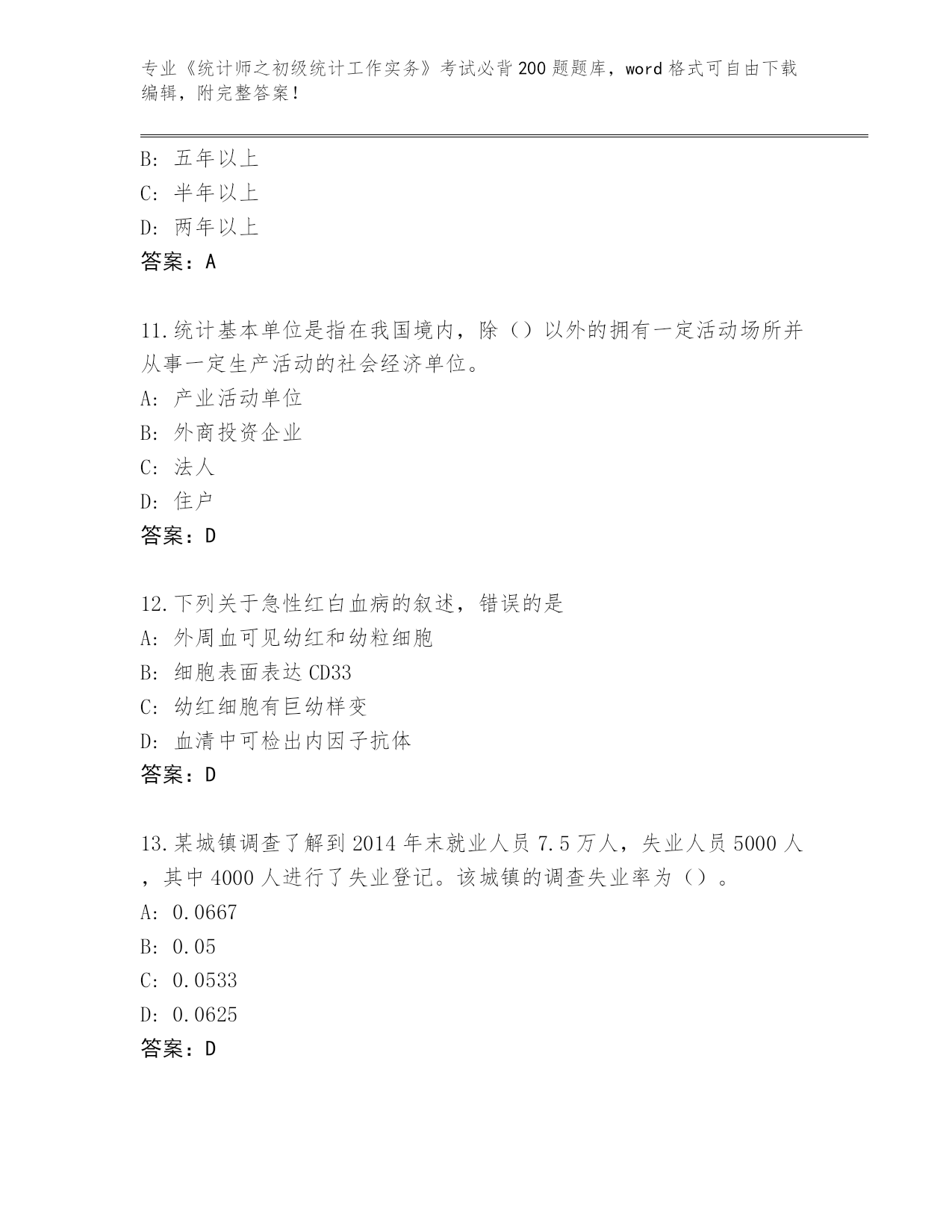 2024年安徽省泾县《统计师之初级统计工作实务》资格考试必背200题(必刷)